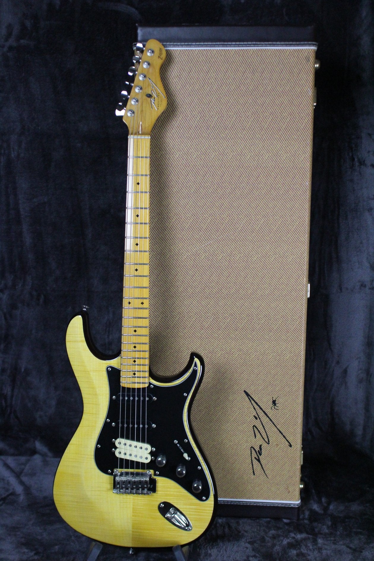Neck: Maple with a Maple fingerboard, 25.5” scale length, 1 11/16” nut width, 22 frets, black diamond inlays, Z-Glide pattern on the back of neck.