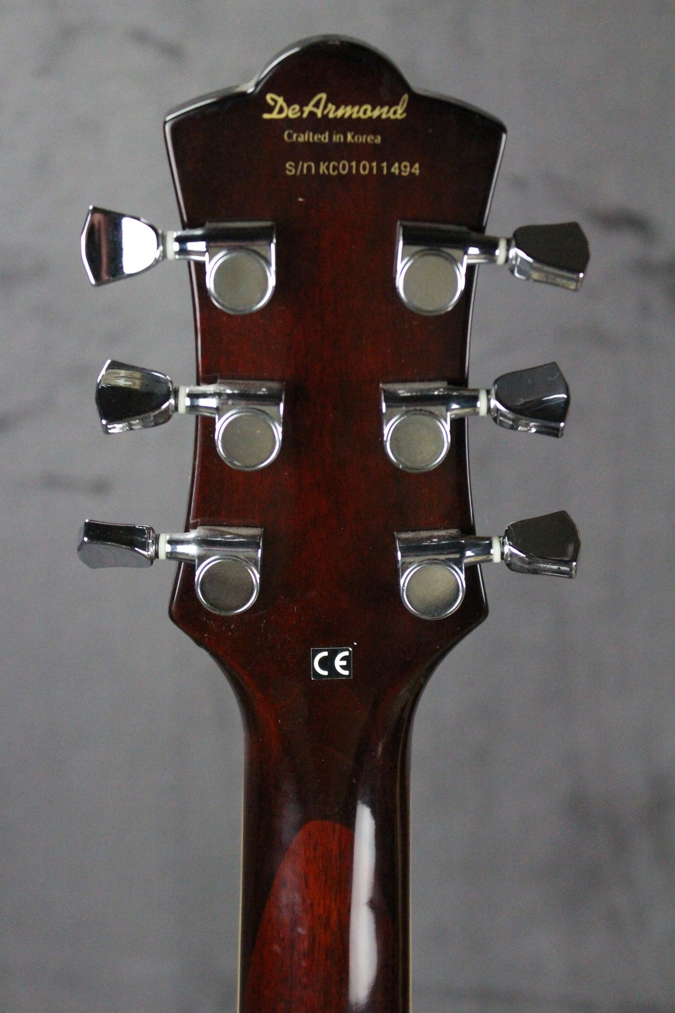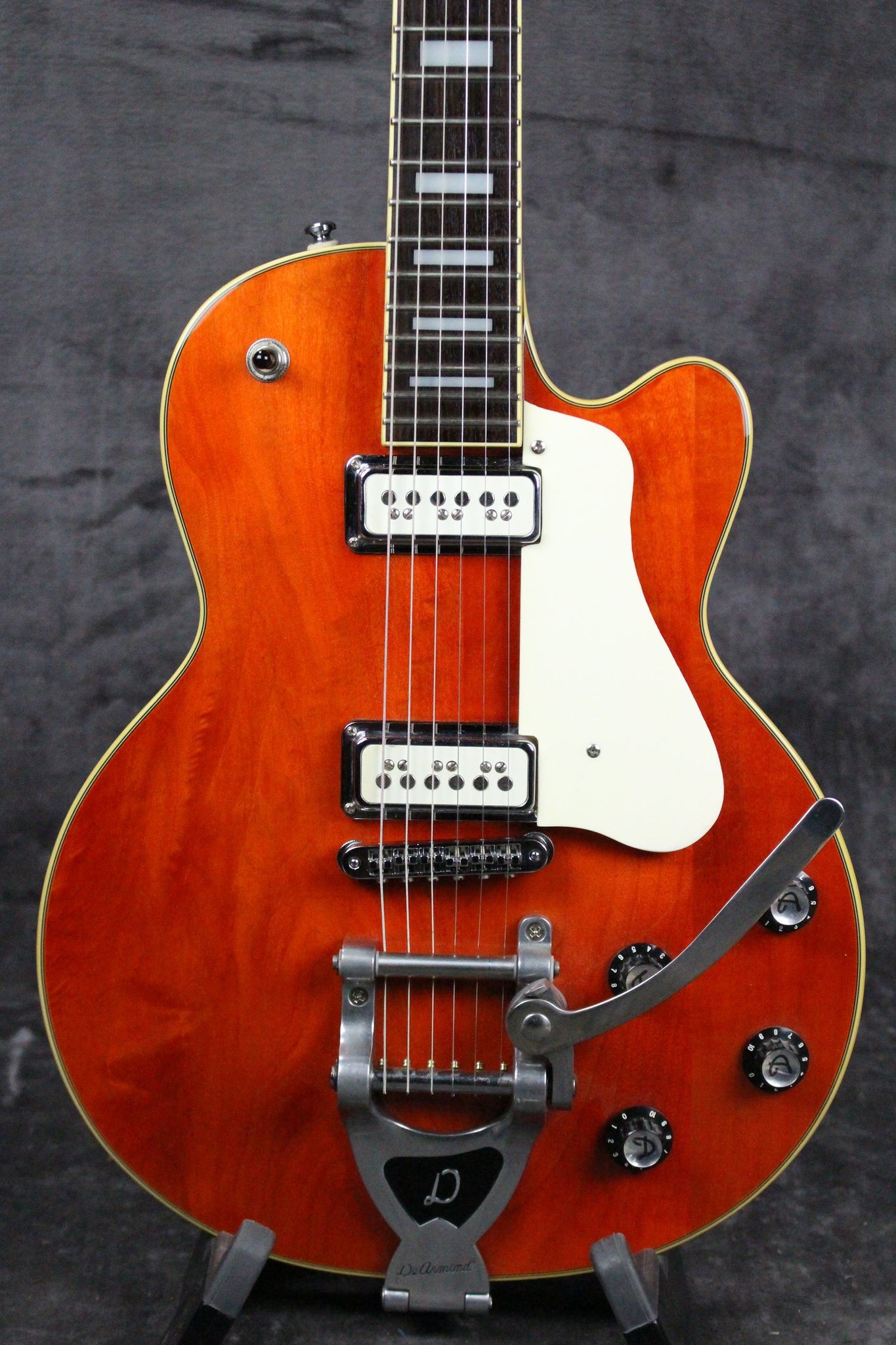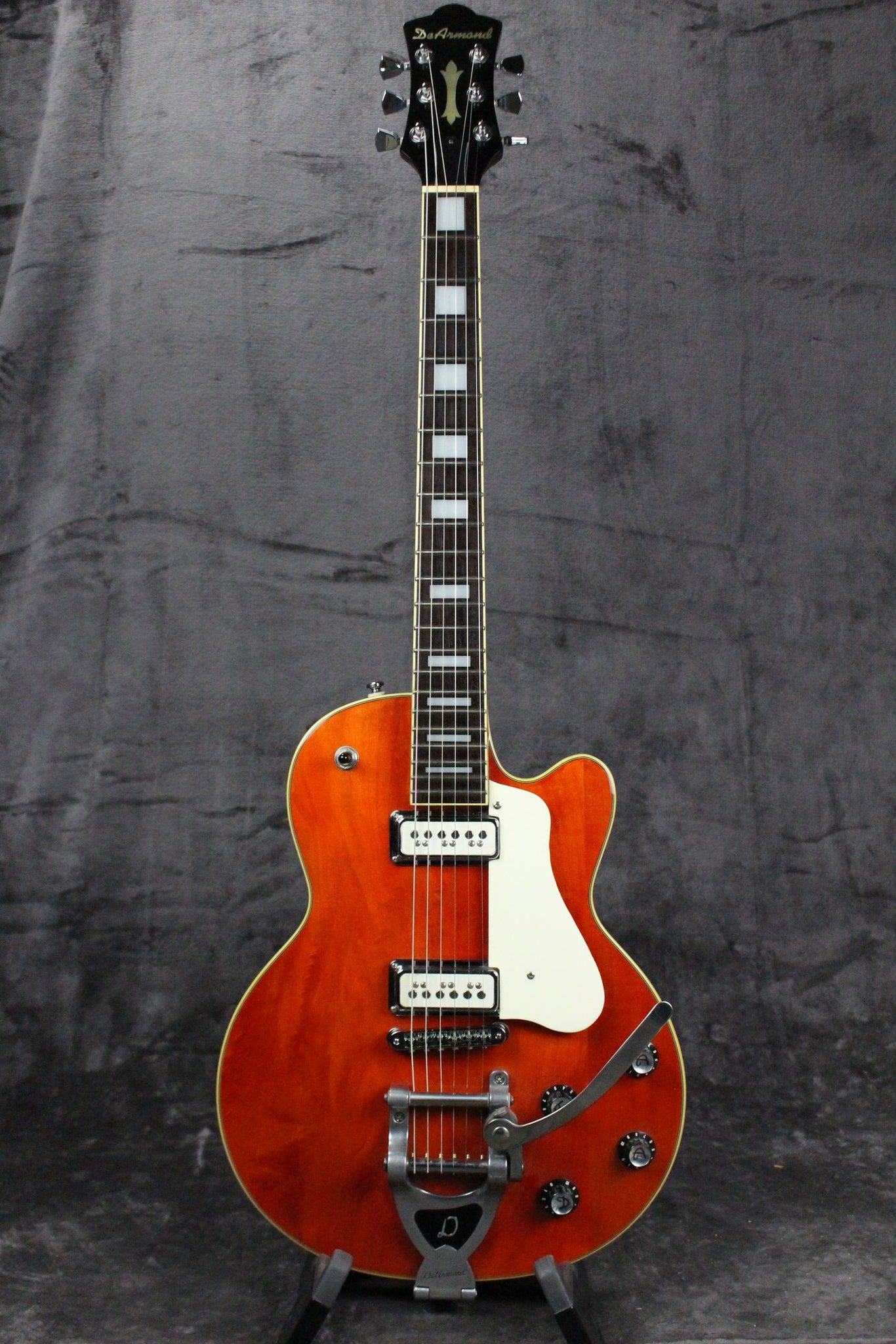 Summary: Originally the chief user of DeArmond pickups were guitar players looking to be heard above the sound of a big band. The other group of users were jazz guitarists seeking a clean sound and to be heard as well as a trumpet or drums. This guitar is a fine example of a solid guitar with a great sound. The single coil pickups are warm and articulate and the Bigsby makes for wonderful vibrato tones.