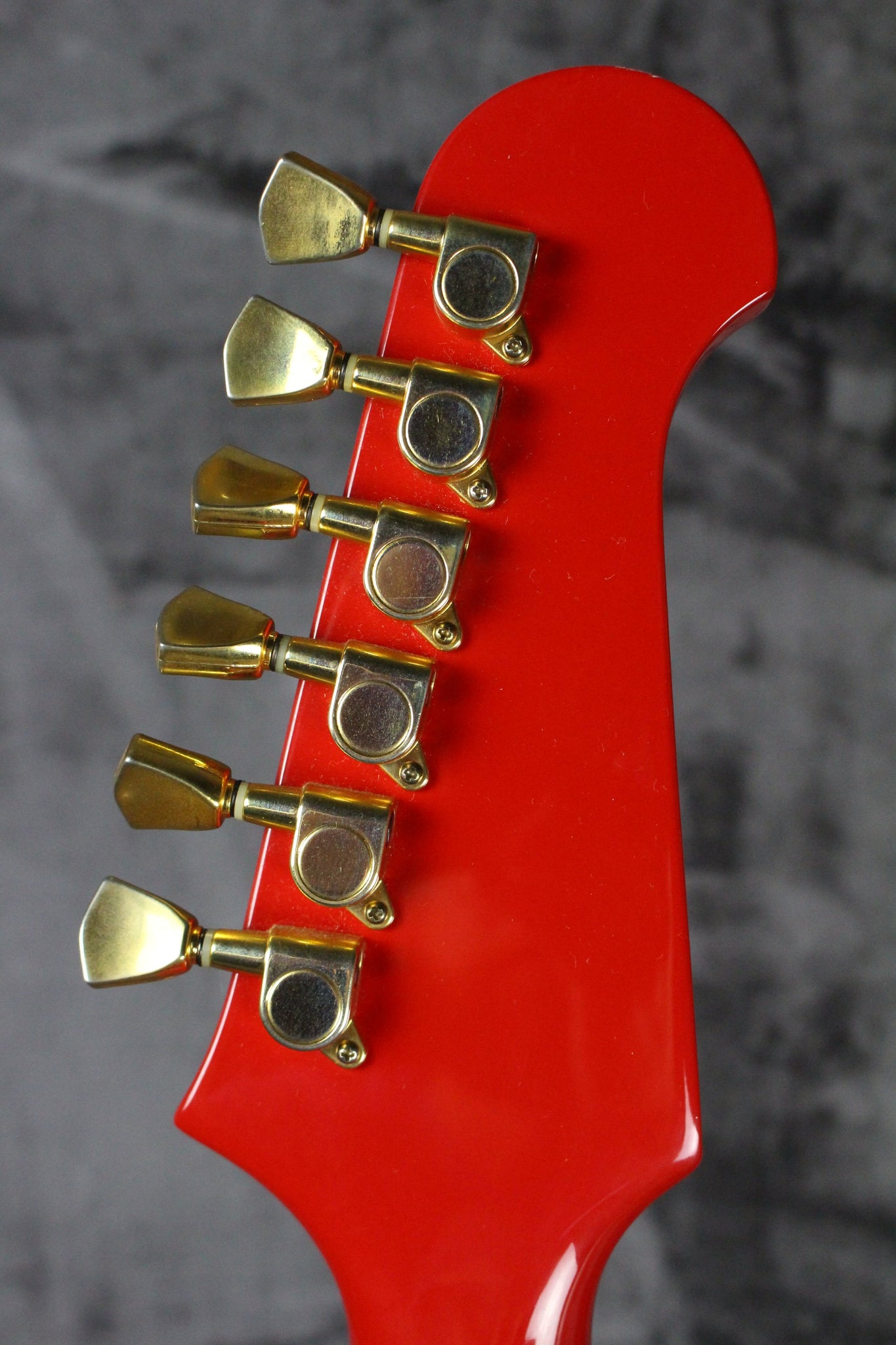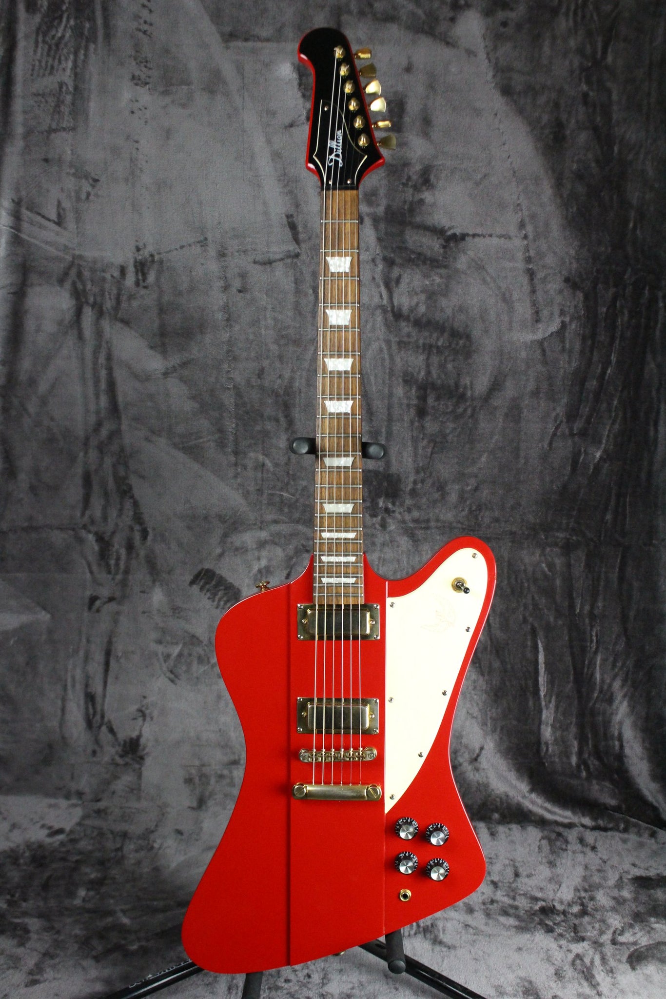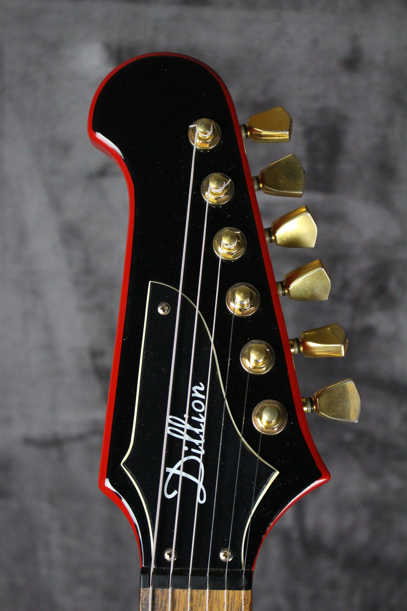 Summary: This Dillion Phoenix is a great copy of a Gibson Firebird. It has a 2-piece mahogany body and a bound mahogany neck with a rosewood fingerboard. It comes equipped with two Dillion vintage style Alnico 5 mini humbuckers.