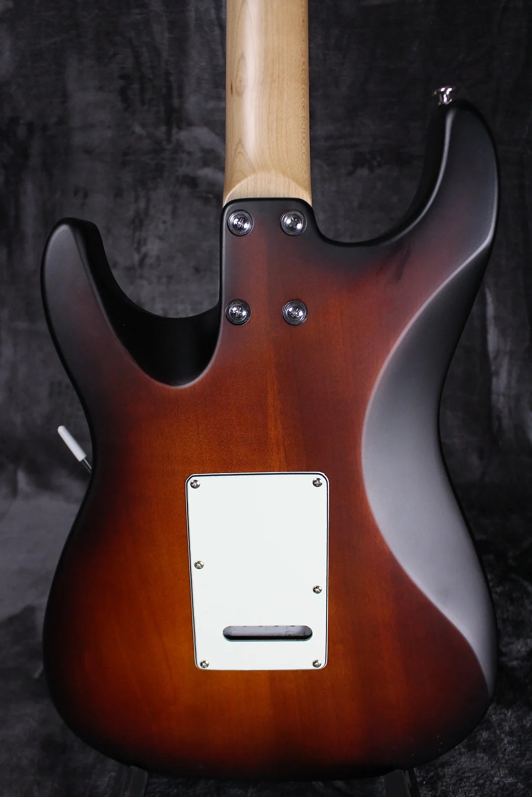 Neck: Maple with a Rosewood fingerboard, 25.5” scale length, 1.65” nut width, white dot inlays.