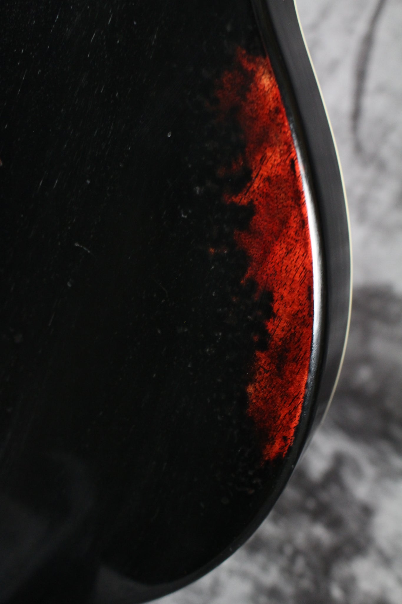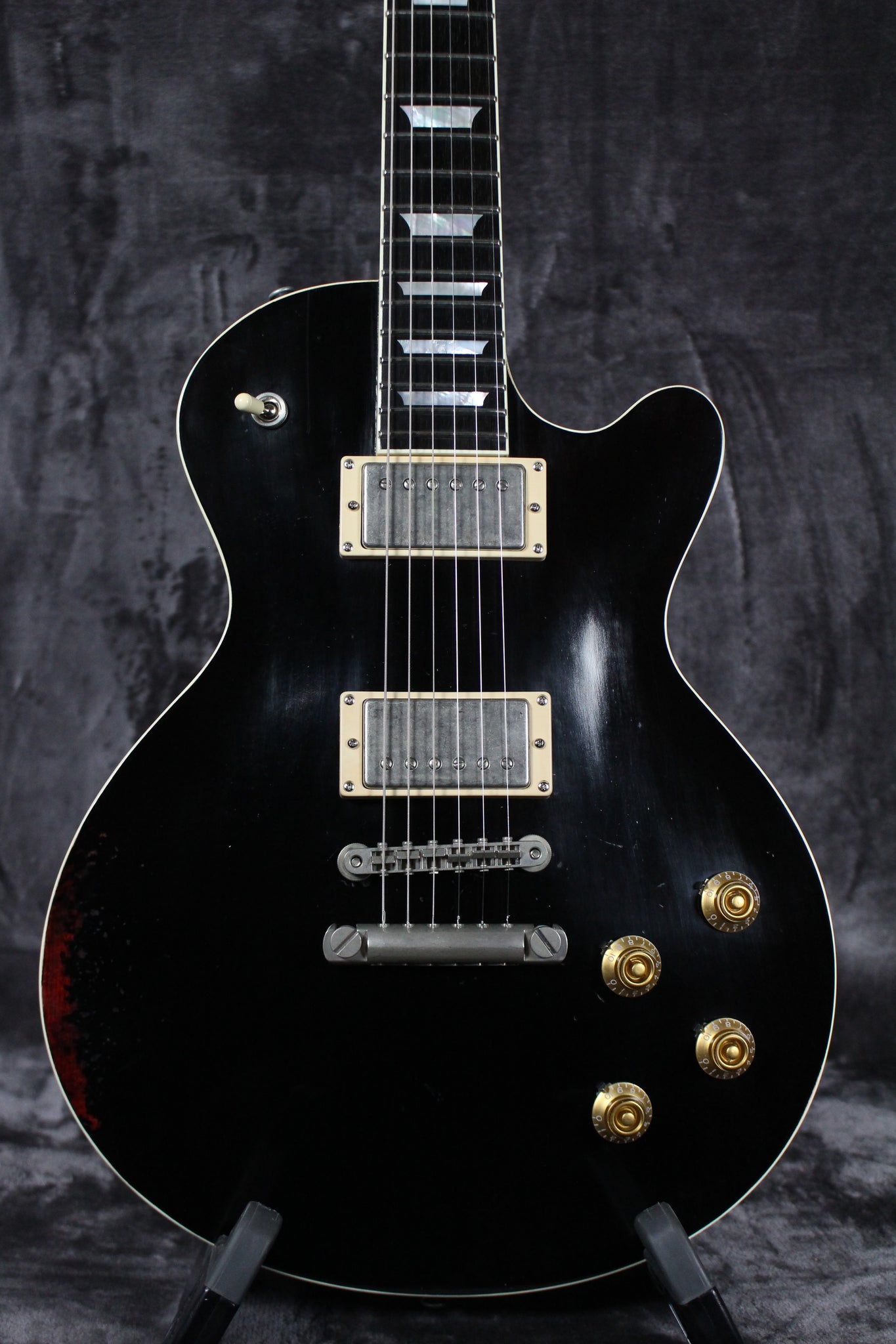 Body: Carved Maple top with one piece Mahogany body in Antique Varnish Black finish.