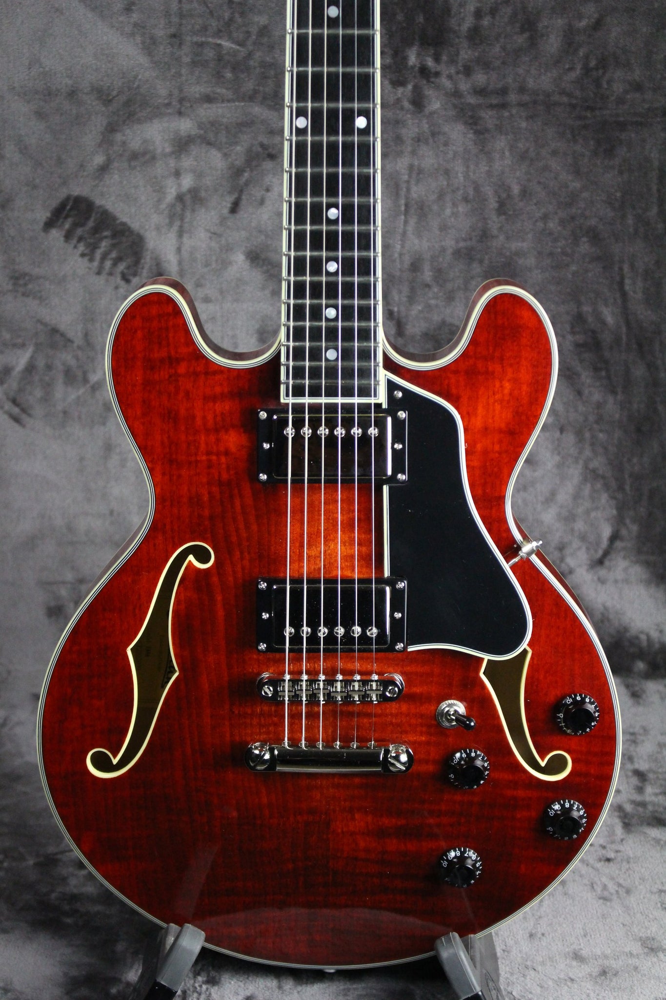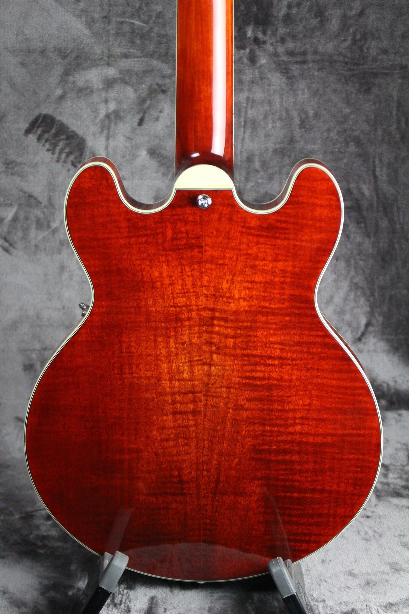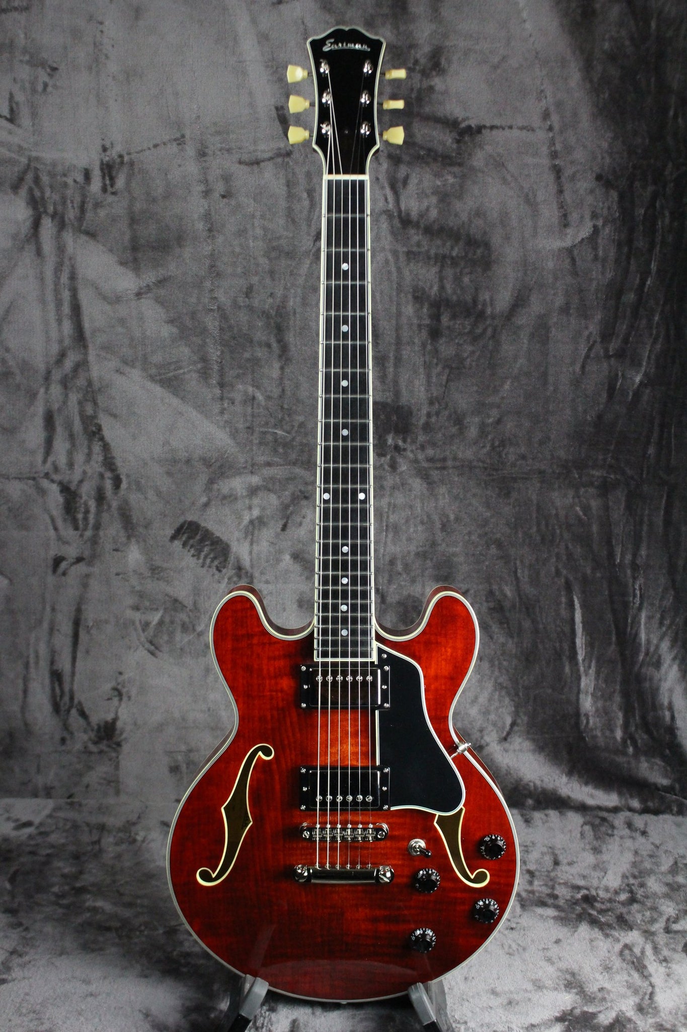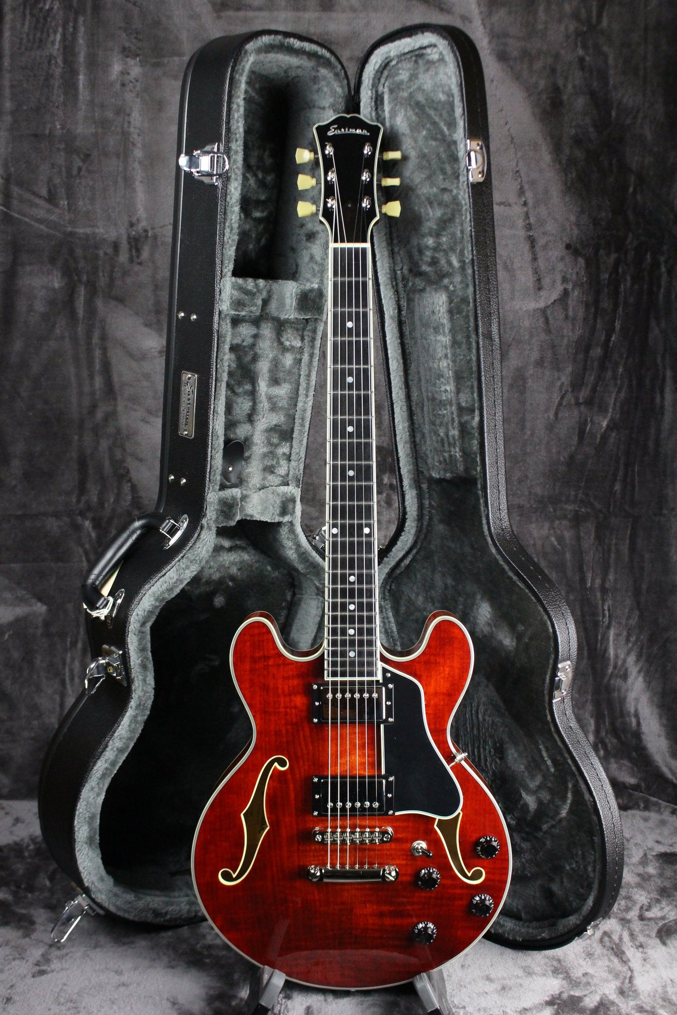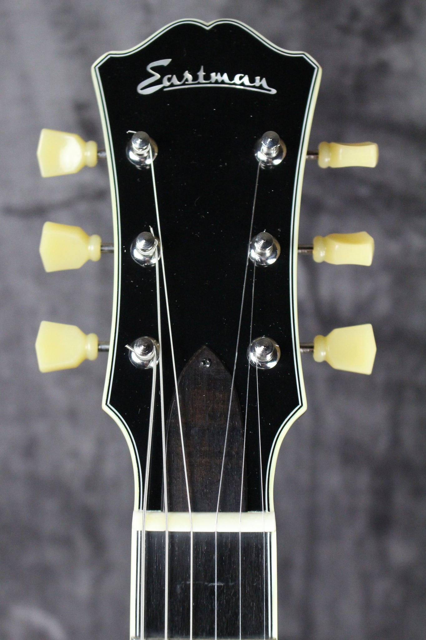 Summary: The subtle yet elegant classic laminated maple top on this guitar will please purists and aesthetes alike. The slightly wider nut width and flat radius make it easy to play, and its acoustic properties are so impressive it might take you a while to plug it in. Once you do, however, you'll be rewarded again with a warm, clear tone that's truly inspiring. This beautiful Eastman semi-hollow guitar comes with a set of Seymour Duncan humbuckers, Pingwell keystone style tuning keys, and ships in a beautiful hard-shell case.