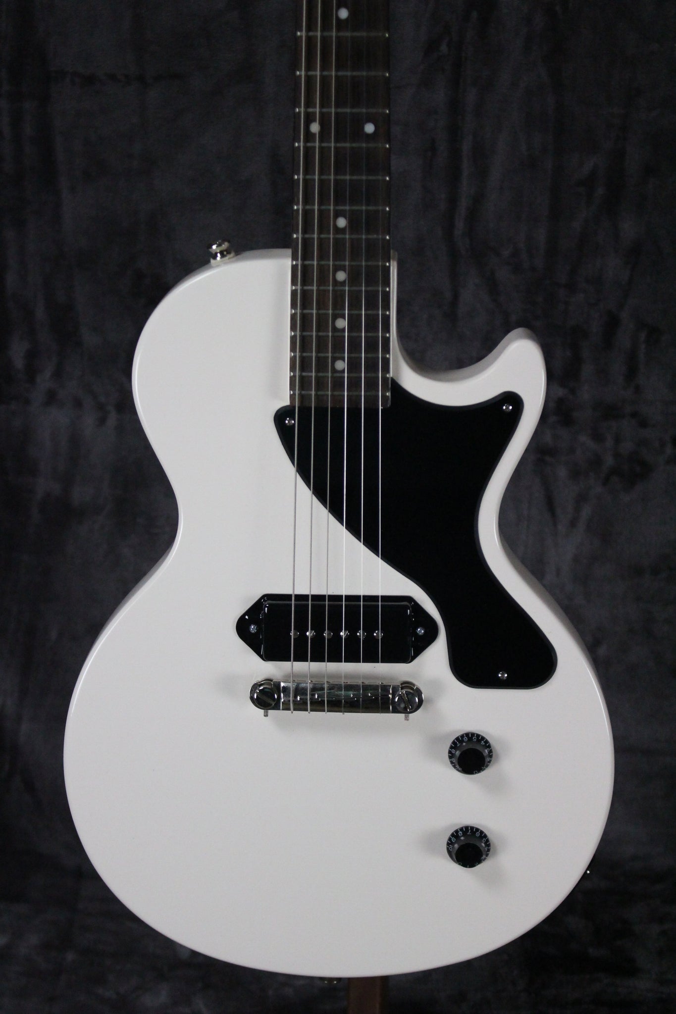 This 2021 Epiphone Billie Joe Les Paul Junior features a slab Mahogany body, a Mahogany neck with an Indian Laurel fretboard and 22 medium jumbo frets, a powerful Seymour Duncan Jerrod James Nichols SNP90 pickup, and master volume and master tone controls with CTS potentiometers. Rock-solid tuning stability is assured with the Epiphone Vintage Deluxe tuners, Graph Tech nut, and the wrap-around Lightning Bar bridge.