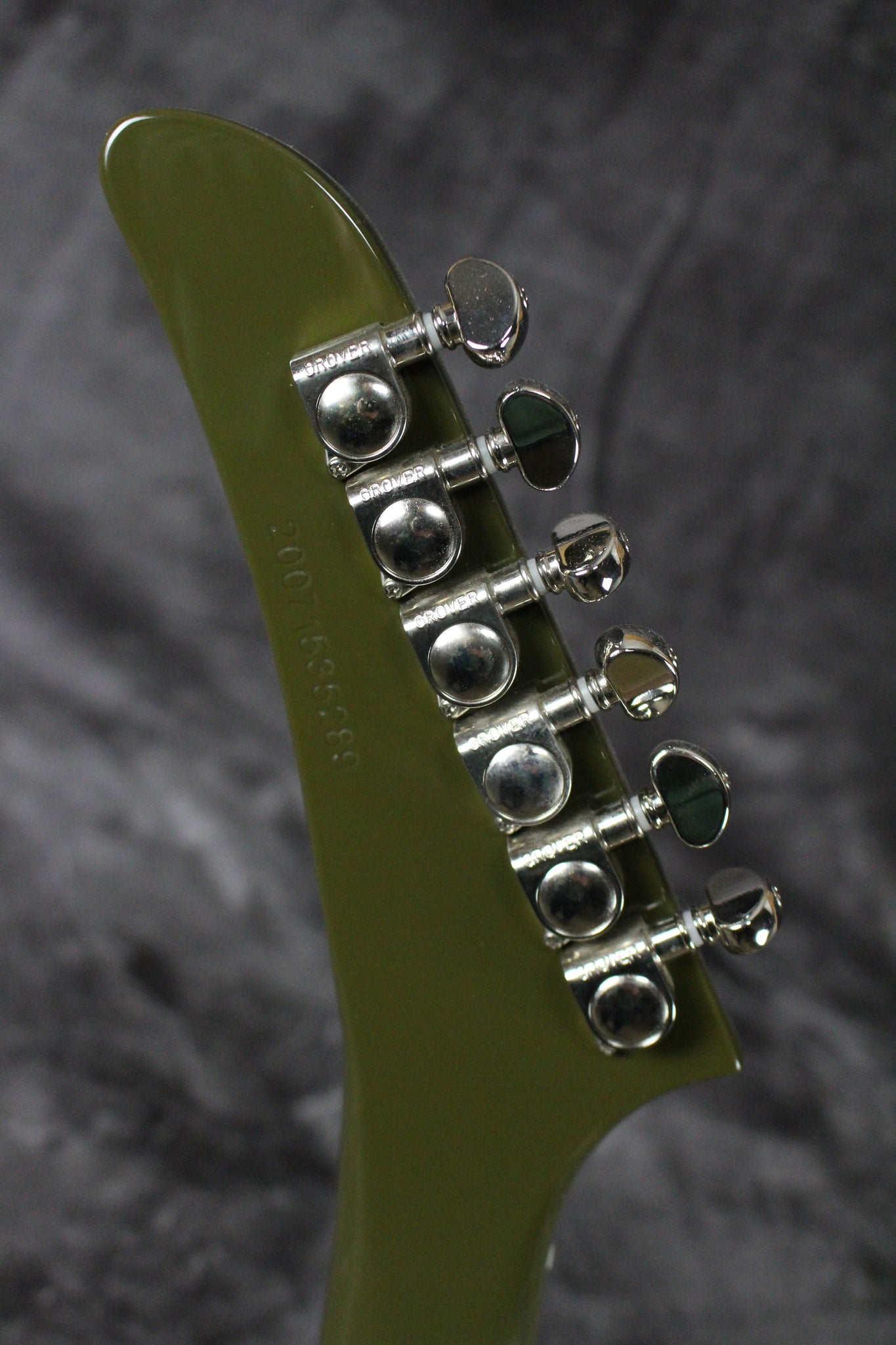 This 2020 Epiphone Explorer Drab Olive Green recreates the ultra-rare classic from 1958. Featuring a Mahogany body in a gloss finish, Epiphone ProBucker humbuckers with CTS electronics, and Grover tuners.