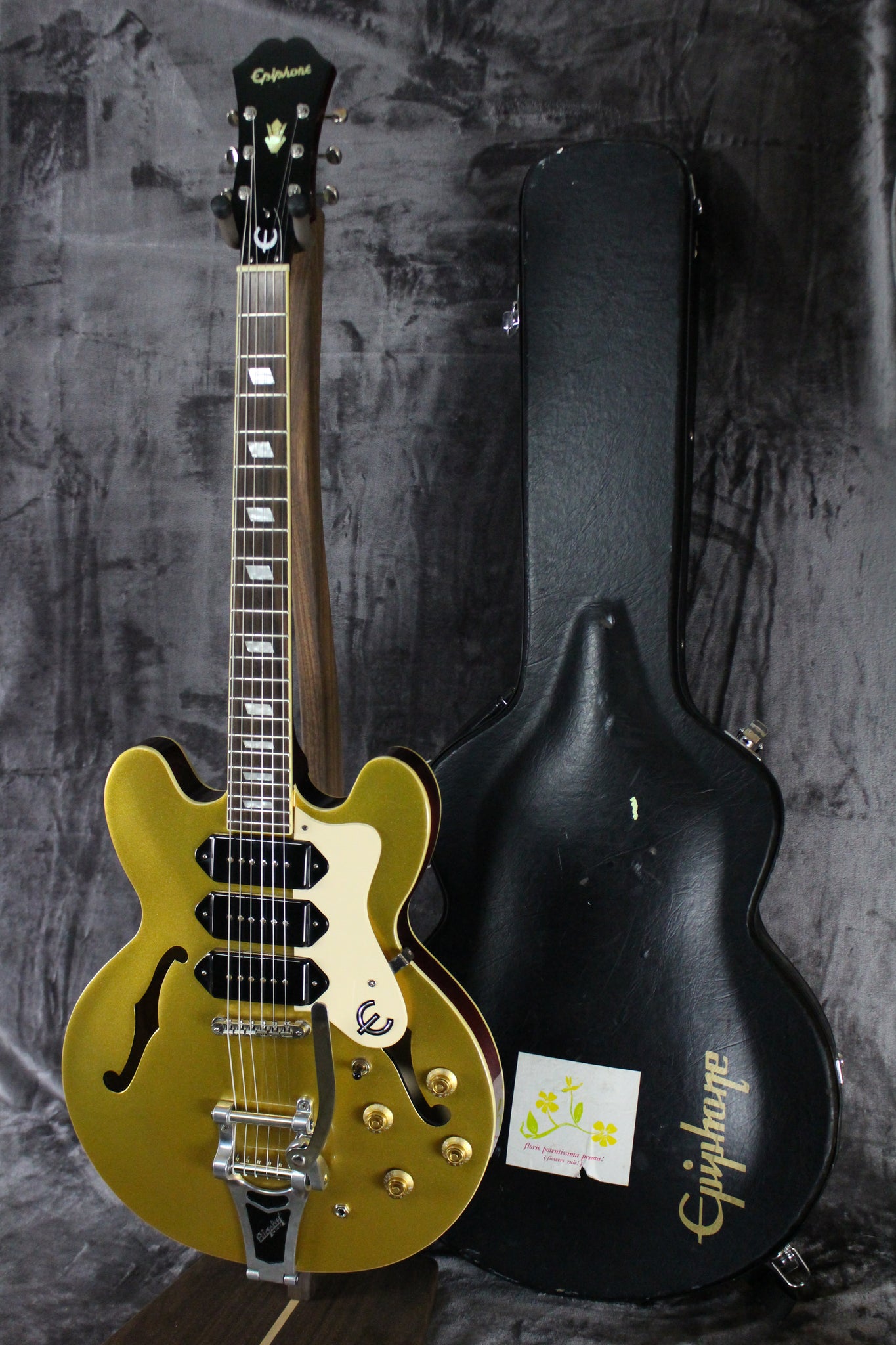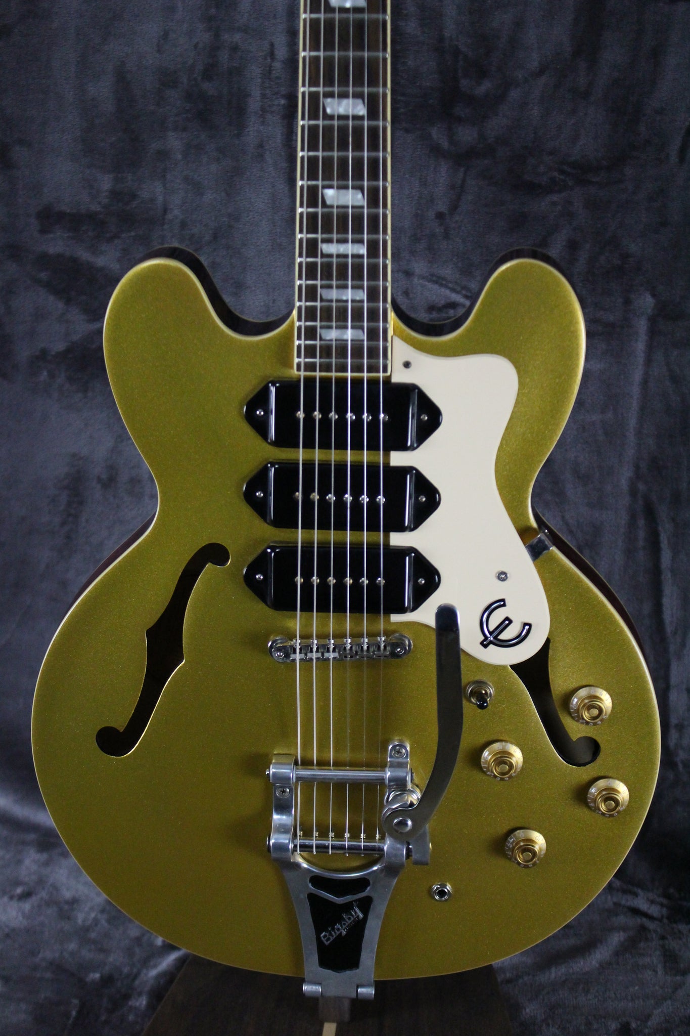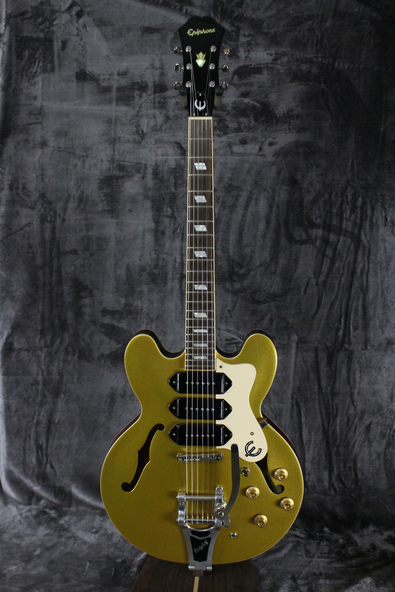 Pickups/Hardware: Epiphone P-90 dogear pickups, Wilkinson 14:1 tuning keys, LockTone Tune-o-matic bridge, Bigsby B700 tailpiece, gold top hats knobs, bone nut.