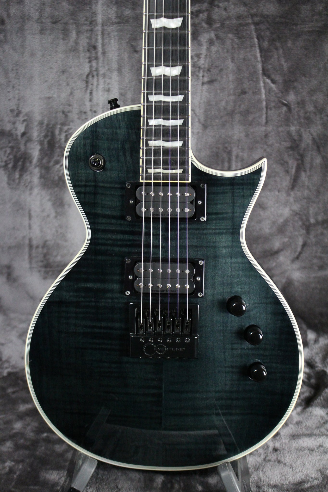 Summary: This 2020 ESP EC1000 ET Deluxe was designed to offer the tone, feel, looks, and quality that working professional musicians need in an instrument, along with the pricing that typical musicians can still afford. The EC-1000 ET adds a remarkable new technology with the EverTune bridge system, which delivers constant tension that keeps your guitar in tune and with near perfect intonation up and down the neck under almost any condition. Now available with a great-looking flamed maple top, it offers set-thru construction with a mahogany body and maple cap, 3 pc. mahogany neck, and 24-fret ebony fingerboard, multi-ply body/neck/headstock binding, and the excellent tone from a Seymour Duncan JB/Jazz passive pickups.