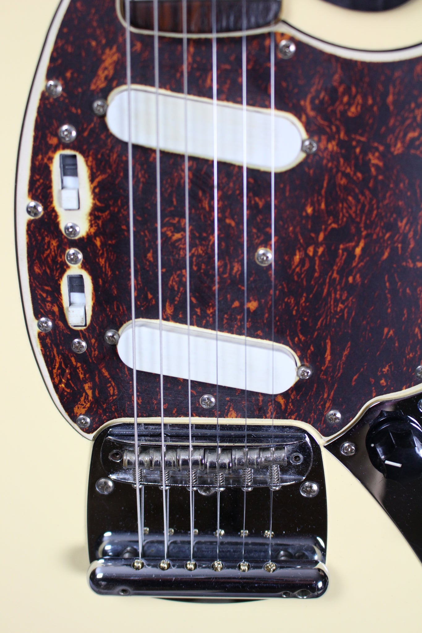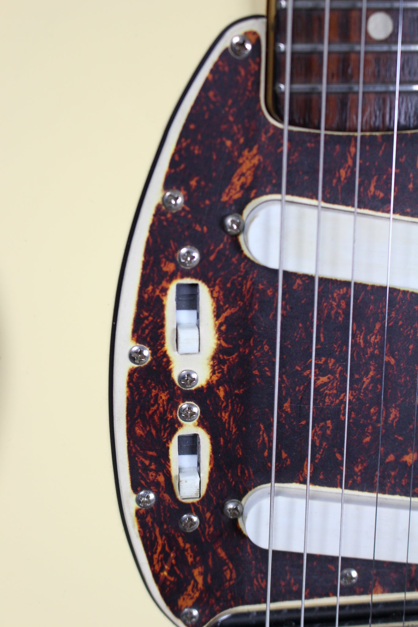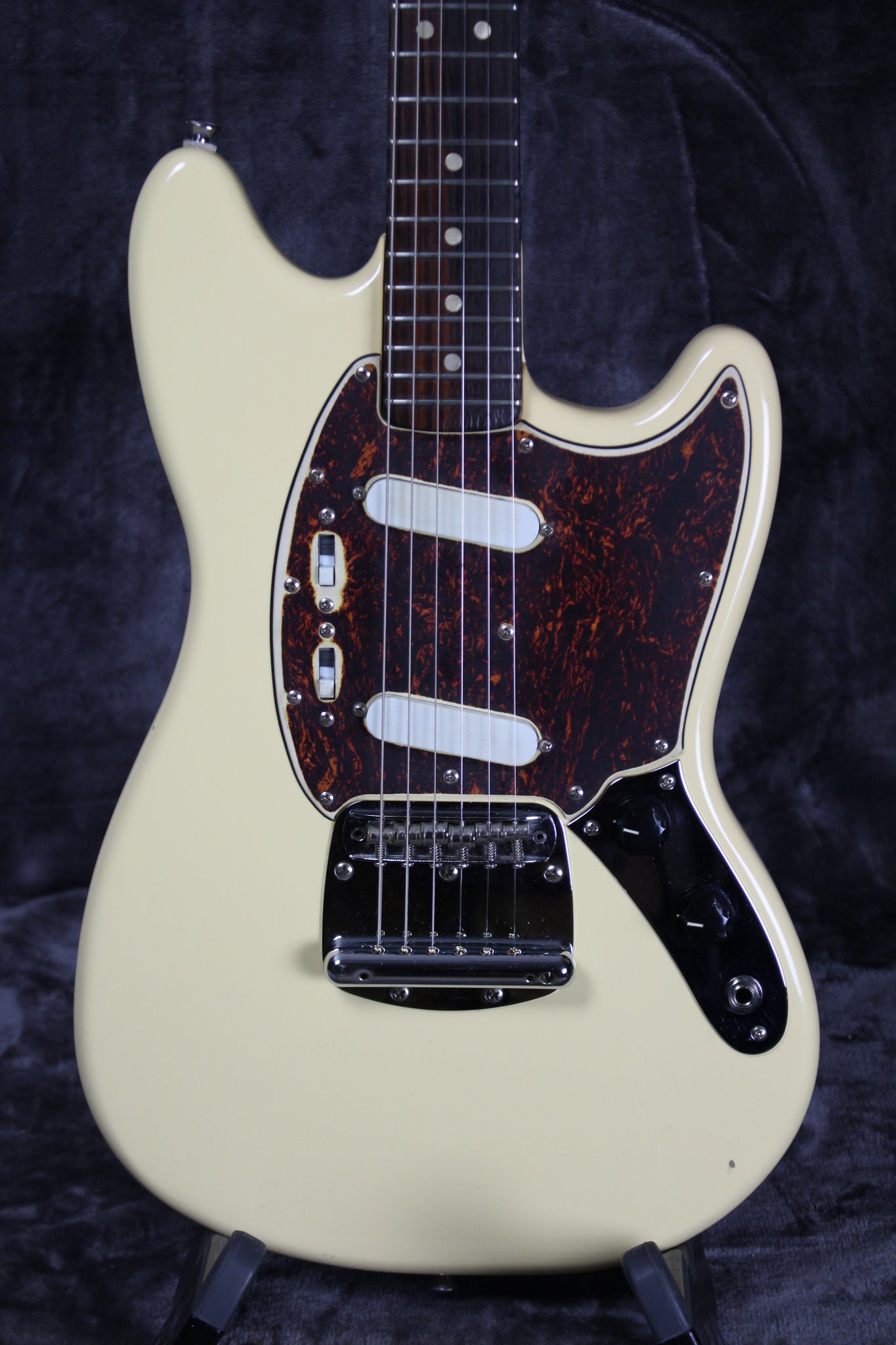 Pickups/Hardware: Seymour Duncan pickups, Fender tuning keys, Mustang bridge, black plastic knobs, bone nut.