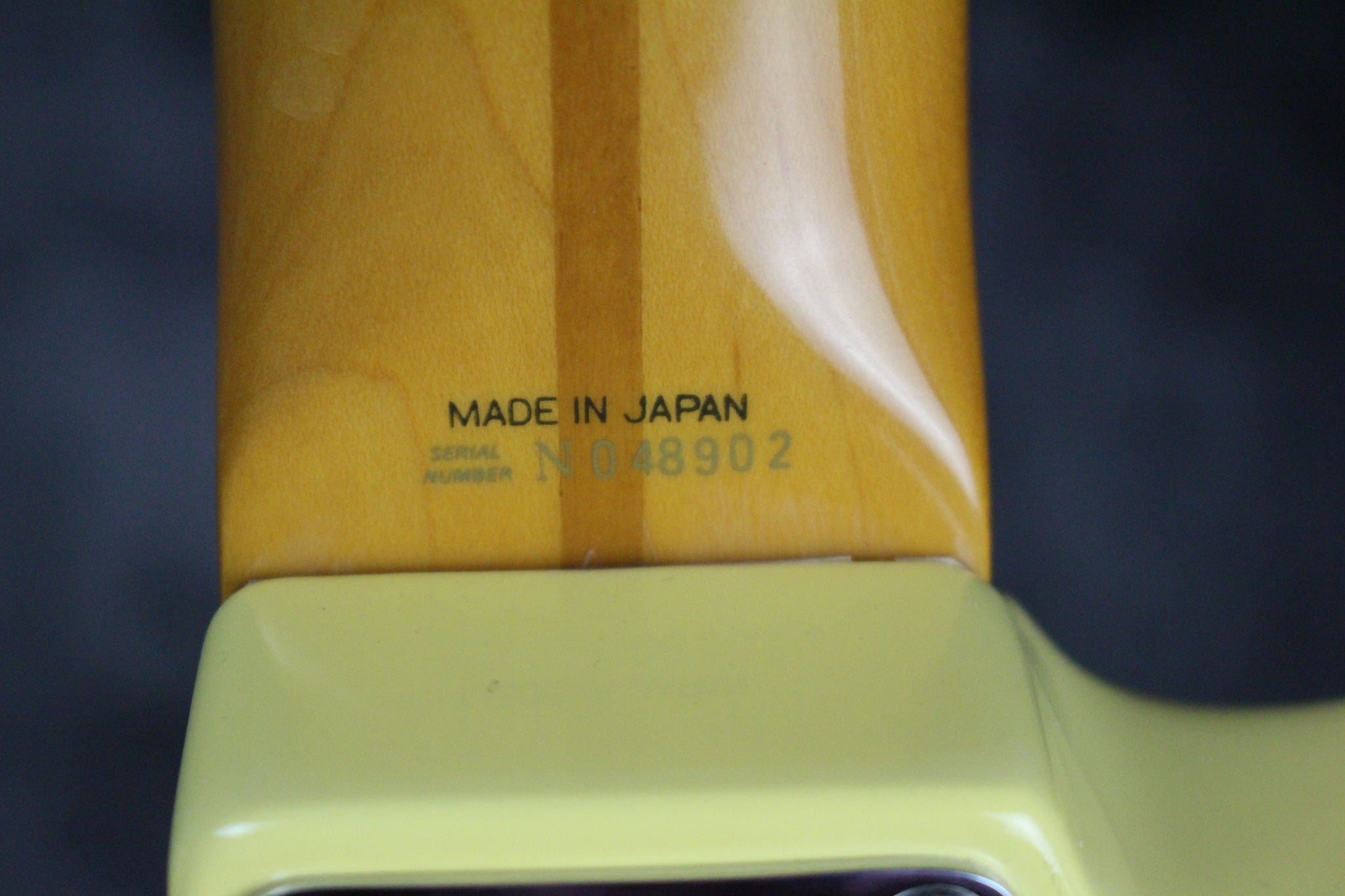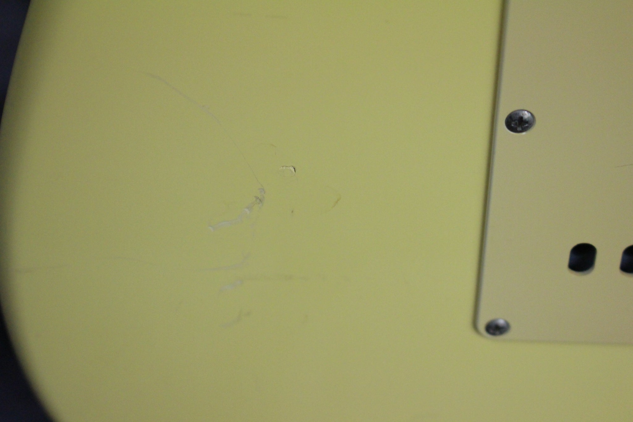Body: Solid, double cutaway finished in a light-yellow gloss.