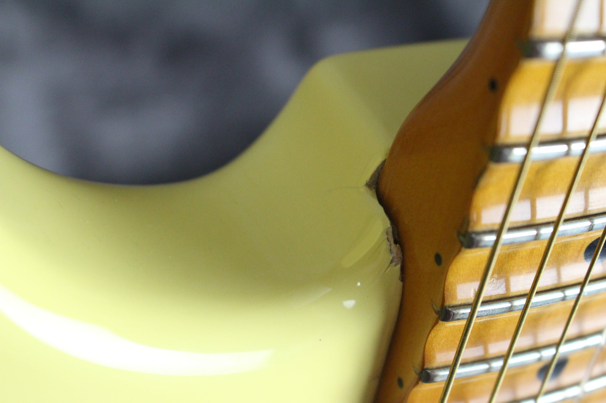 Playability: Our in-house guitar tech has inspected, setup, and restrung this instrument with a new set of strings. The neck is straight, the truss rod is fully functional, and the action has been setup low and comfortable. The frets are in great shape with no major grooves or divots from use and it plays beautifully up and down the fretboard with no dead spots or choking out.