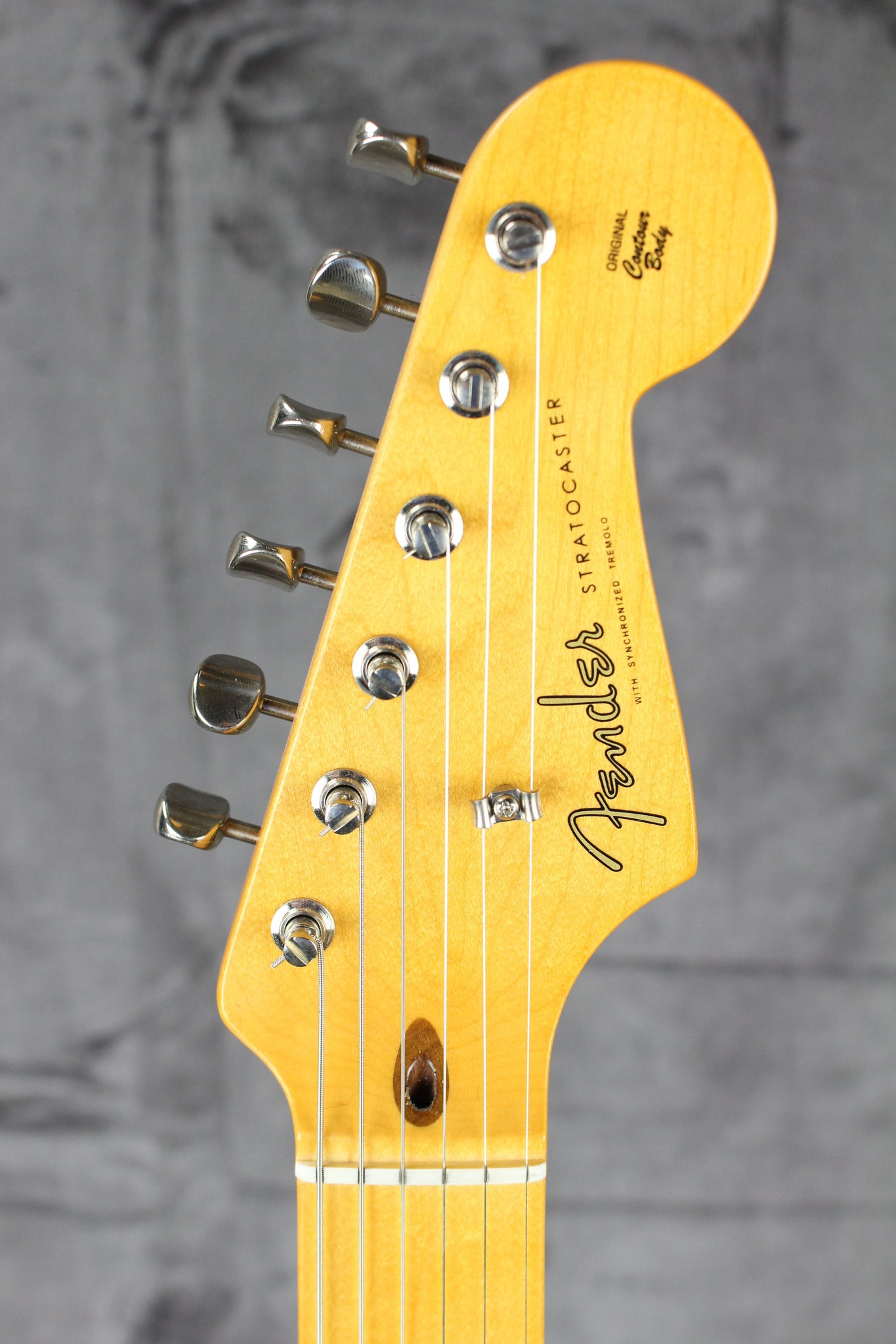 Pickups/Hardware: Dimarzio Area 51 single coil pickup in the neck, Area 51 in the middle position, and an Area 61 in the bridge, one master volume/one tone/one mid boost knob, five way pickup selector, 2-point synchronized tremolo system, vintage style locking tuners, single-ply pickguard.