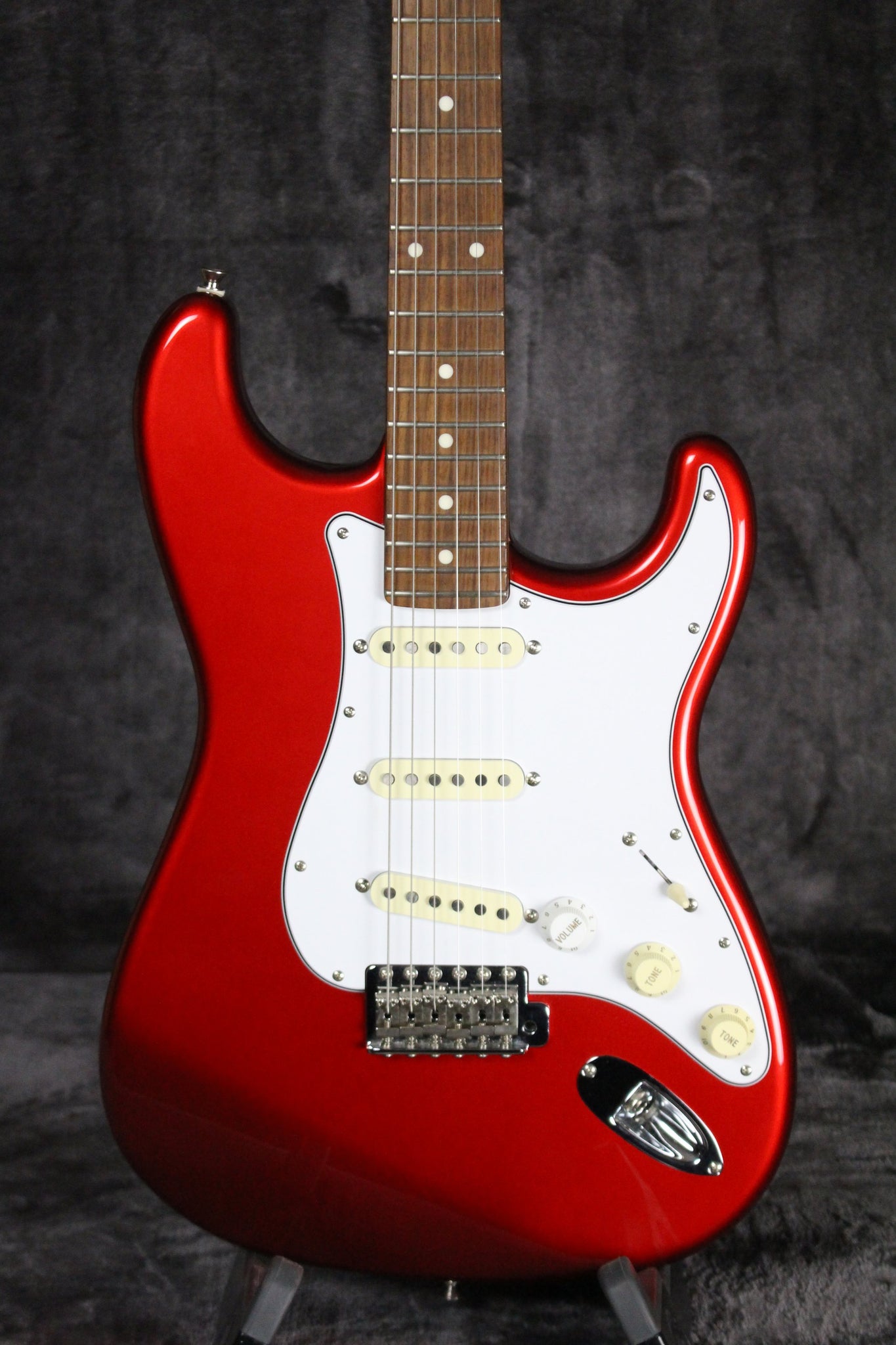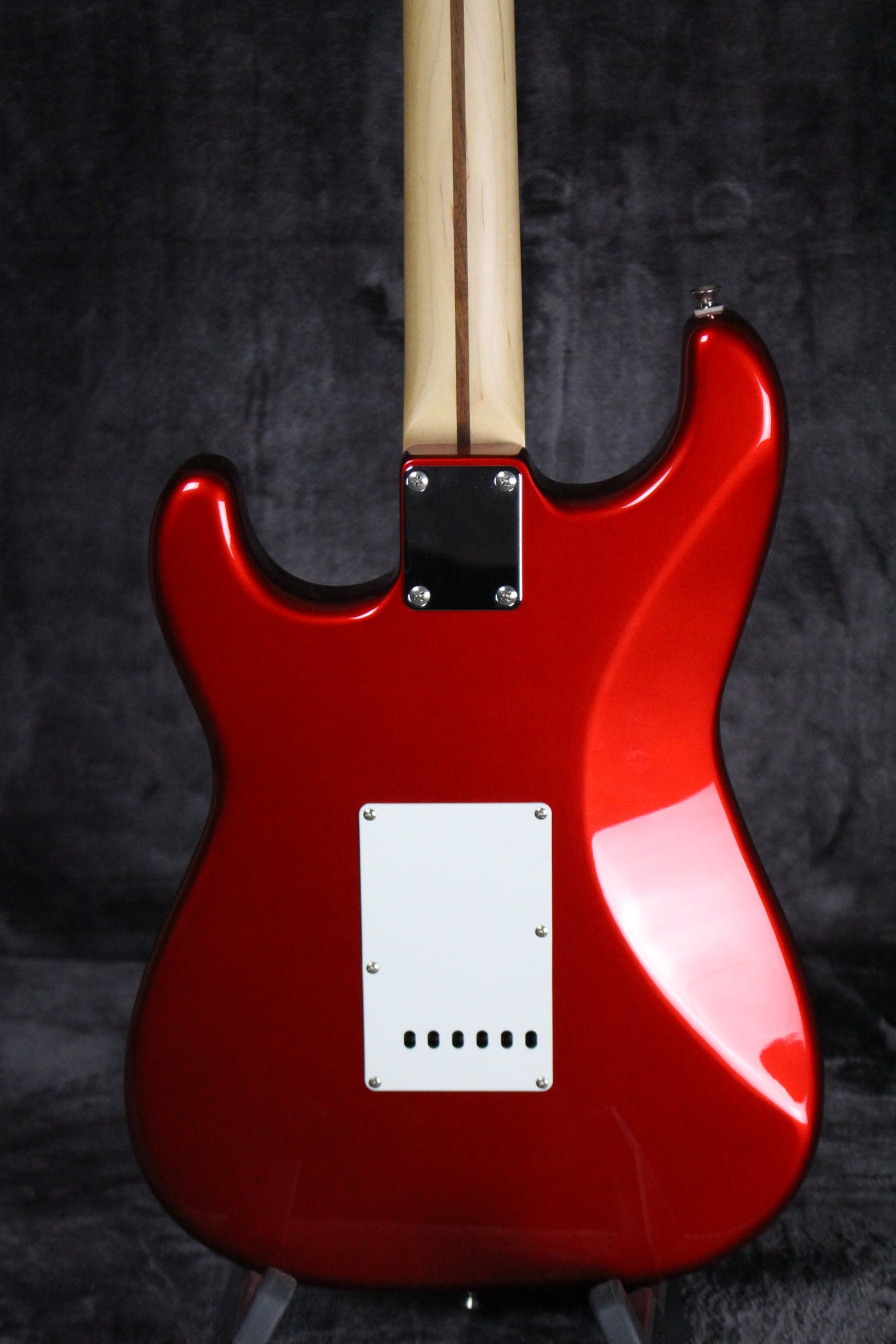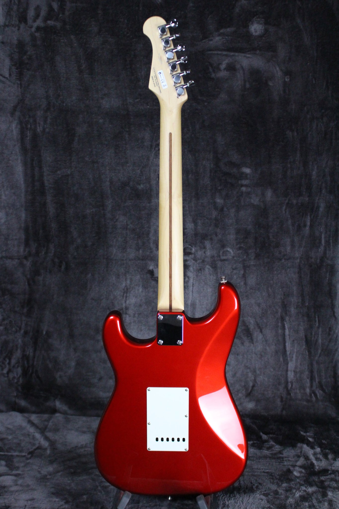 Body: Solid body, double cutaway, “S” style, gloss Candy Apple Red finish.