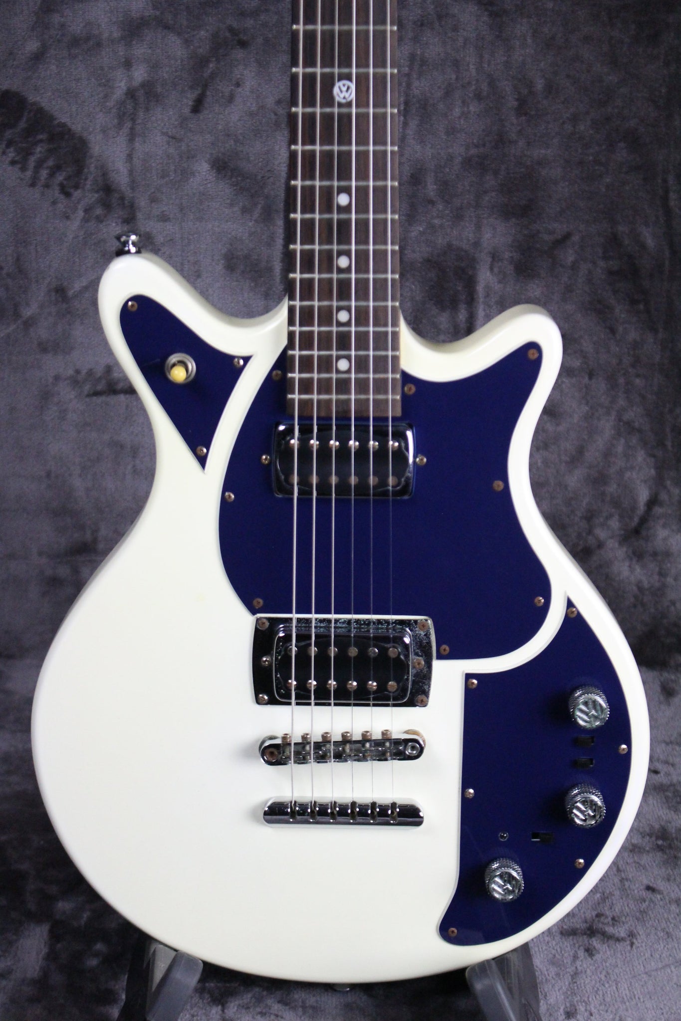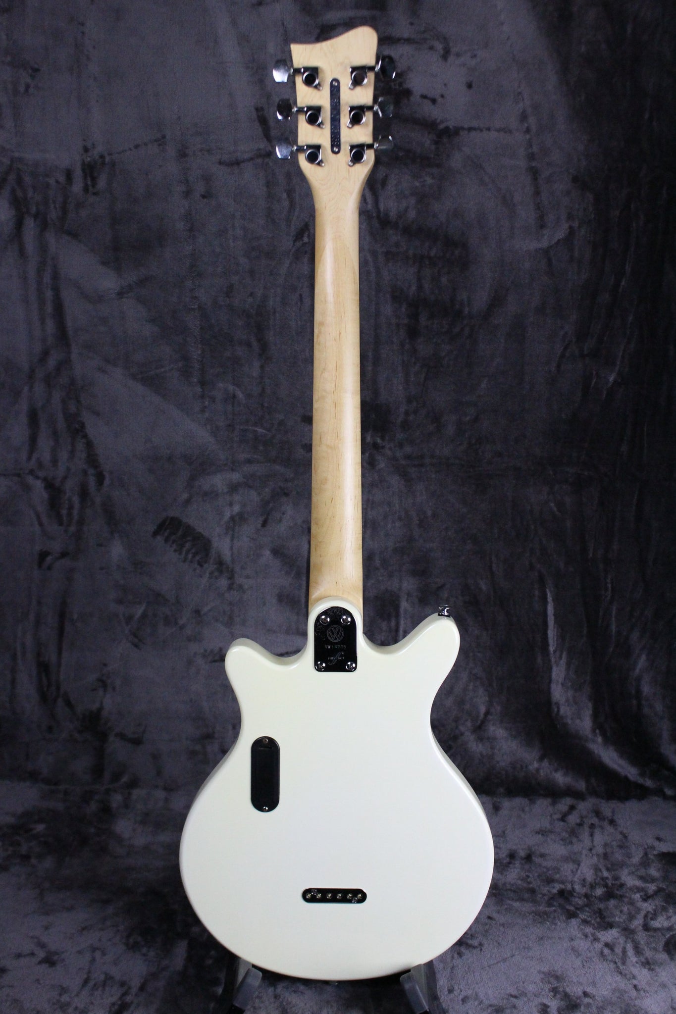 Pickups/Hardware: Two humbucking pickups, chrome hardware, 3-way pickup selector, two volume knobs/one tone knob, three per side tuning keys, car VIN number plate is on the back of the headstock.
