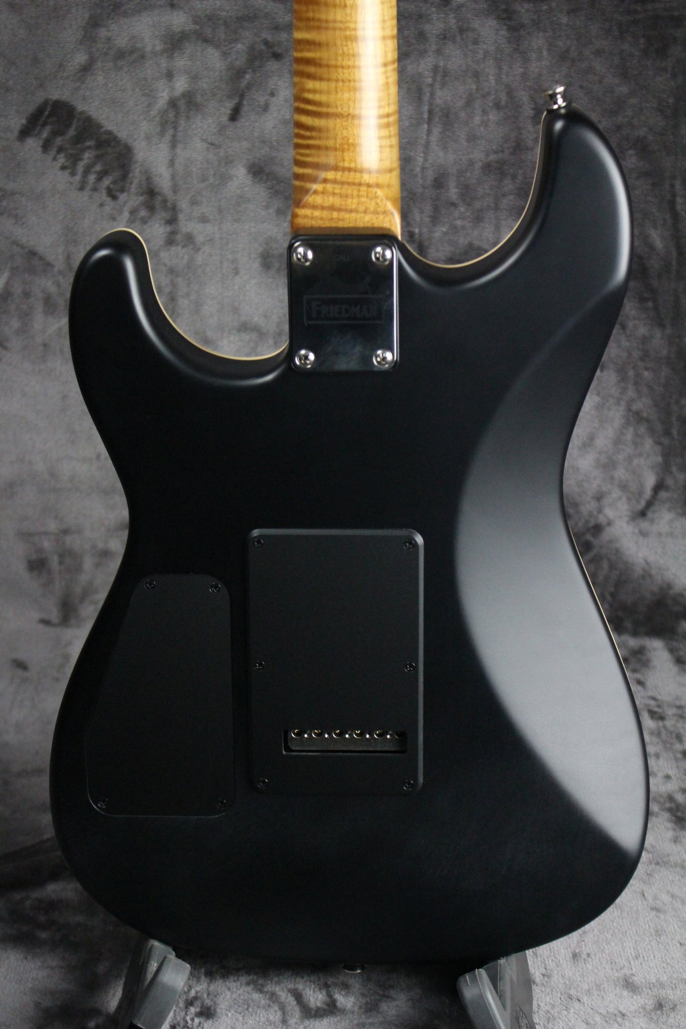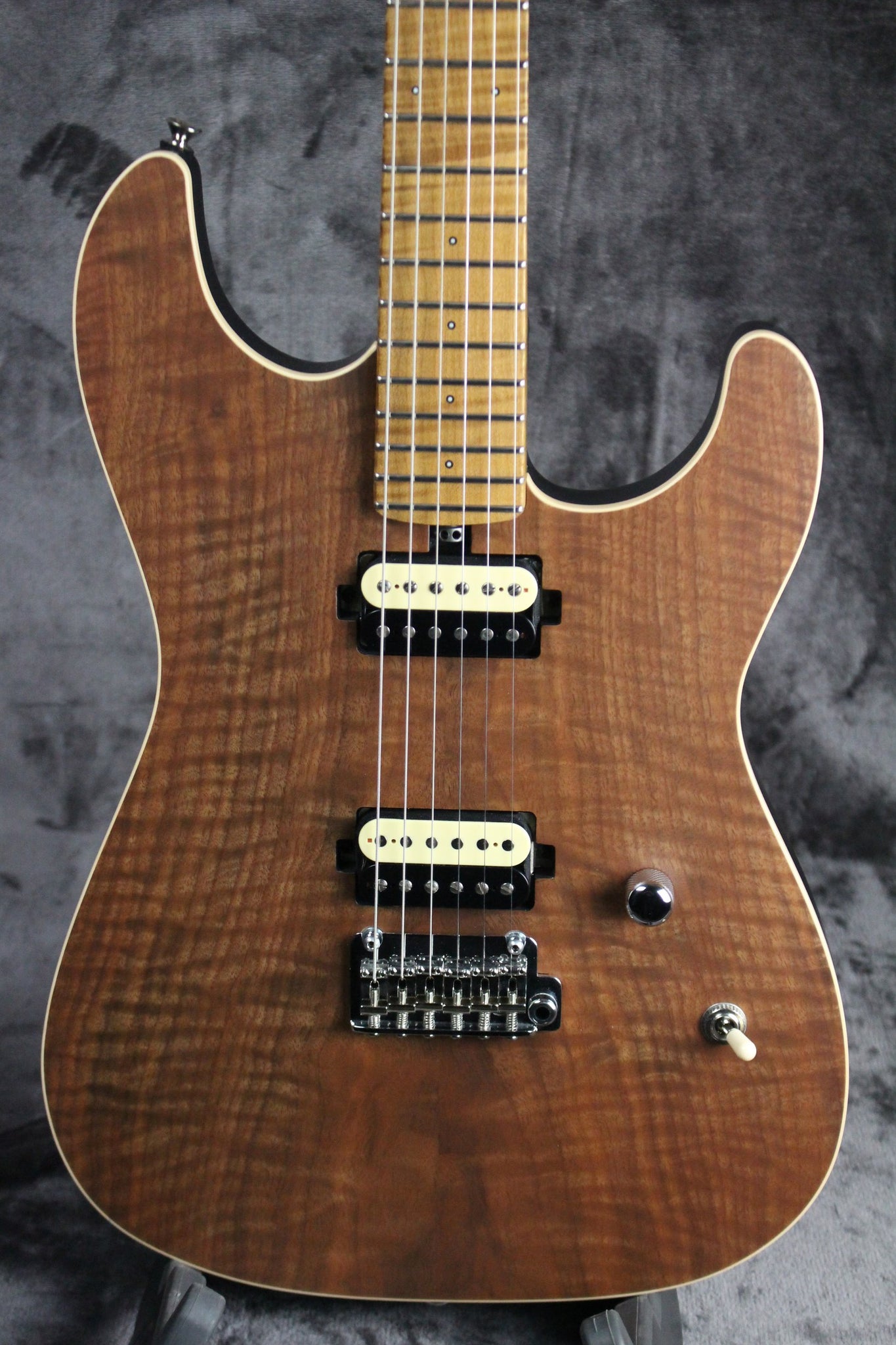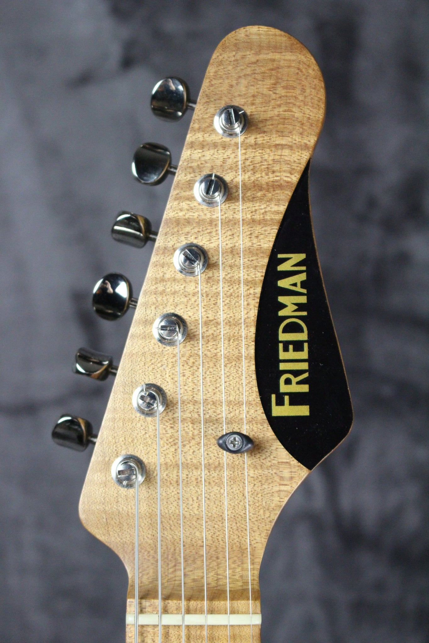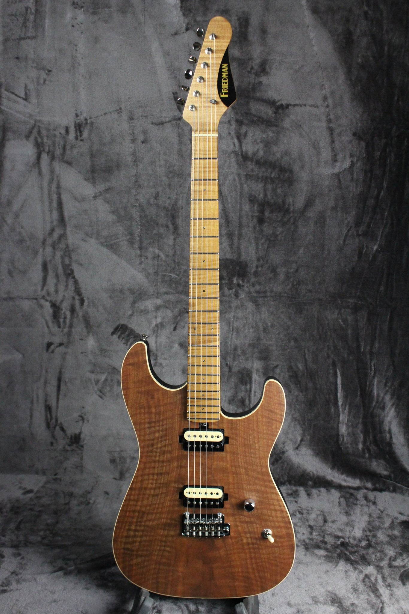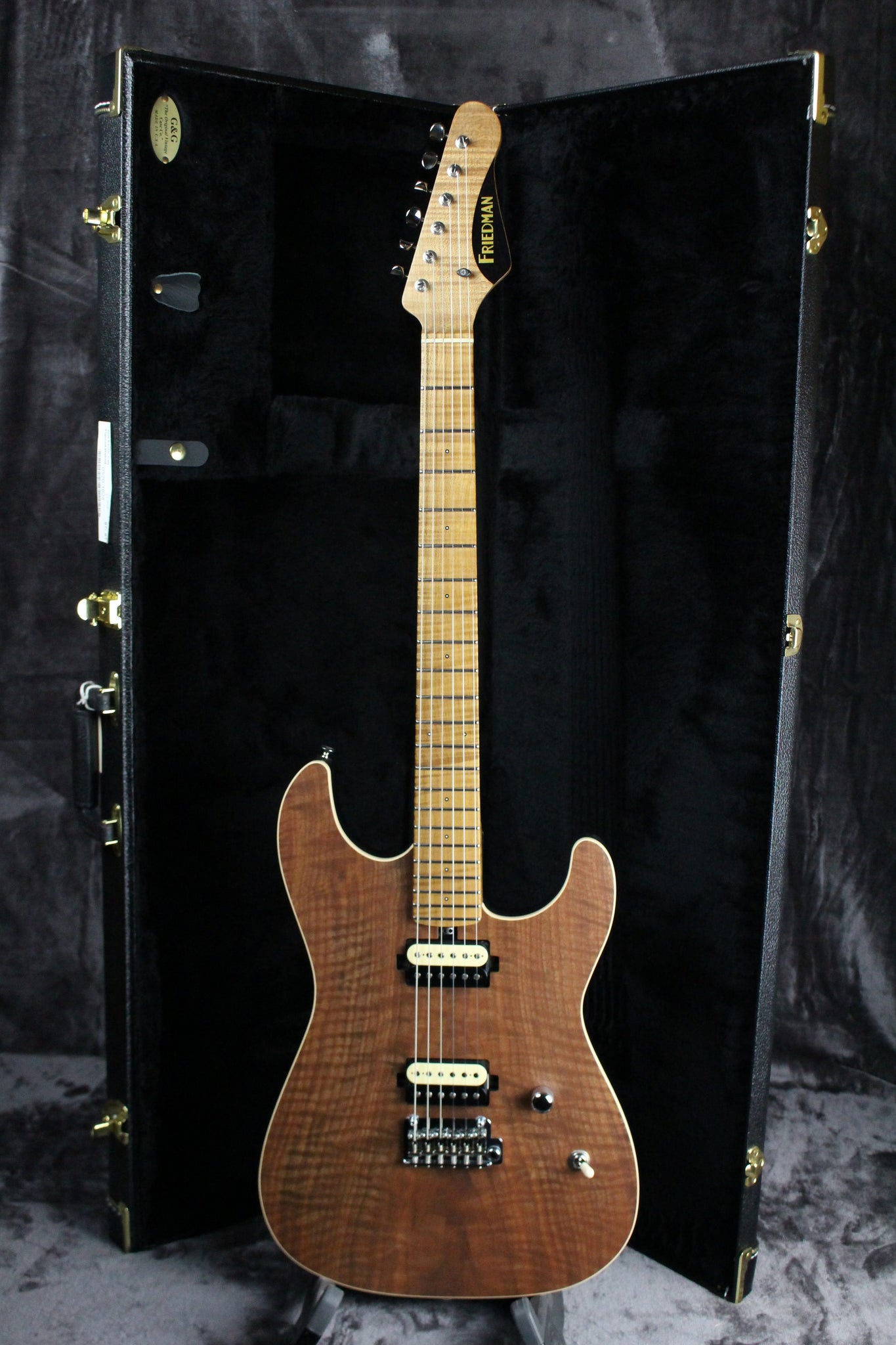 This 2020 Friedman Cali features a splendid 4A Figured Walnut top and a gorgeous roasted flamed Maple neck. It has a fat bass response, snarling midrange, and sizzling high-end. The flatter radius is what really makes this guitar fit for speed and it's easier to play a thousand notes a second if you only have to worry about one volume knob and one three-way switch.
