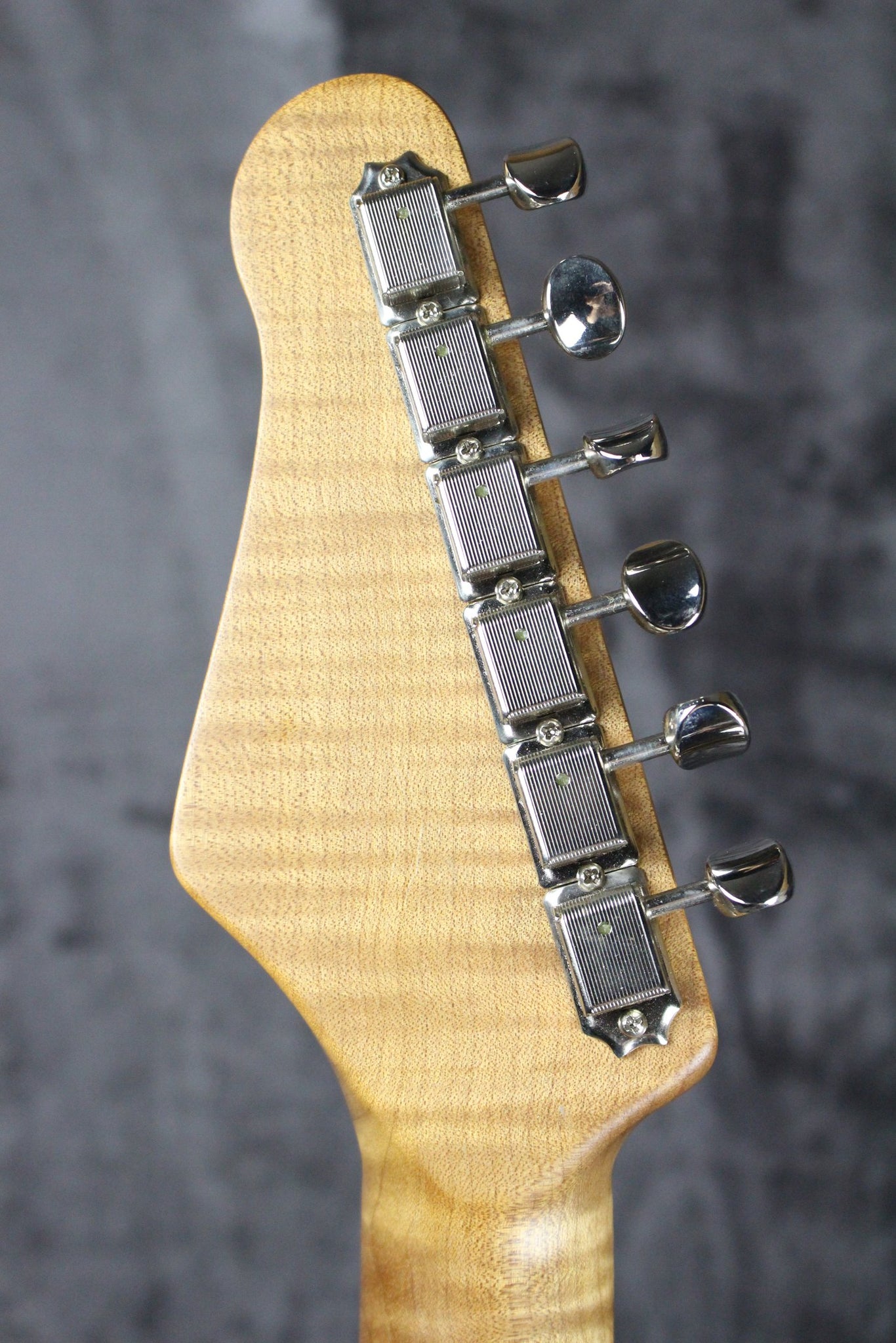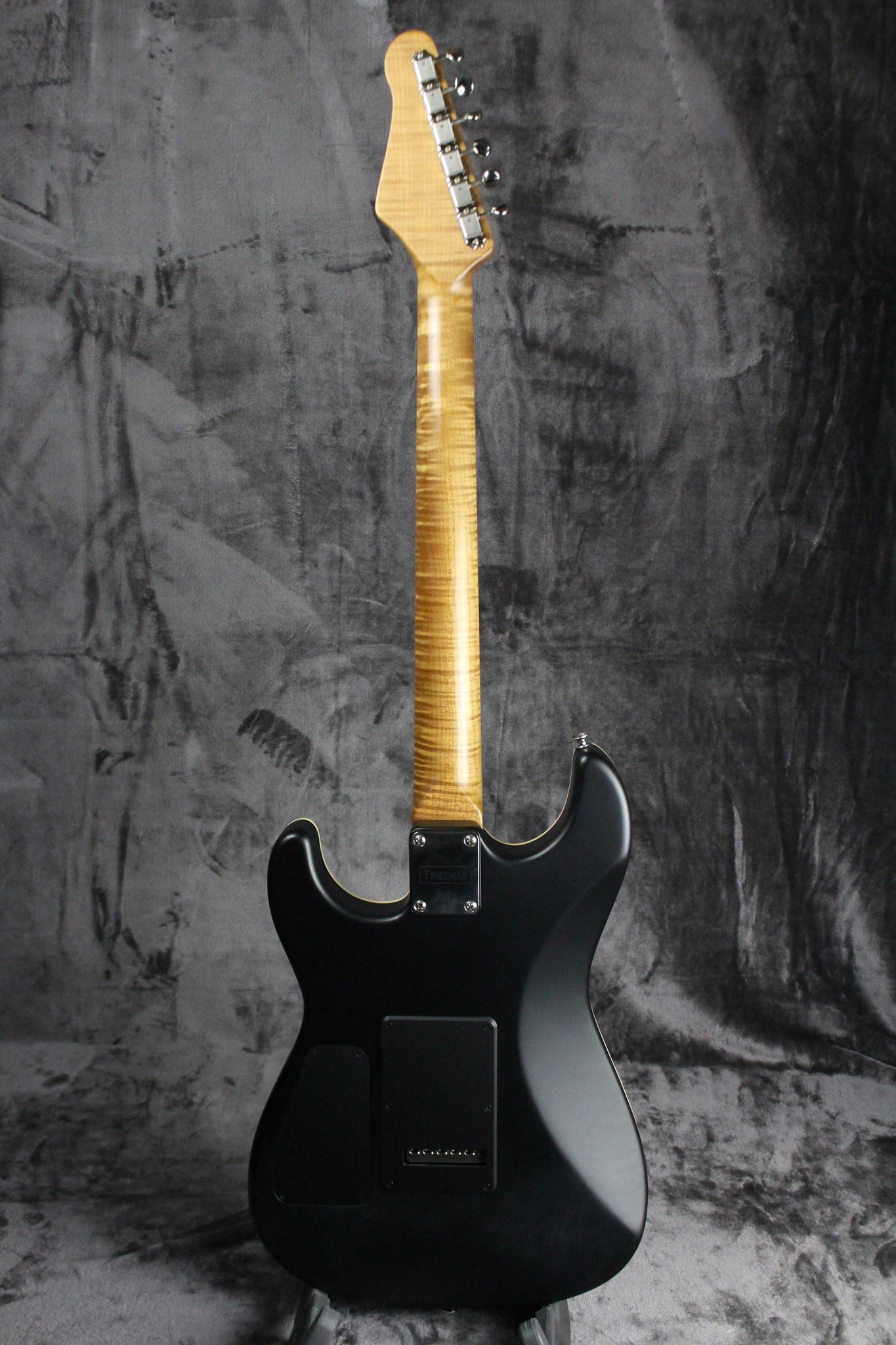 Neck:  Roasted Flame Maple with a Maple fingerboard, 25.5” scale length, 1.625” nut width, 14” radius, bullseye dot inlays, 22 frets.