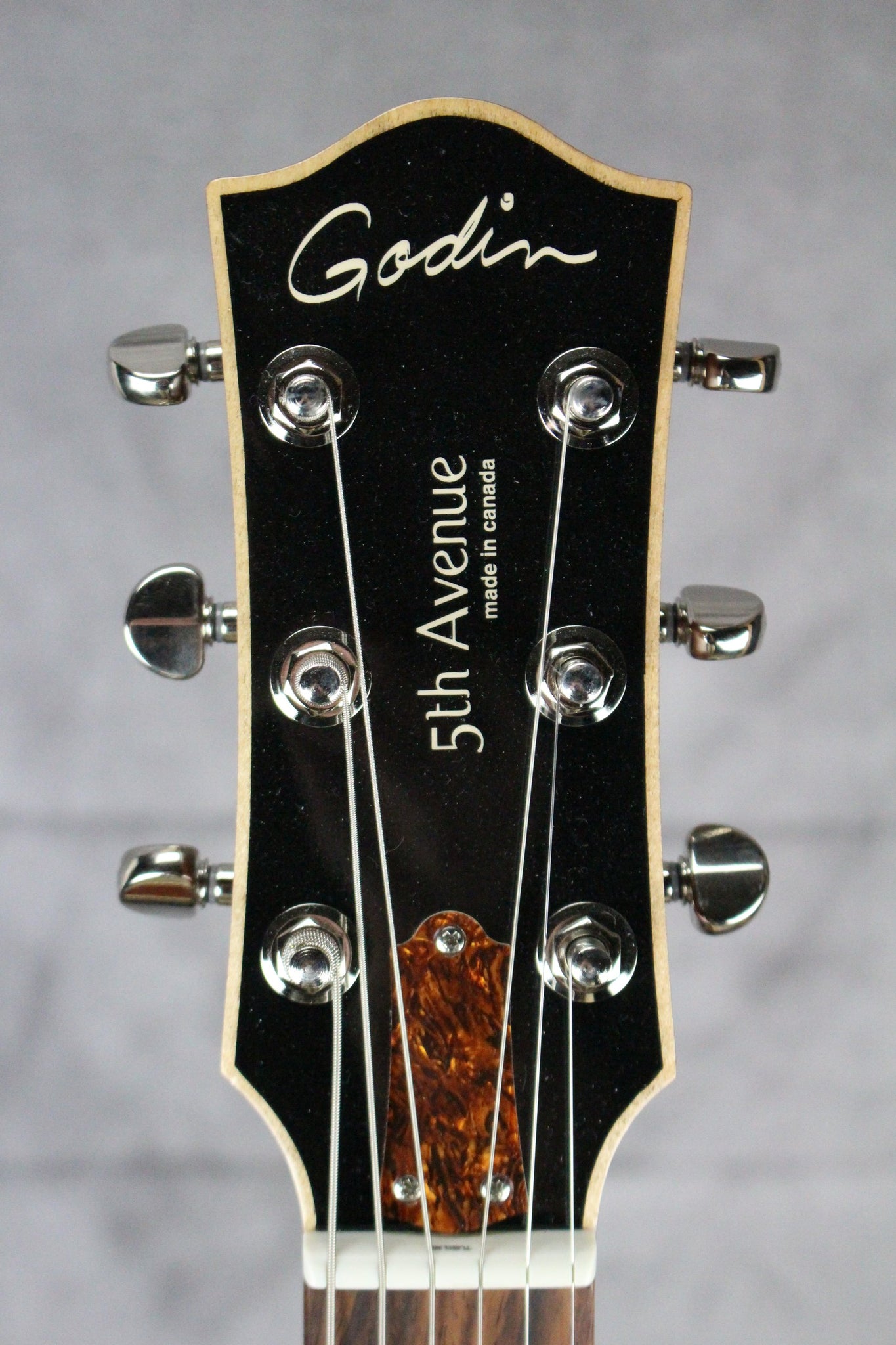 Summary: The 5th Avenue CW Kingpin features a Cutaway body design and the added sounds of two Godin Kingpin P90 single-coil pickups, which deliver all that classic vintage tone with presence and clarity. With the soul of a 1950s archtop, the 5th Avenue is a true vintage spirit of yesterday with today’s level of modern playability. With more projection & volume in the lows and mids than traditional archtop acoustic guitars, the dynamically rich tone of the 5th Avenue makes this sophisticated instrument a dream to play.