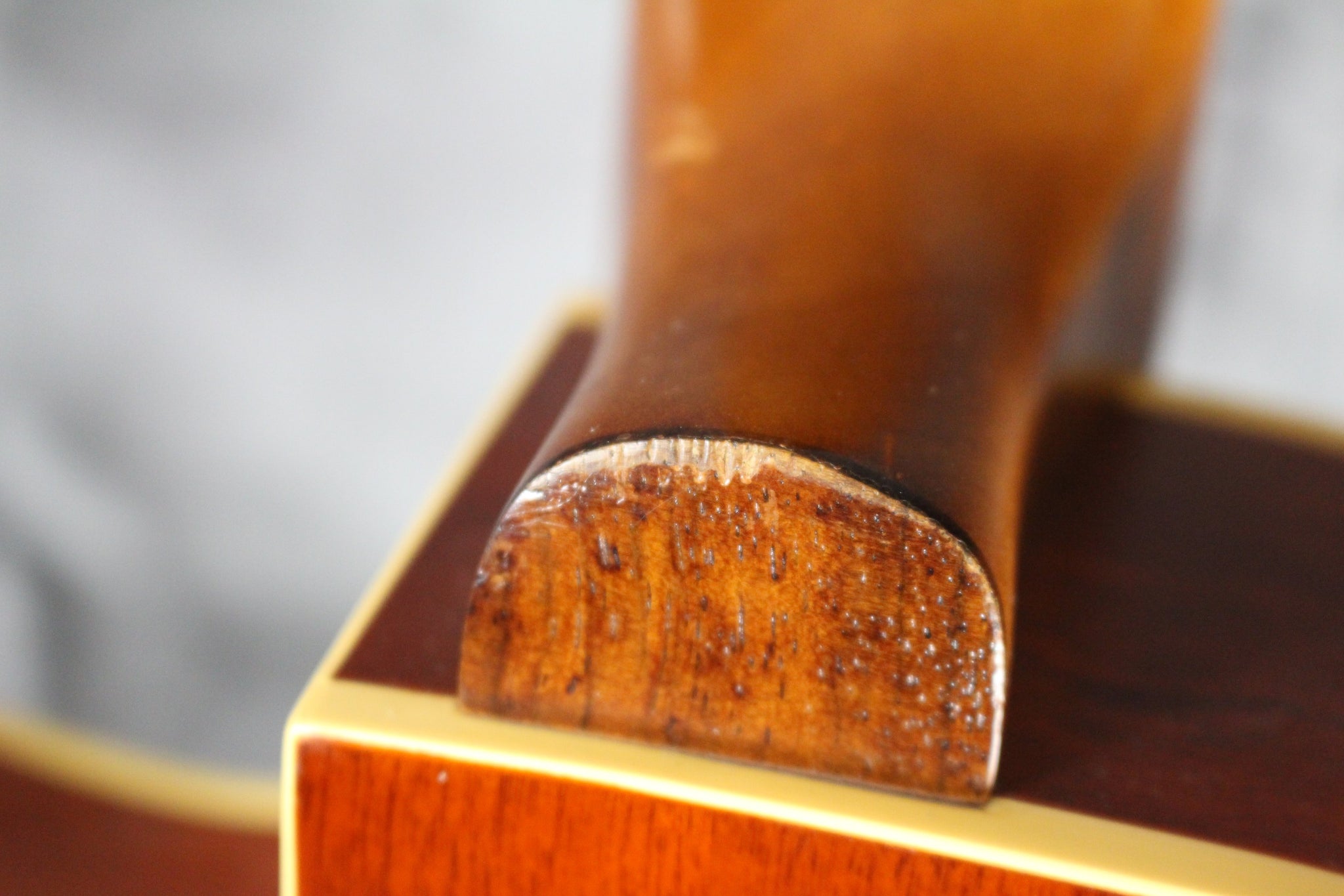 Playability: Our in-house guitar tech has inspected, setup, and restrung this instrument with a new set of strings. The neck is straight, the truss rod is fully functional, and the action has been setup low and comfortable. The frets are in great shape with no major grooves or divots from use and it plays beautifully up and down the fretboard with no dead spots or choking out.