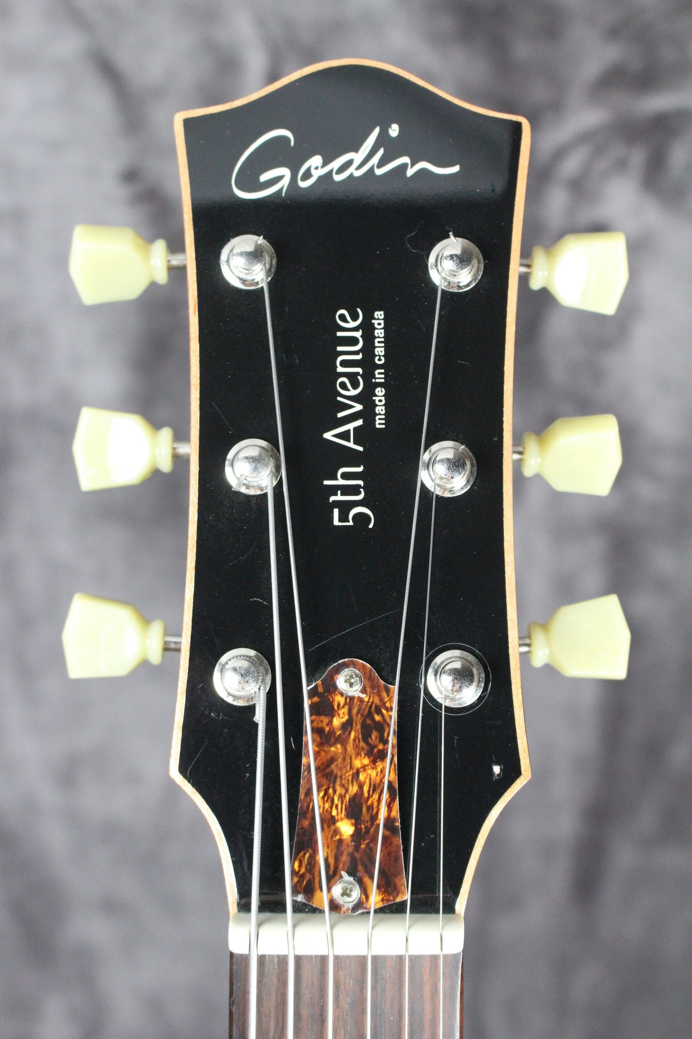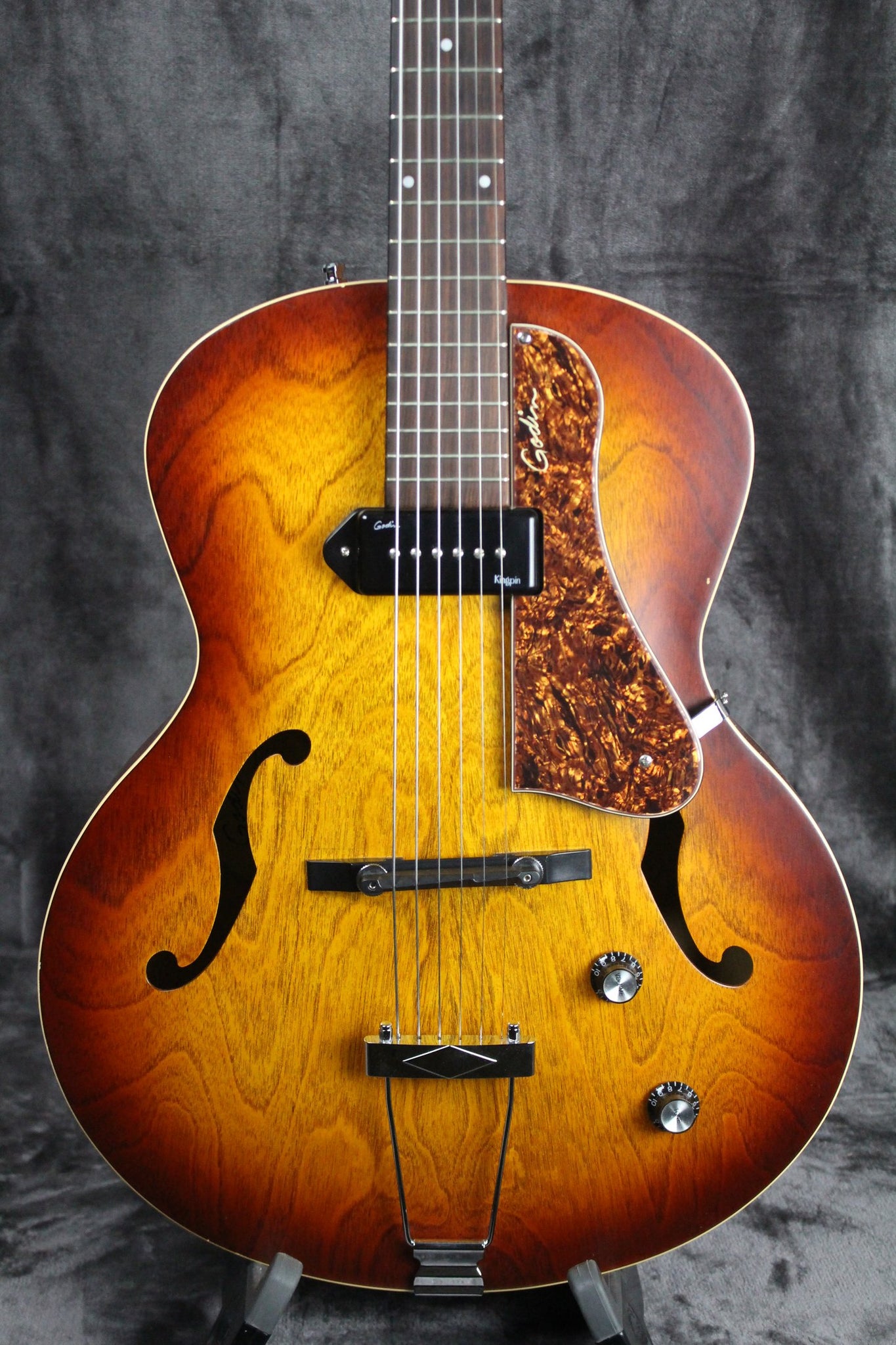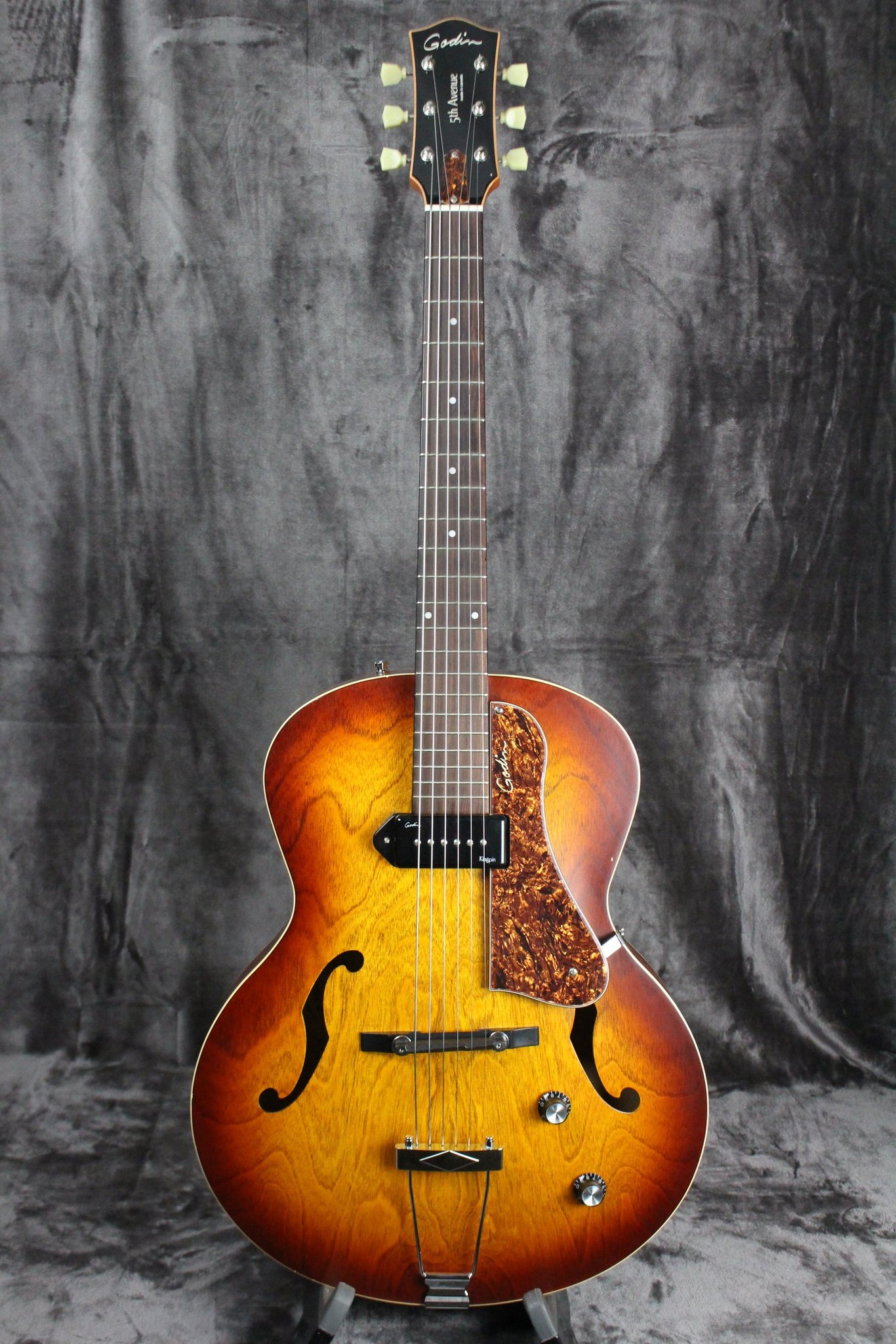 Summary: The Godin 5th Avenue Kingpin archtop guitar is ideal for any level of guitarist. It has a dynamically rich tone with plenty of projection, thanks to the Canadian wild cherry archtop top, back, and sides. The 5th Avenue Kingpin's vintage tone is courtesy of the warm and rich P-90 pickup at the neck.