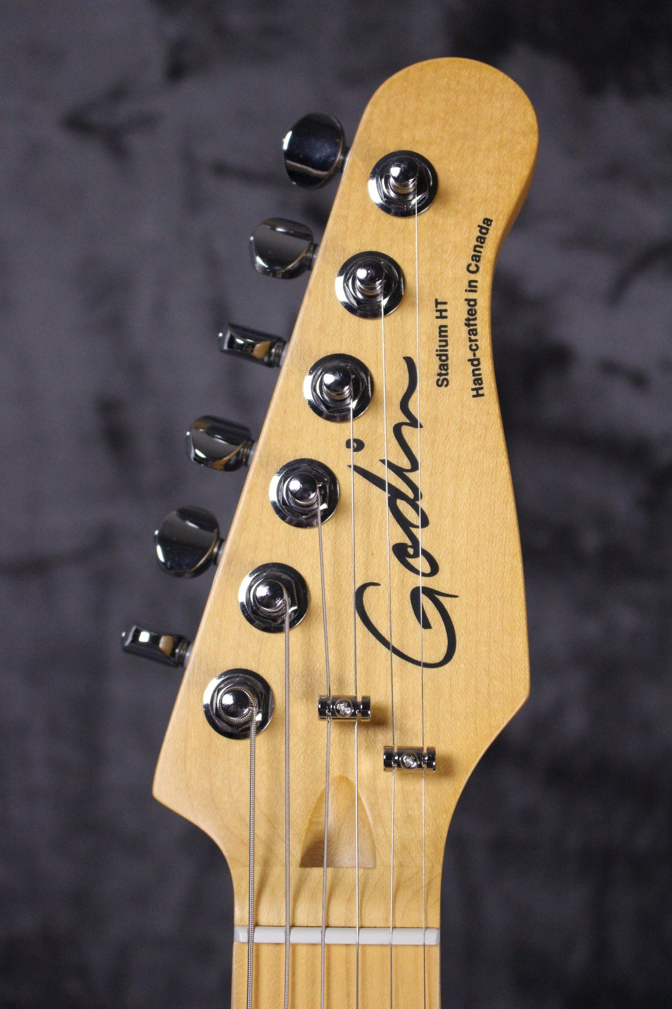 Summary: The Godin Stadium HT provides plenty of tonal versatility in a vintage-style package. It all begins with a body made from Canadian basswood. It's given comfortable contours and mated with a 22-fret maple neck. The neck is carved into a comfortable D-shaped profile. It comes equipped with a pair of Godin single-coil pickups, a GS-3 in the neck and a Custom Cajun in the bridge. The neck pickup delivers warm, rounded tones while the bridge produces a bright and spanky character. Together with the 3-way switch, these pickups can produce tones that cover all genres.