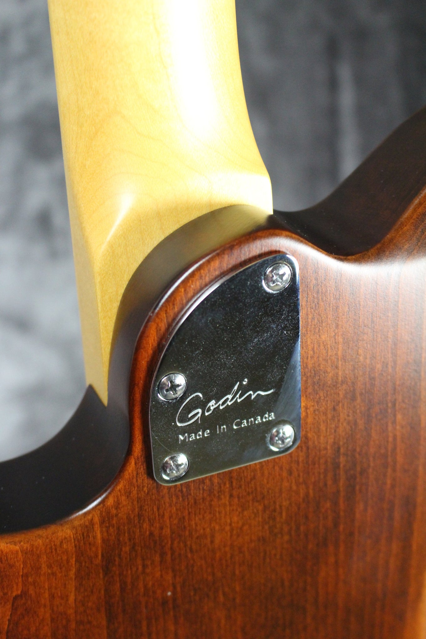 Pickups/Hardware: Two Godin single coil pickups (GS-3 & Custom Cajun), Godin tuning keys, Custom T Ashtray Bridge with 3 Brass Saddles, master volume/master tone control/3-way pickup selector, GraphTech nut.