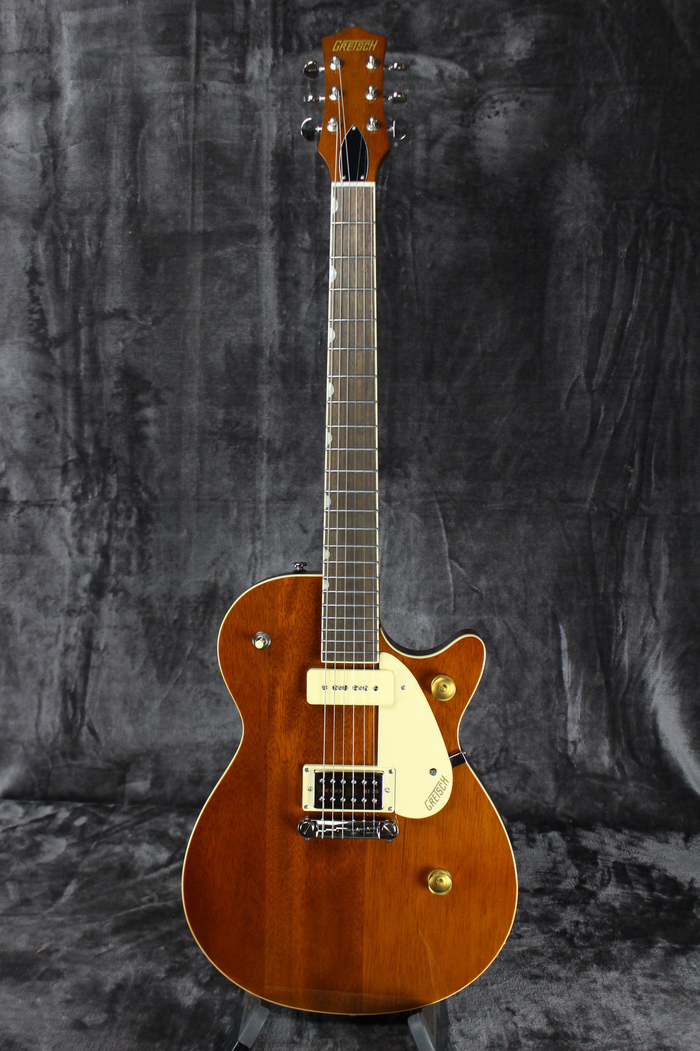 Pickups/Hardware: Gretsch Broad'Tron BT-2S bridge,P90 Soap Bar neck pickups, die-cast tuning keys, anchored compensated wrap-around bridge, Gold Electro-Style knobs, Synthetic Bone nut.