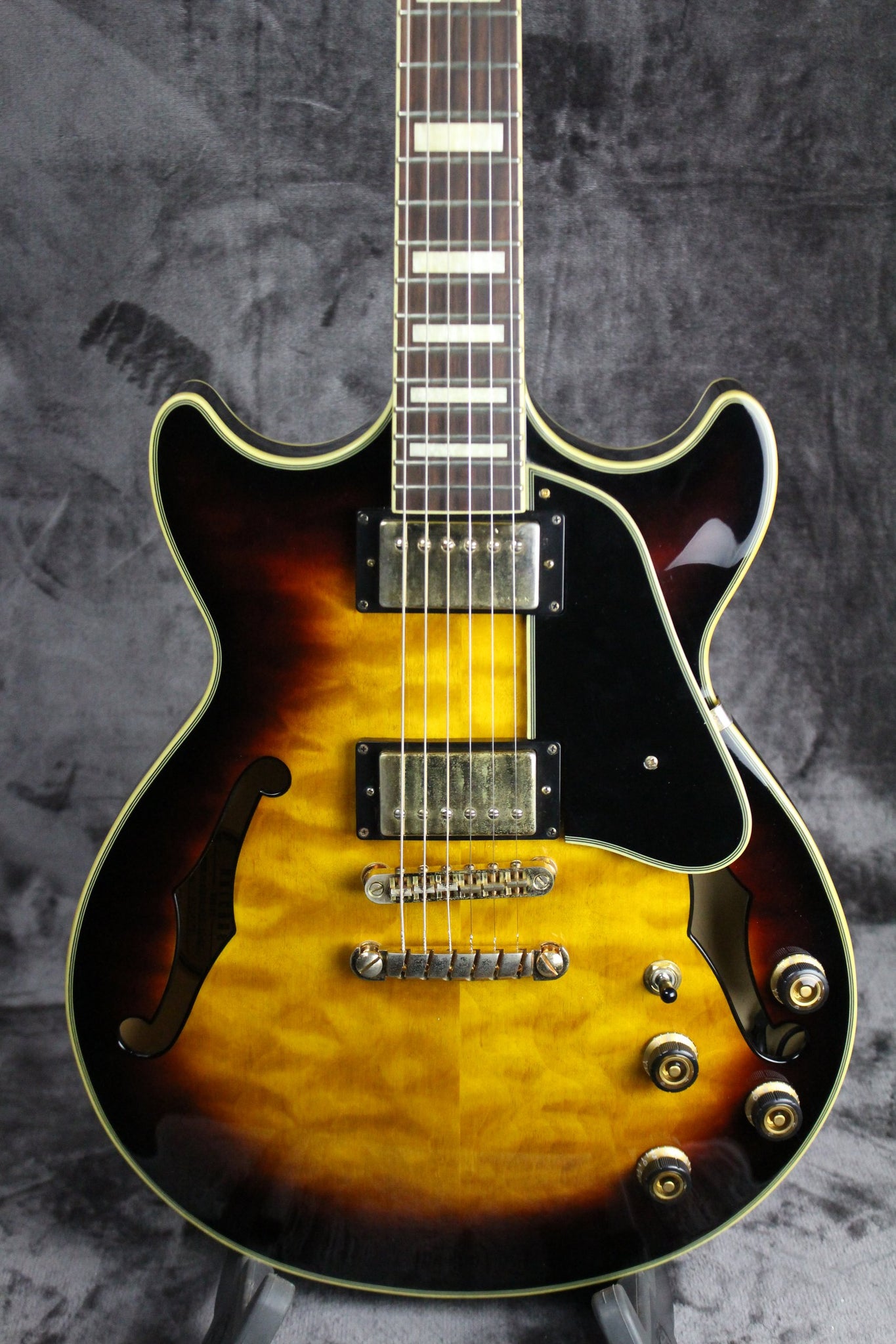 Body: Quilted Maple top with Quilted Ash back/sides, semi-hollow.