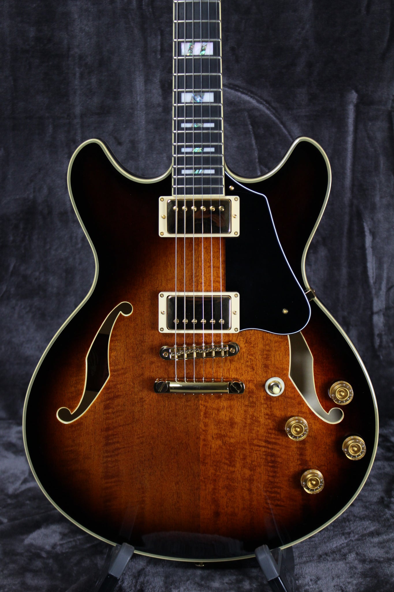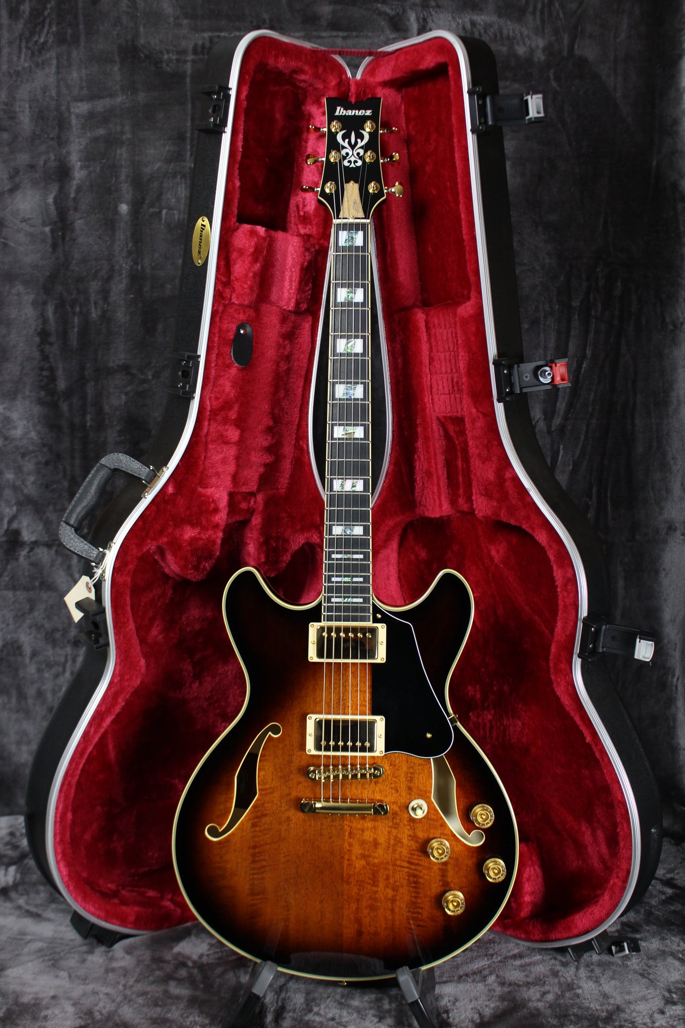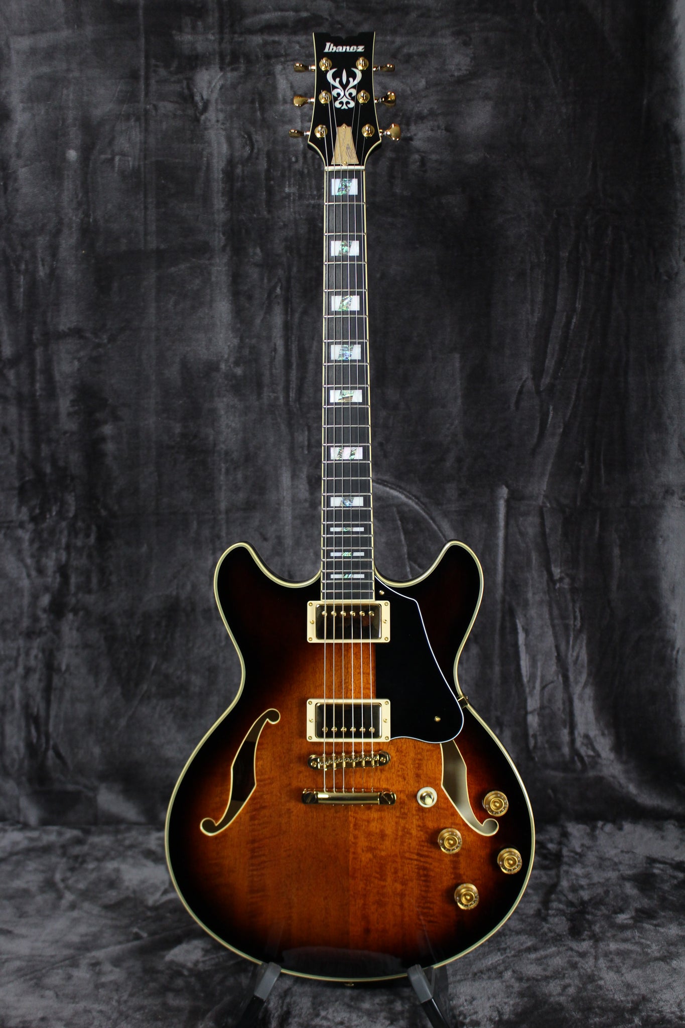 Pickups/Hardware: Ibanez Super 58 pickups, Gotoh 510 Gold tuning keys, Gotoh 510BN bridge, Gotoh GE101A tailpiece, gold speed knobs, Half-Bone/Half-Brass nut.
