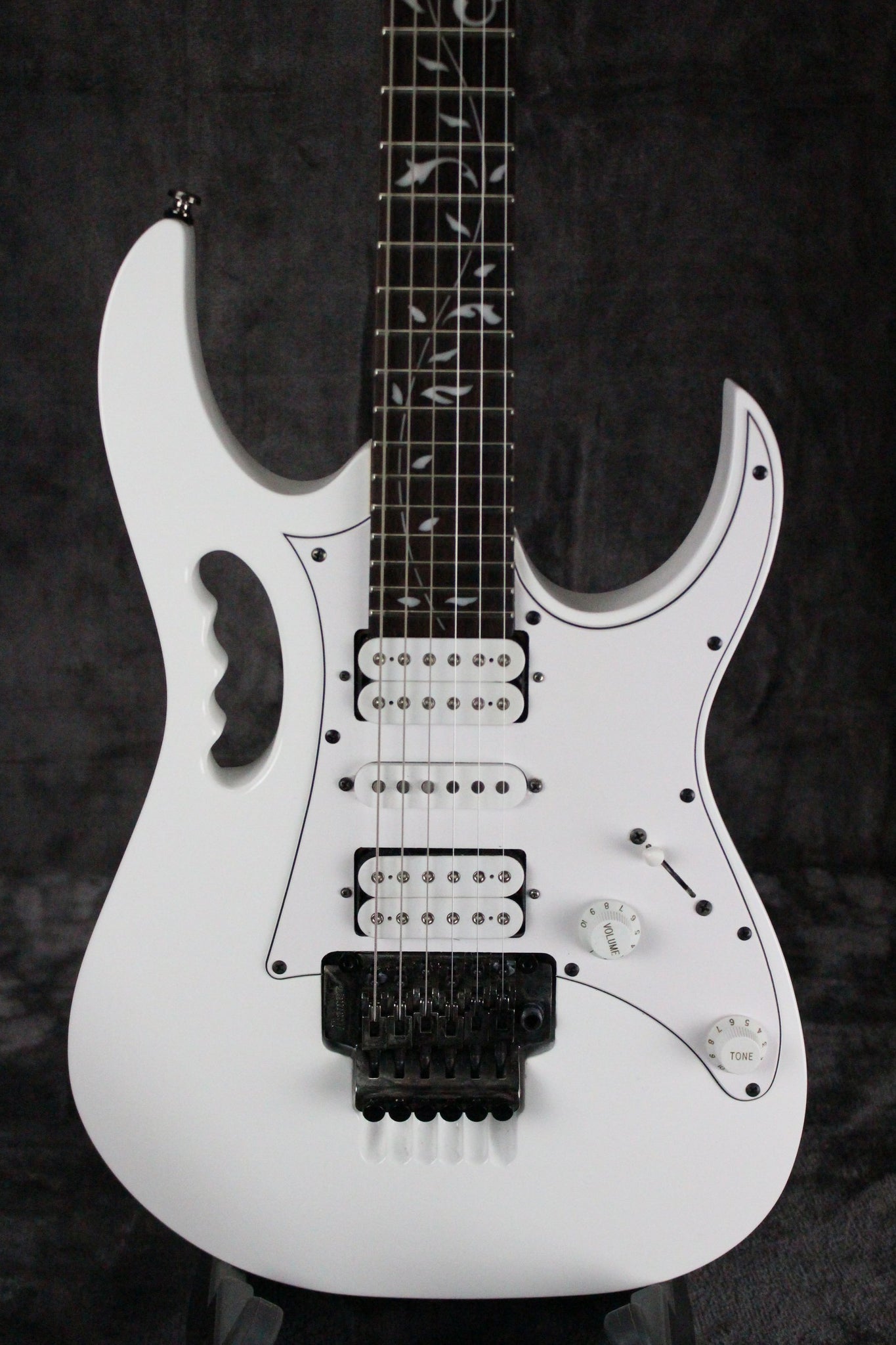 Summary: Steve Vai's signature guitars have become almost as iconic as the player himself, and now that mojo is more attainable than ever with the Ibanez JEM JR. Steve Vai Signature solidbody electric guitar. From the acrylic vine inlay to the instantly recognizable "monkey grip" handle, there's no doubt where the JEM JR. Steve Vai Signature came from. For tonal tenacity, you get two Quantum humbuckers and one Quantum single-coil pickup complete with five-way switching and an Ibanez double locking tremolo system.