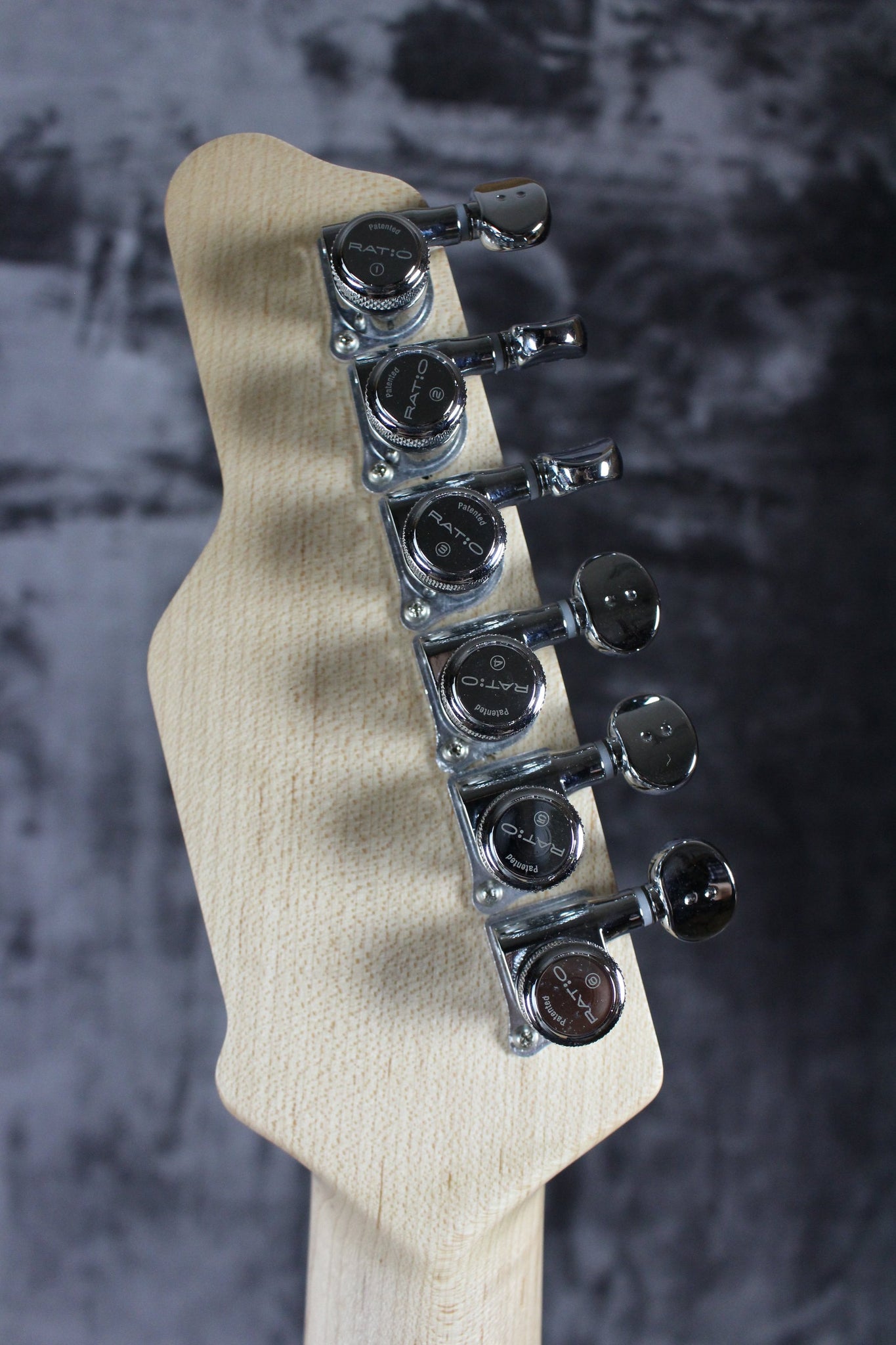 Neck: Maple with a Maple fingerboard, 25.5” scale length, 1 5/8” nut width, 22 frets, black dot inlays.
