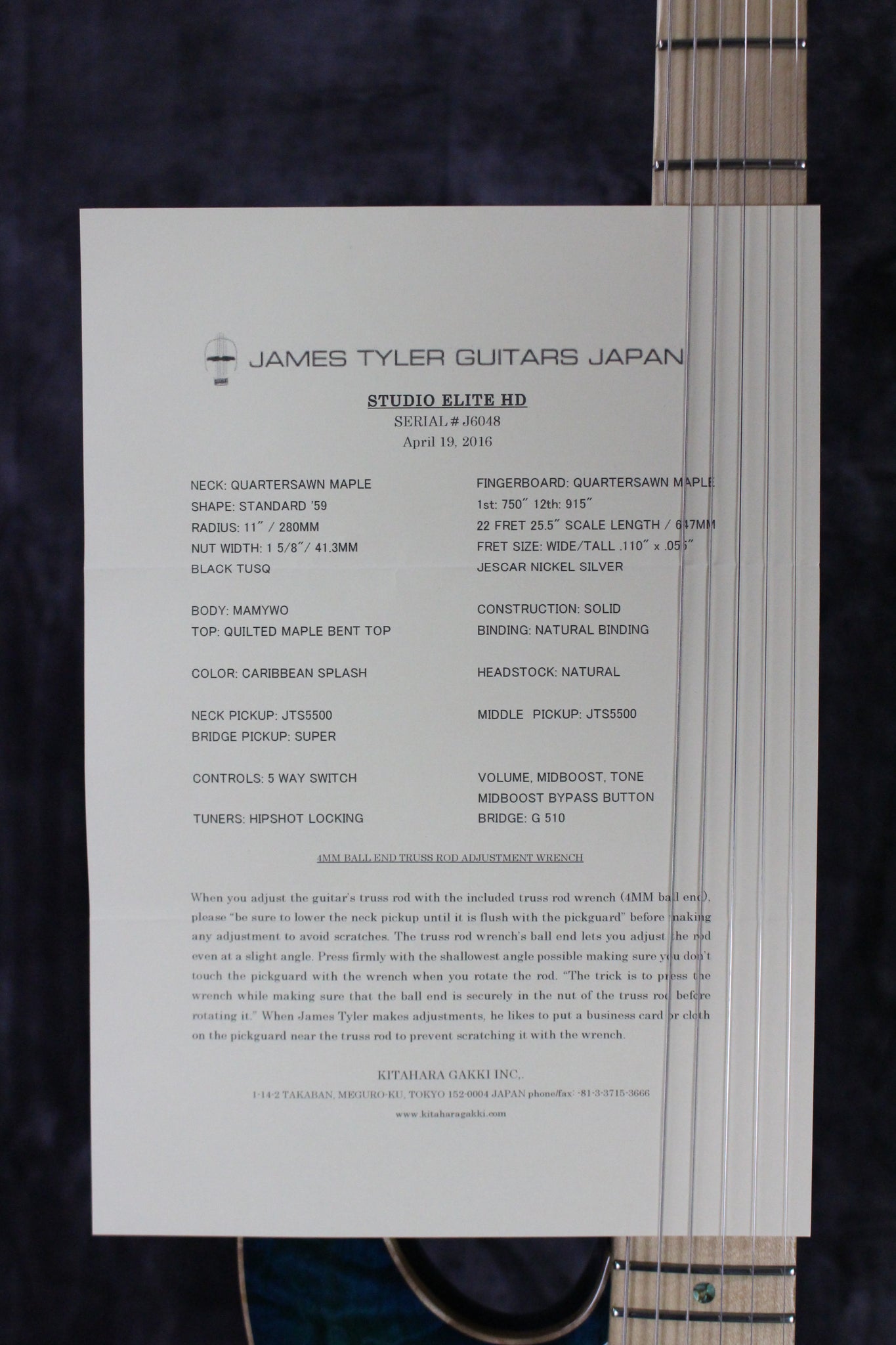 This 2016 James Tyler Studio Elite HD is the super Strat of your dreams. Exotic tonewoods with choice components create a beautiful Stratocaster style instrument. The James Taylor Studio Elite HD is one of the most popular models that Tyler Guitars offers. Tyler guitars are well known for their unparalleled feel and tone. James’ keen insight into how things work, and what players want is the main reason Tyler Guitars are coveted by top session players and artists worldwide.