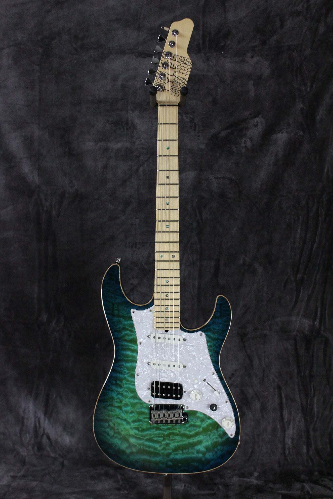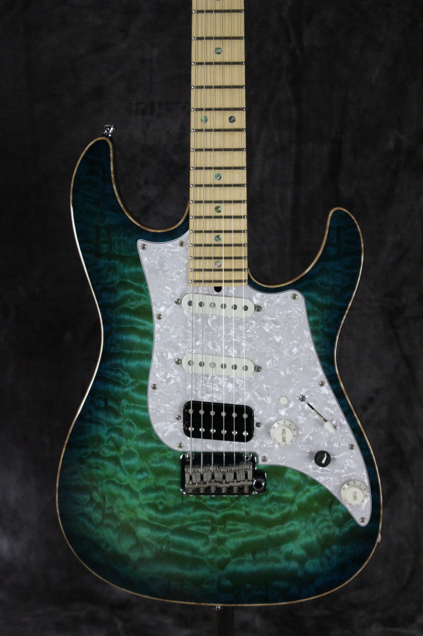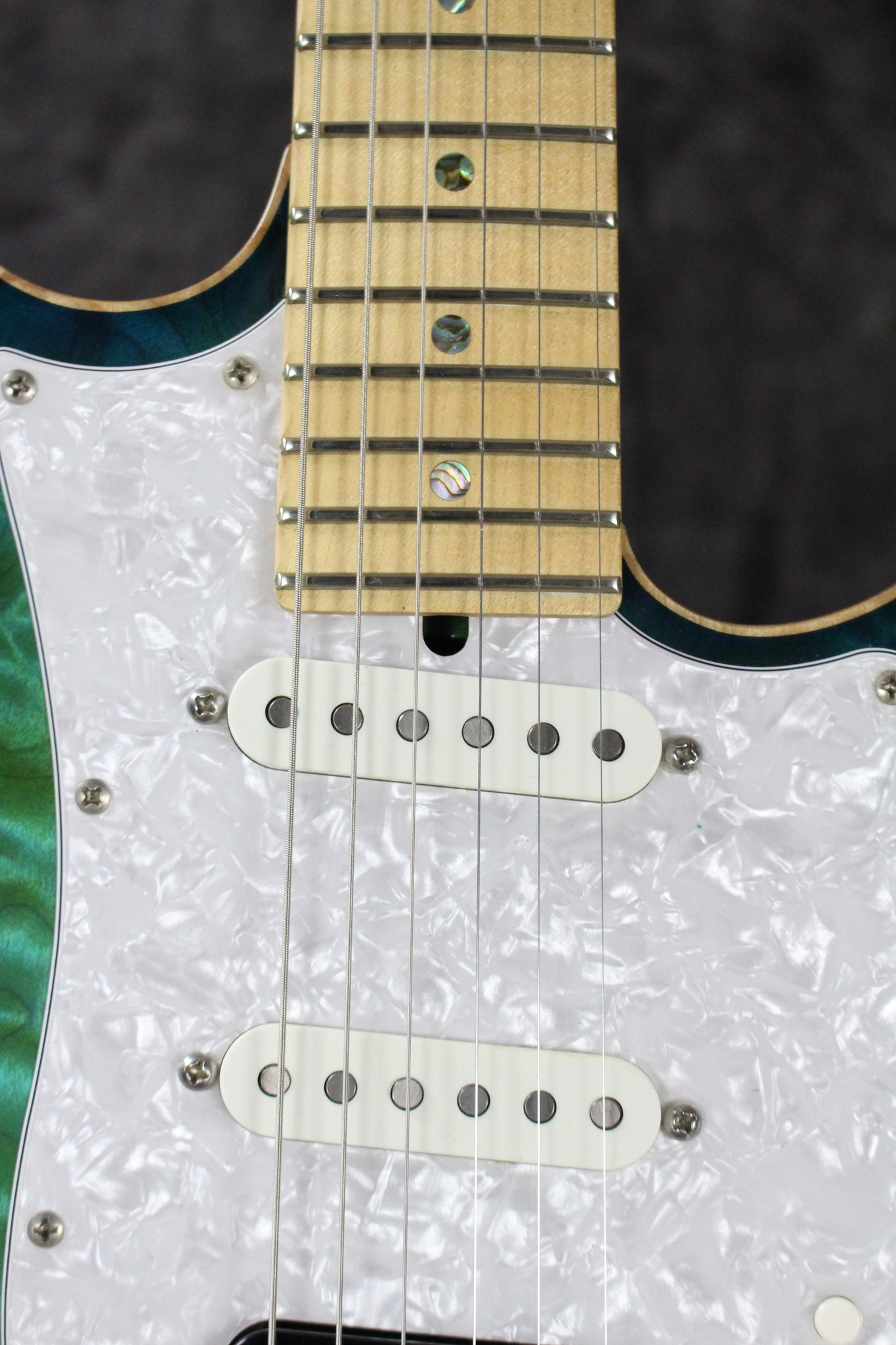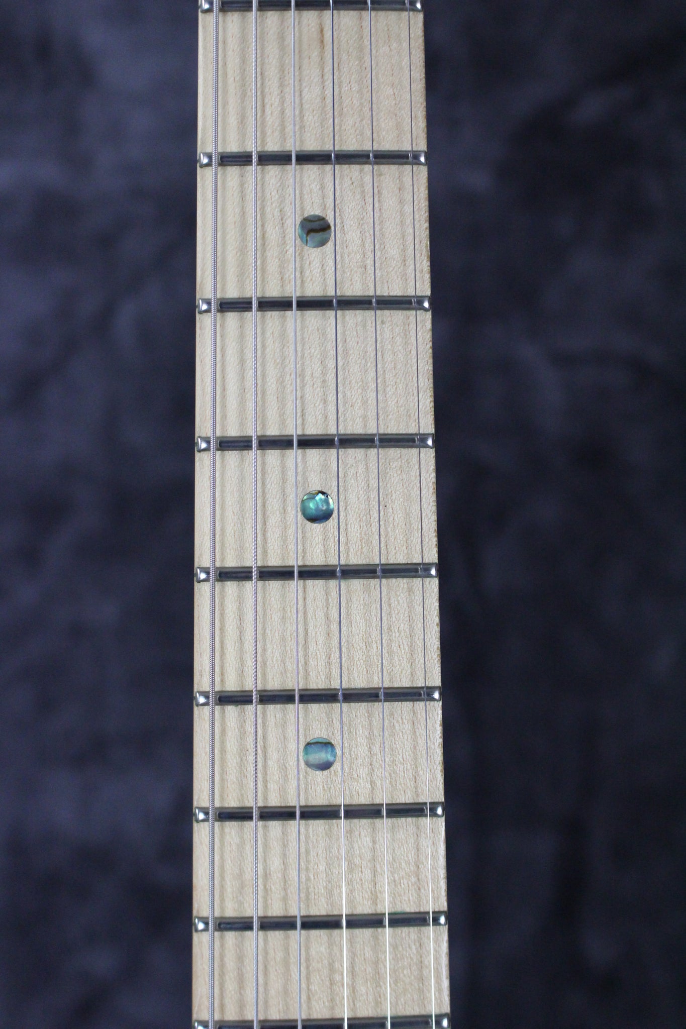 Neck: Quartersawn Maple with a Quartersawn Maple fingerboard, 25.5” scale length, 1.625” nut width, 22 frets, Abalone dot inlays.