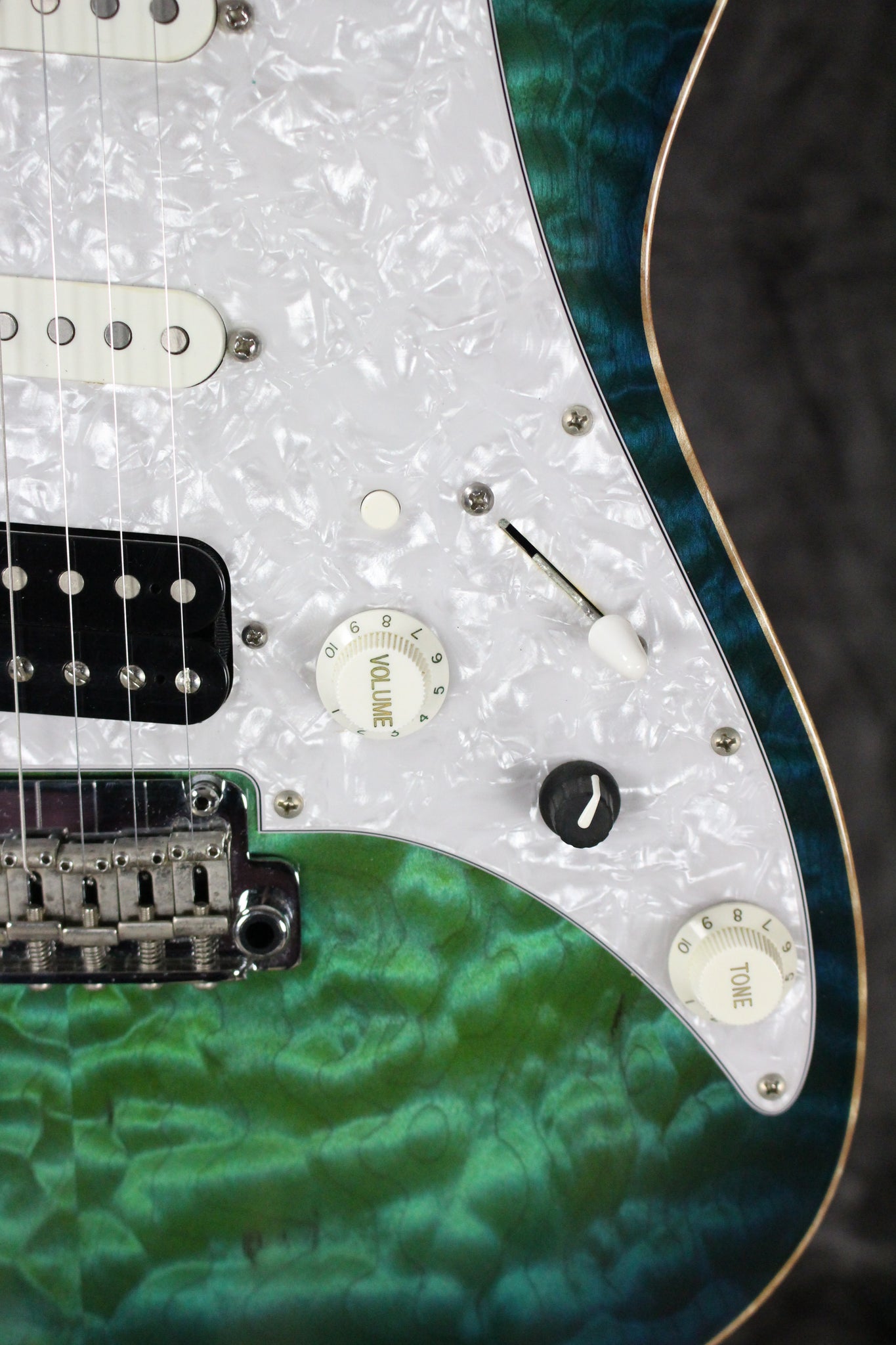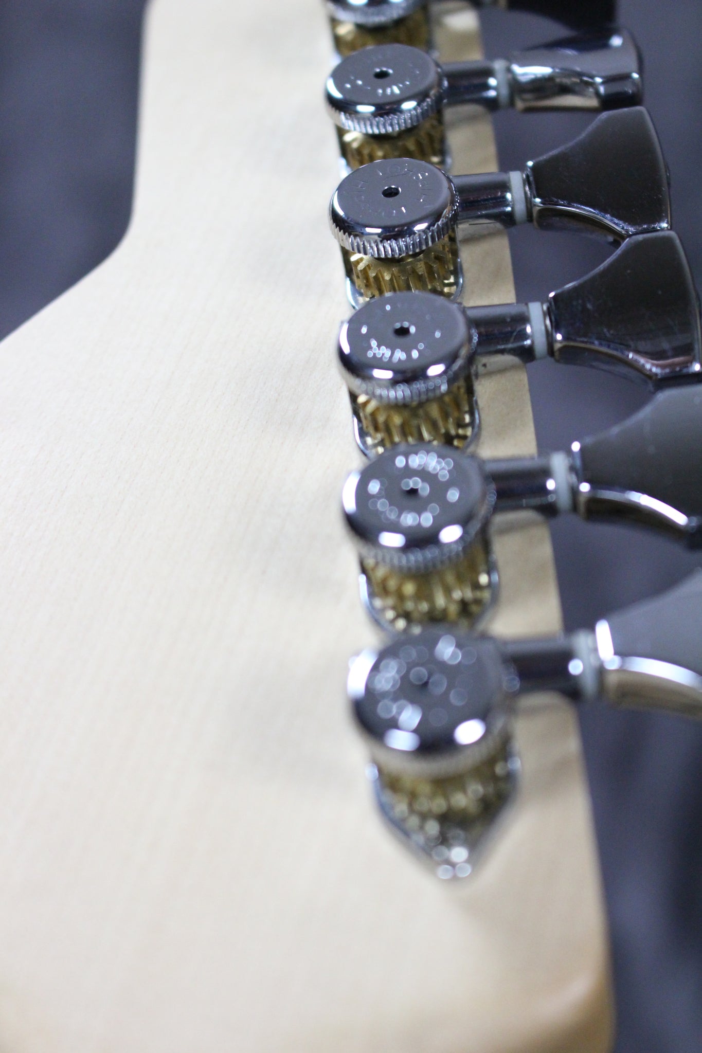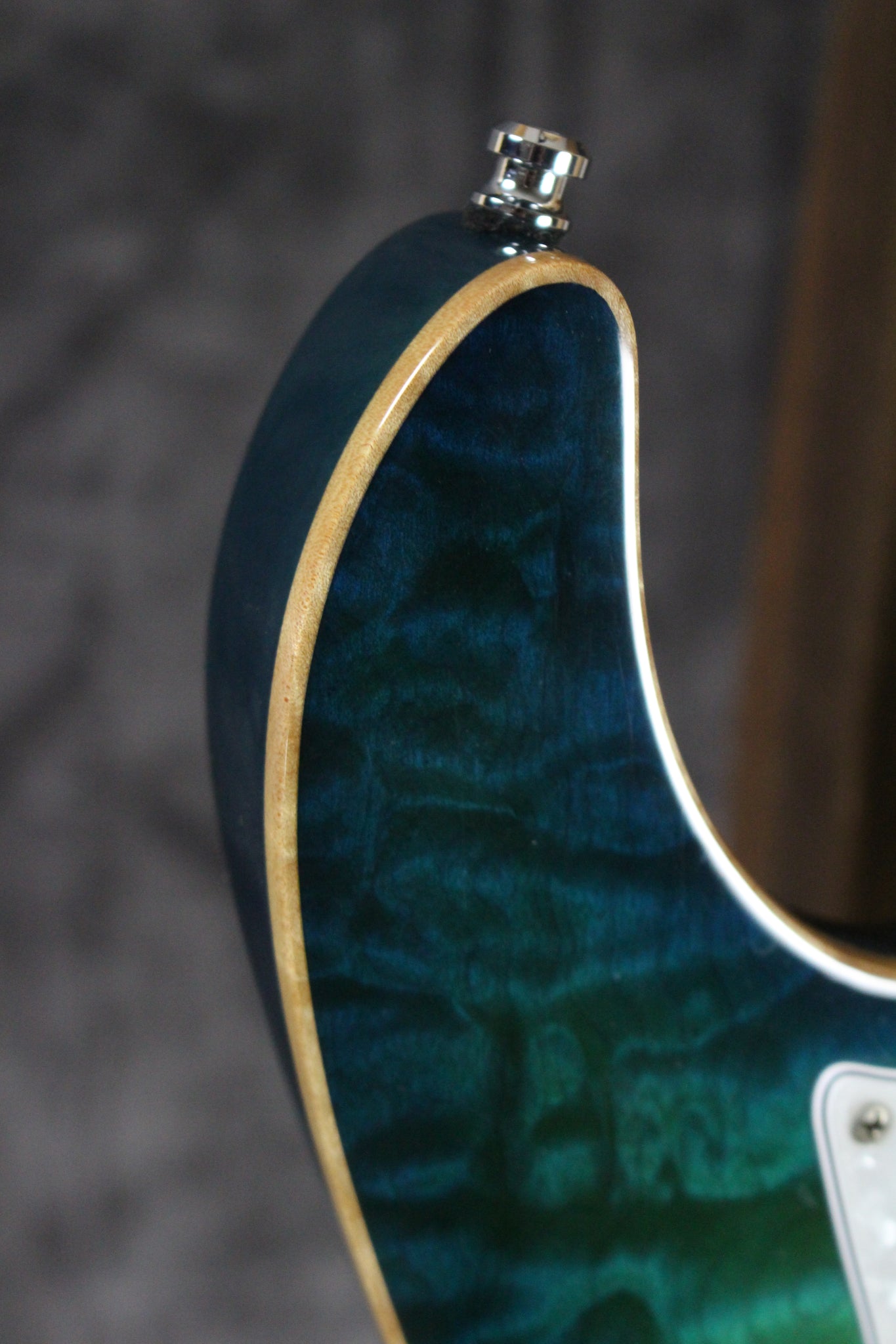 Pickups/Hardware: JTS5500 in the neck, JTS5500 in the middle, Super bridge pickup in the bridge, Hipshot locking tuning keys, Gotoh G 510 bridge, 5 way switch, black Tusq nut, volume, mid-boost, and tone knobs, with mid-boost bypass button.