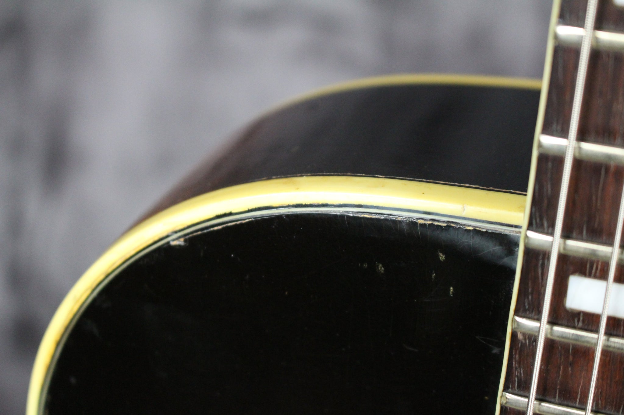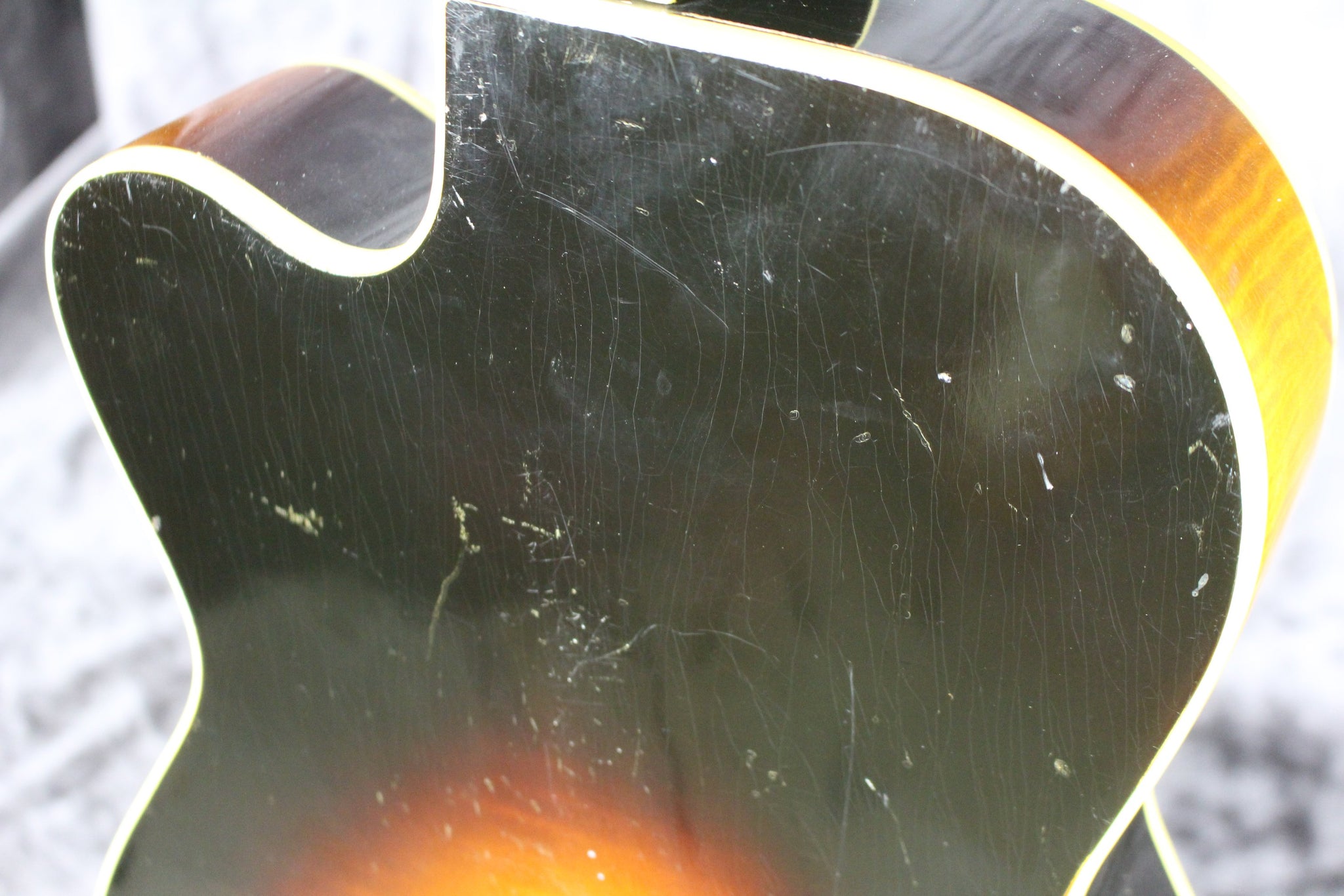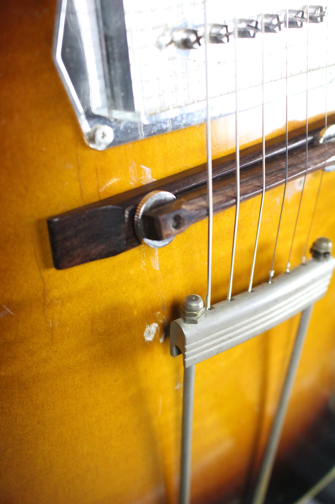 Cosmetics: This guitar has wear that is consistent with a vintage instrument. It has lots of dings, chips, and scratches throughout. There are two small holes on the top of the body where someone must have had a different tailpiece on the guitar at some point. Besides the cosmetic issues, this guitar plays very well and sounds amazing. (See Photos Please)