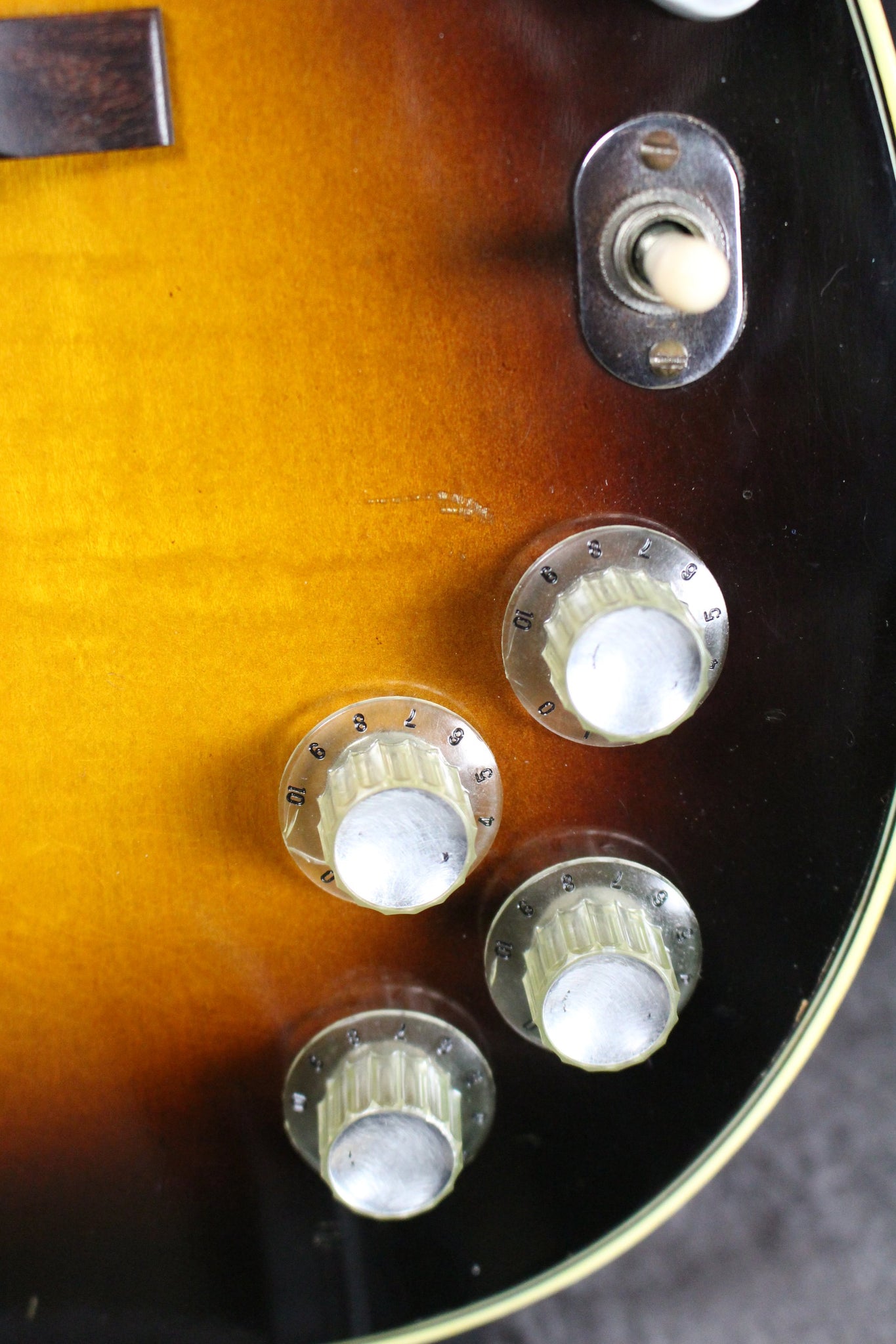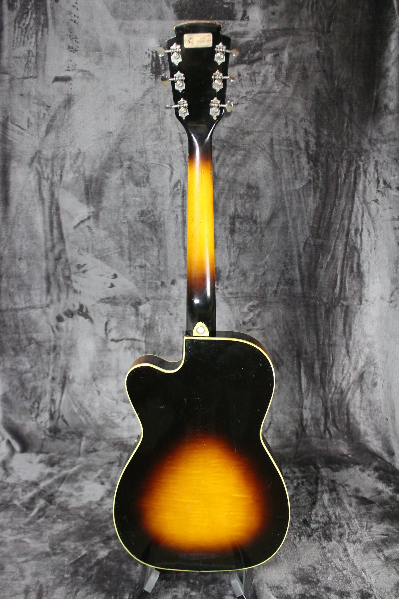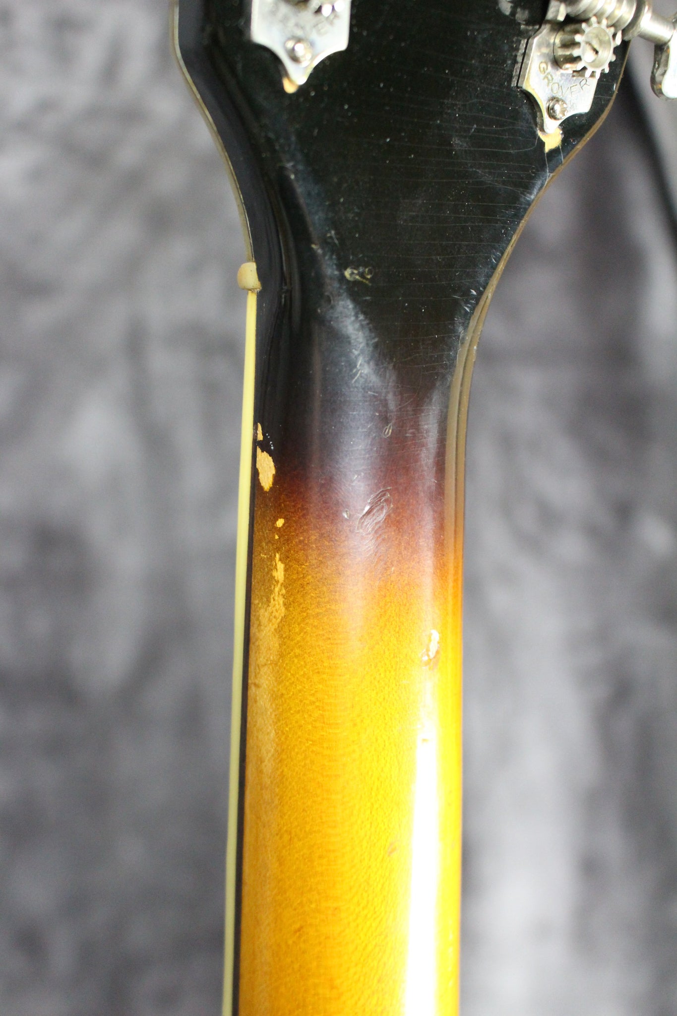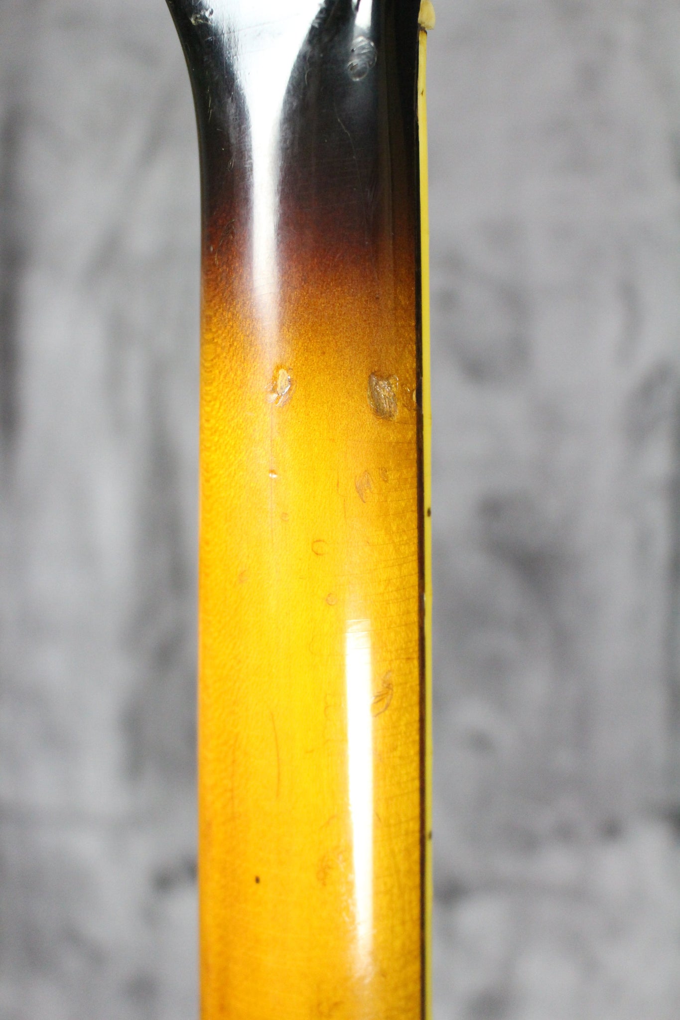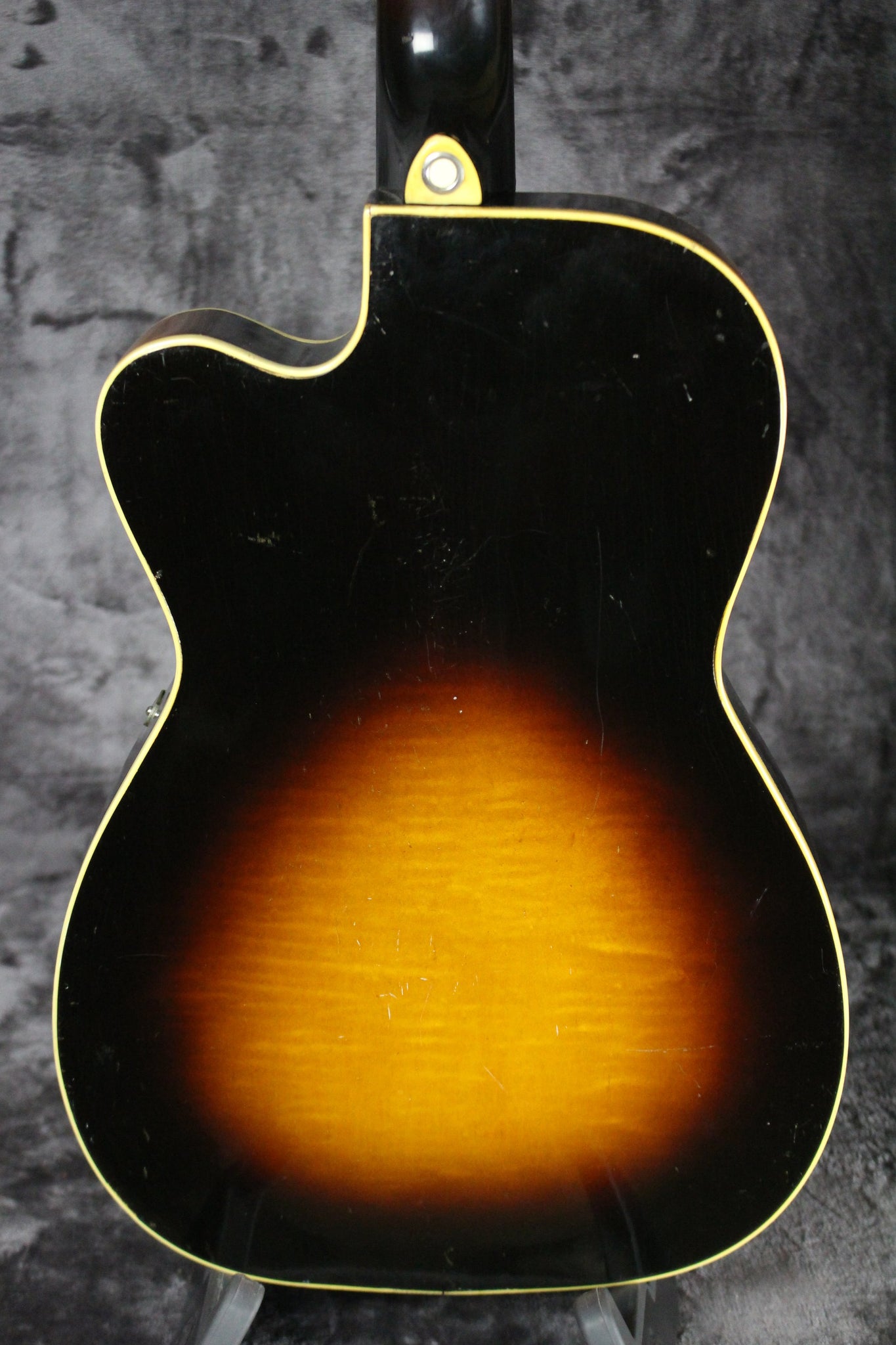 Pickups/Hardware: Two Kleenex Box pickups, Grover open gear tuning keys, Barney Kessel silver pickguard, 2x volume/2x tone controls/3-way pickup selector, floating bridge, trapeze tailpiece.