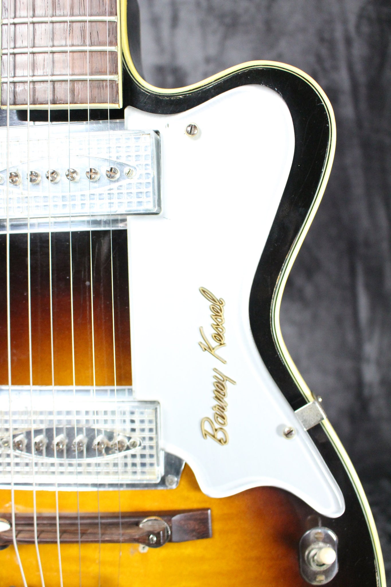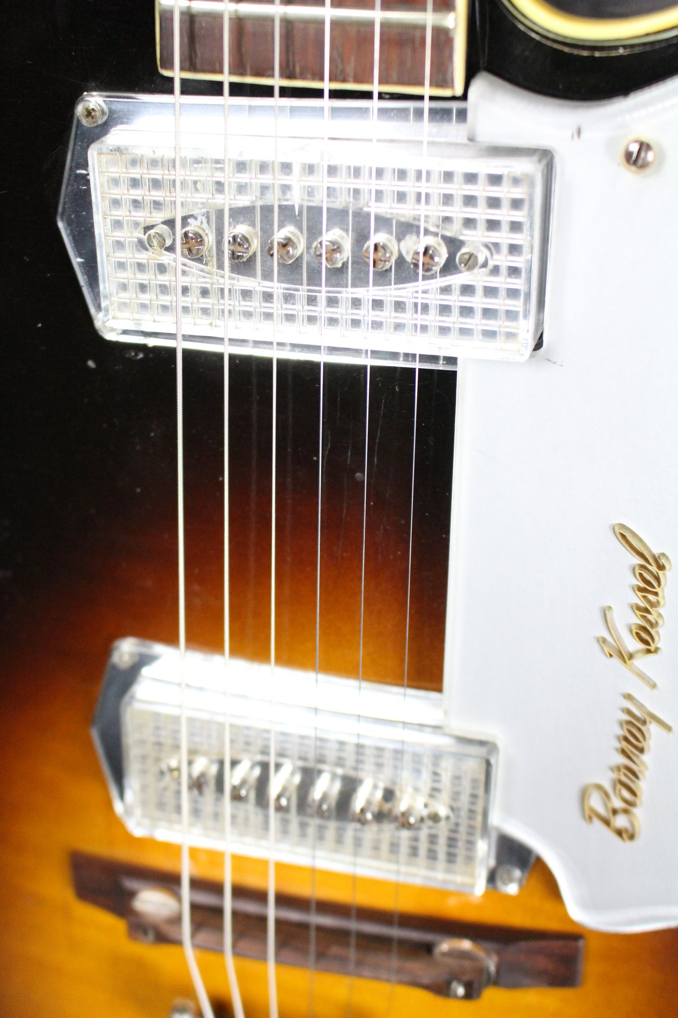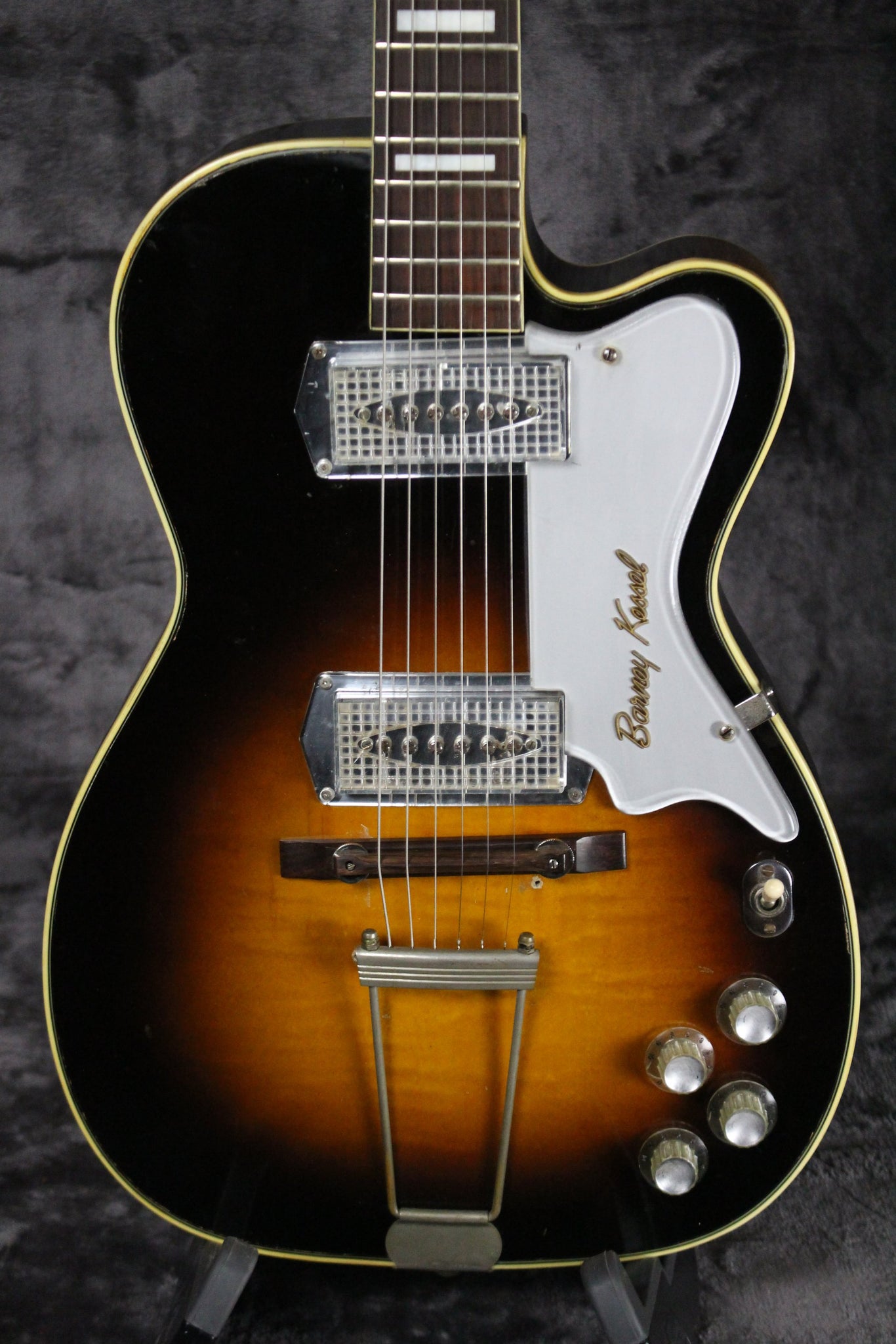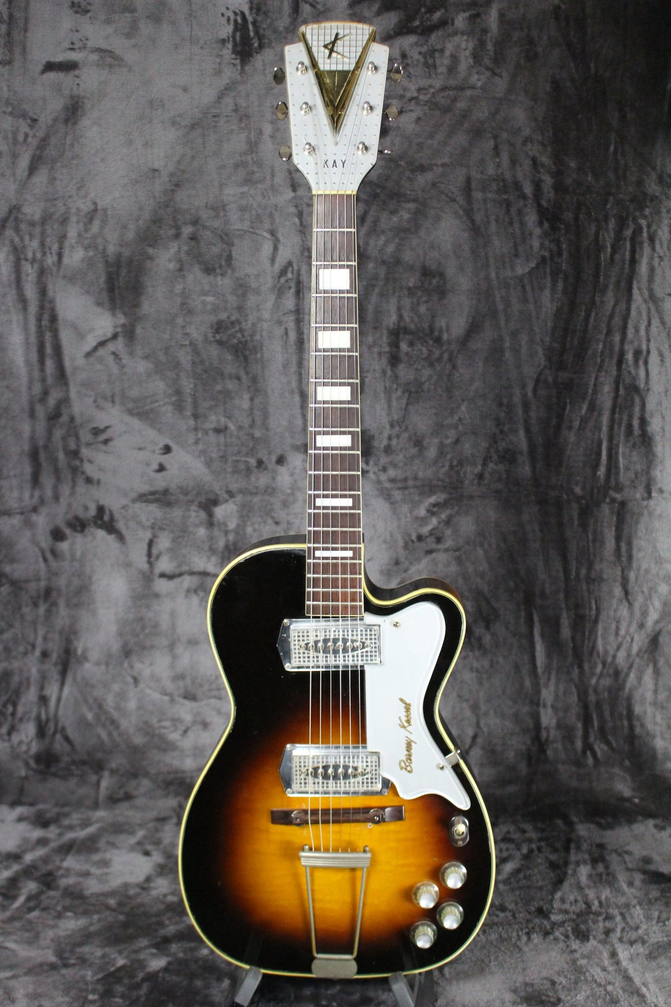 Summary: In 1956, Barney Kessel was approached by Kay Musical Instruments to endorse a new line of professional level guitars. Kay made three signature guitars for Barney Kessel. The Pro, Artist, and Jazz Special. All of them had his signature engraved in the injection molded Lucite pick guard and came equipped with the now famous Kleenex Box pickups. The Barney Kessel line all had the unique "Full Kelvonator" headstock.