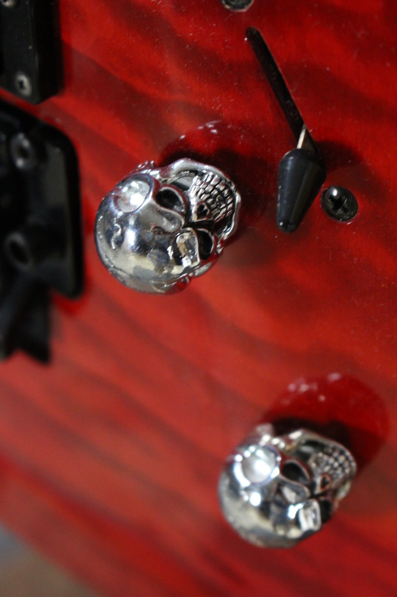 Pickups/Hardware: 2 humbuckers, FR style tremolo system, chrome skull knobs, black tuning keys, 3-way switch