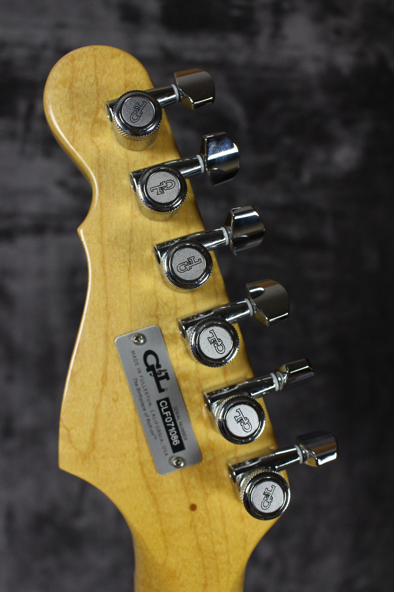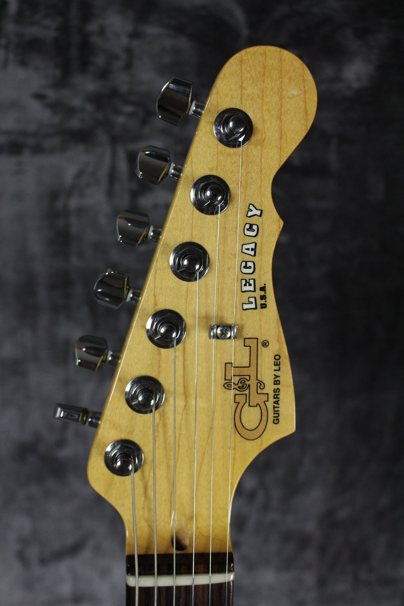 Neck: Maple neck with a rosewood fingerboard, 22 frets, dot inlays, original G&L tuning keys, 1 11/16” nut width, 9.5” radius, 25.5” scale length.