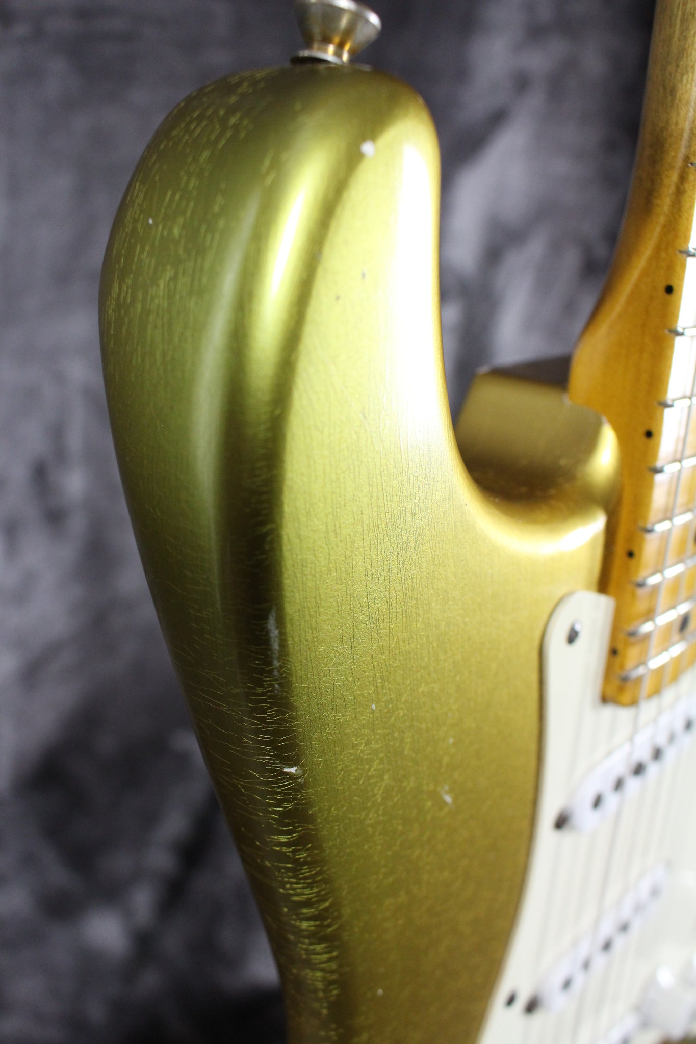Summary: This one of a kind MJT Aztec Gold Stratocaster style guitar has choice appointments carefully curated to provide maximum playability and maximum tonal choice. Expertly relic’d and ready to roll.