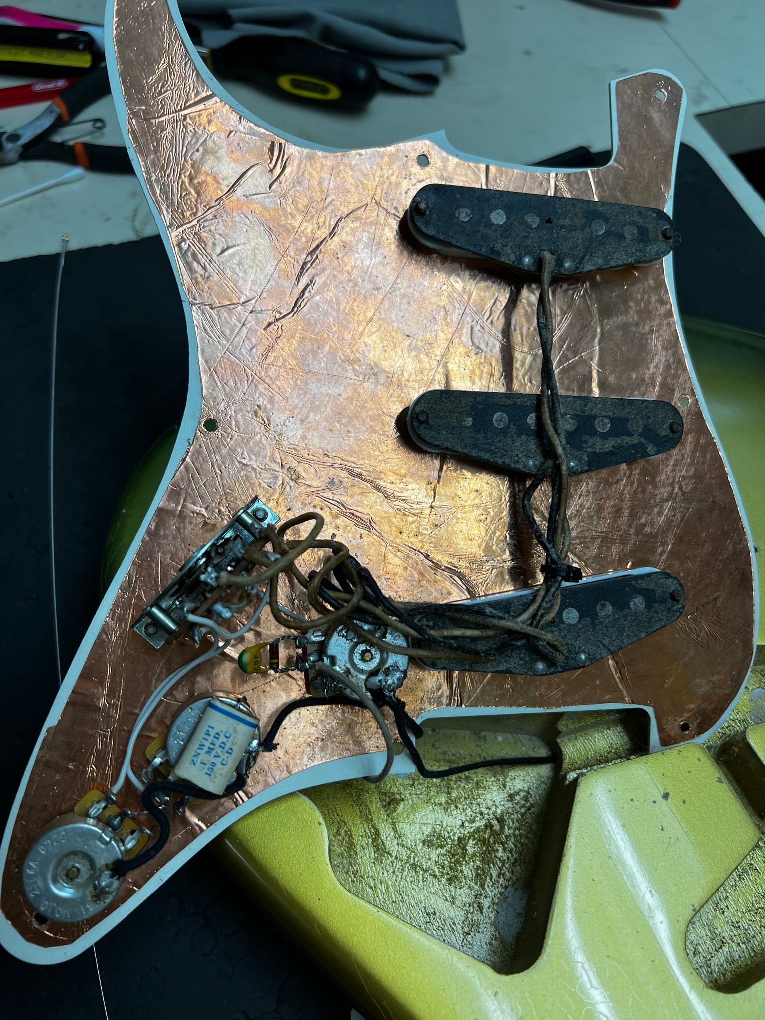 Pickups/Hardware: Fender Robert Cray pickups,shielded cavity, Callaham bridge and trem block.