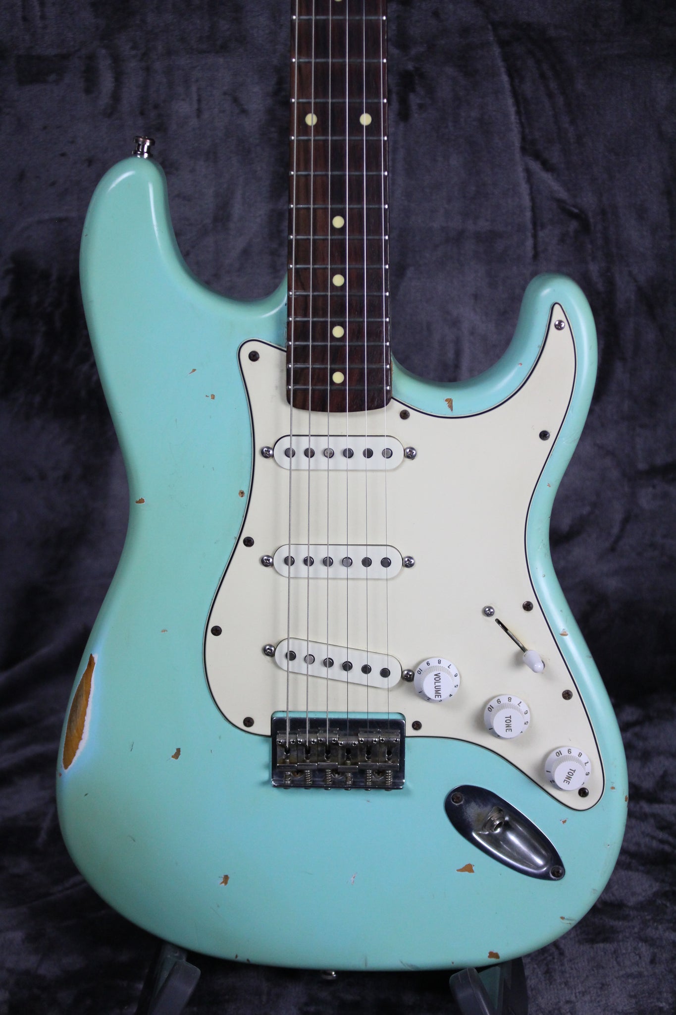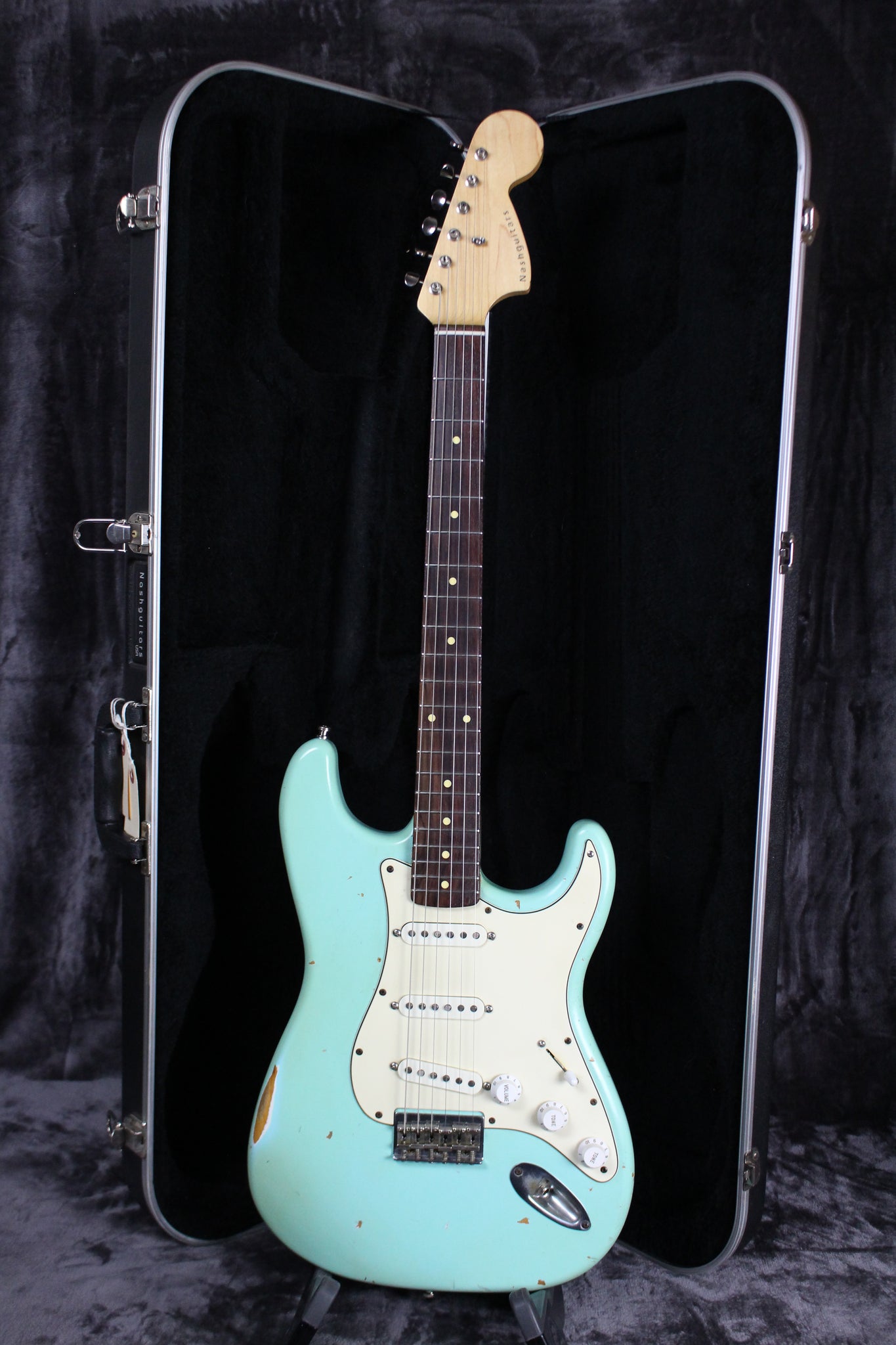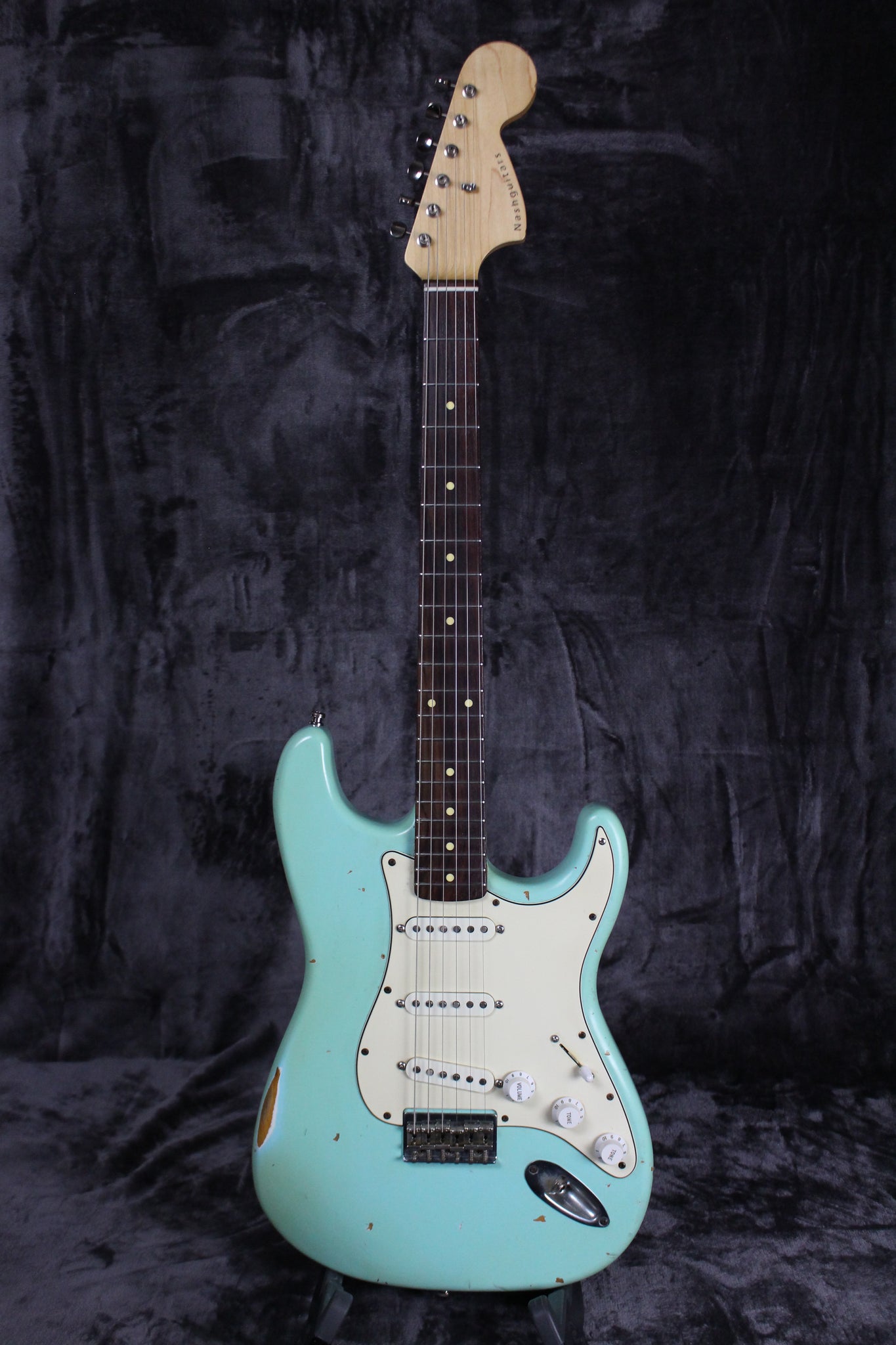 Summary: This Nash S67 Hardtail is relic’ing lovers dream, stocked with choice Lollar pickups and a hearty neck. This large headstock in vintage Seafoam Green relic is ready for stage and screen.