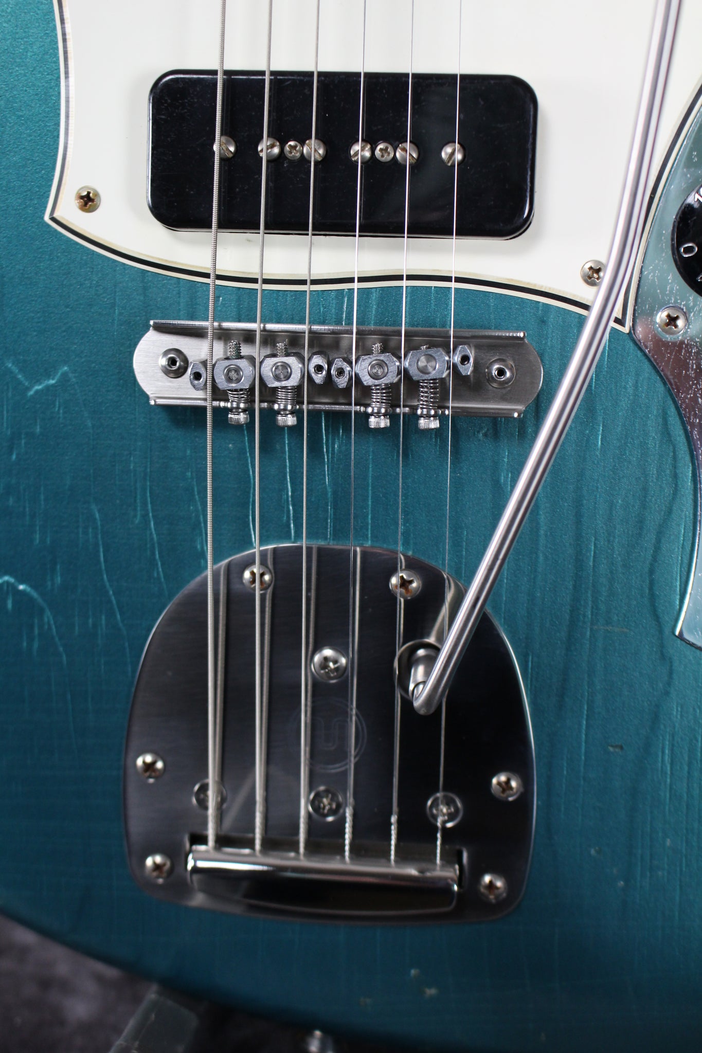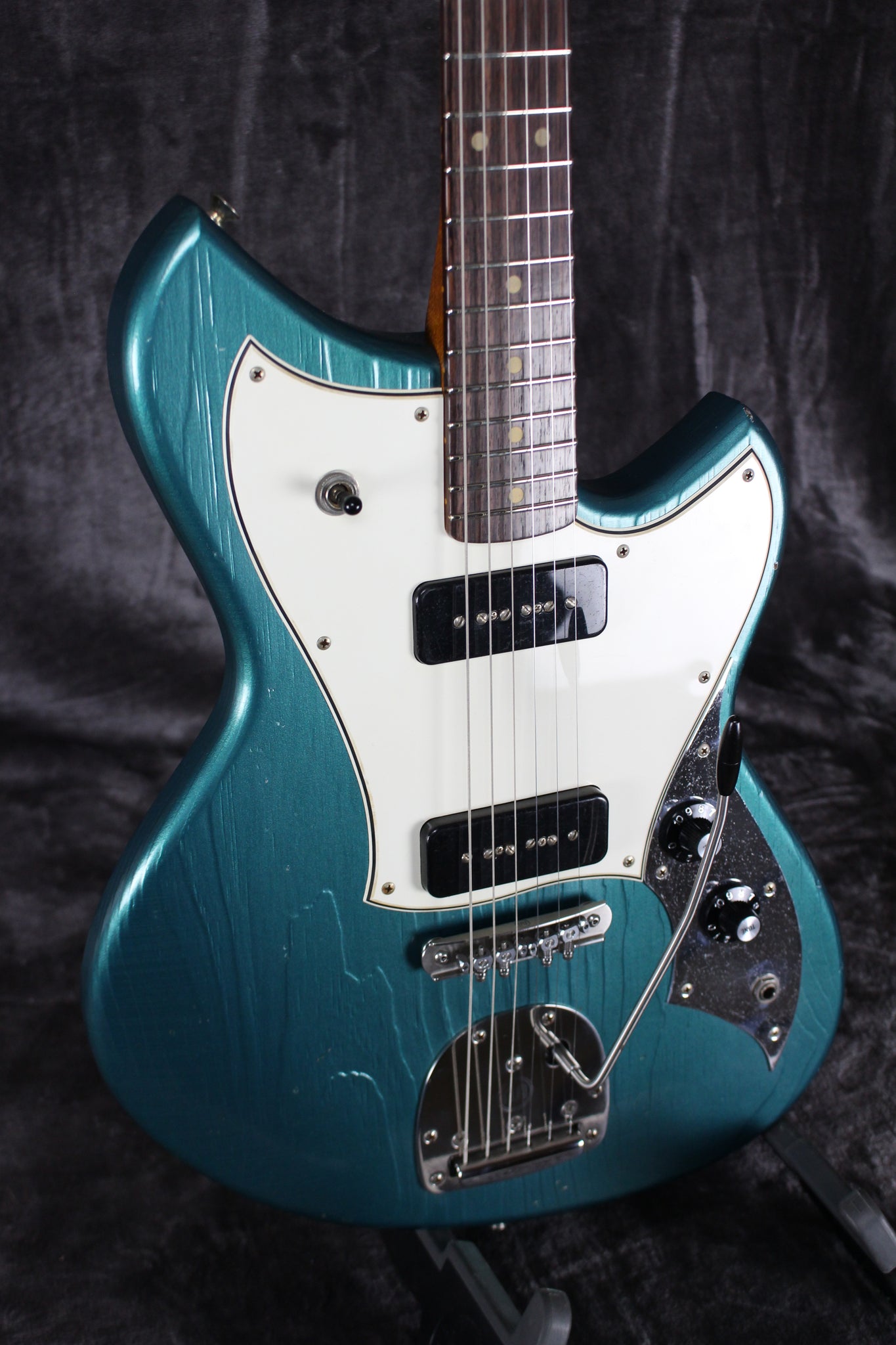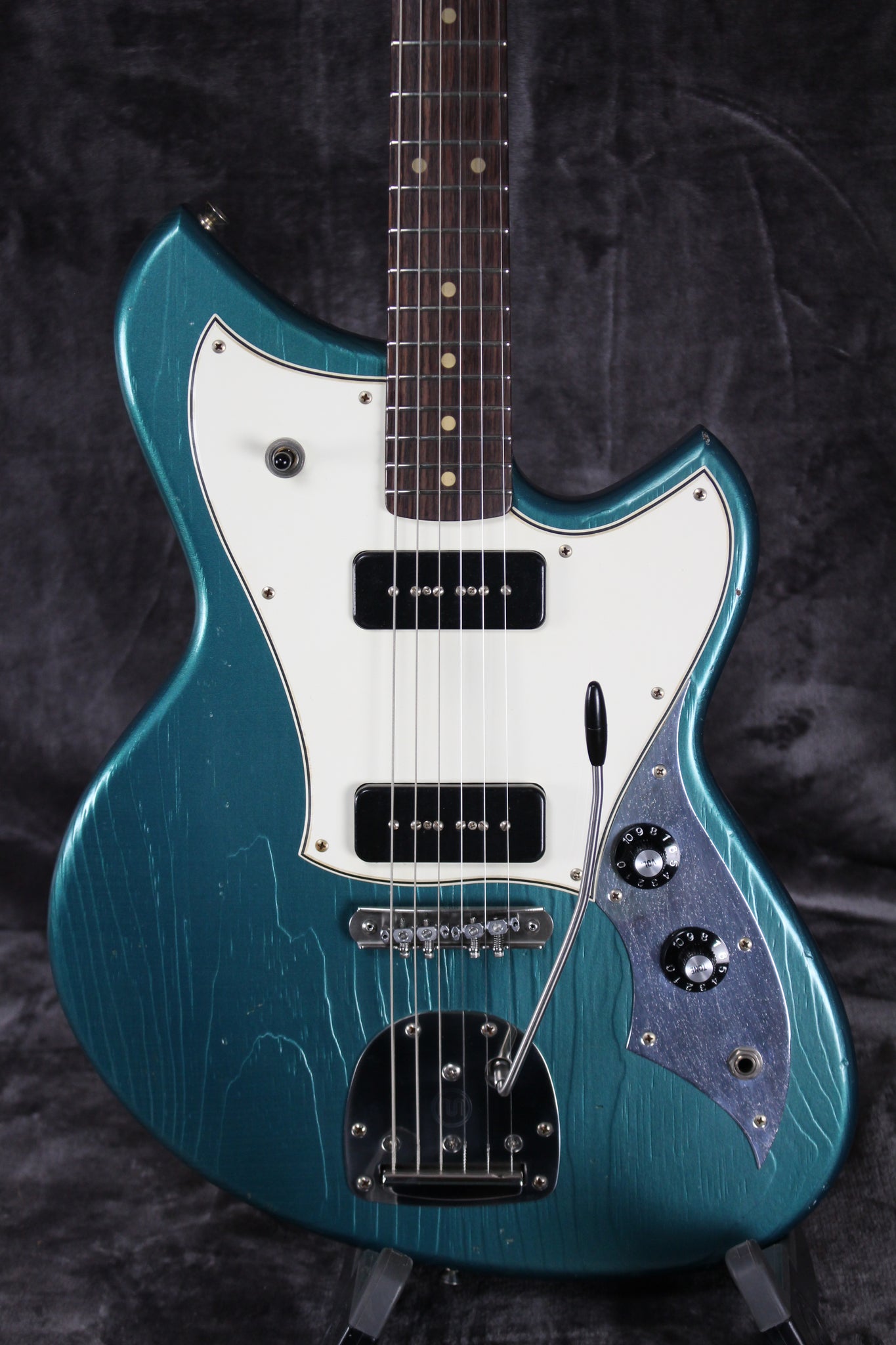 Pickups/Hardware: Fralin P-90 pickups, Kluson Supreme tuning keys, Mastery M1 bridge NV vibrato, black witch hat knobs, bone nut.