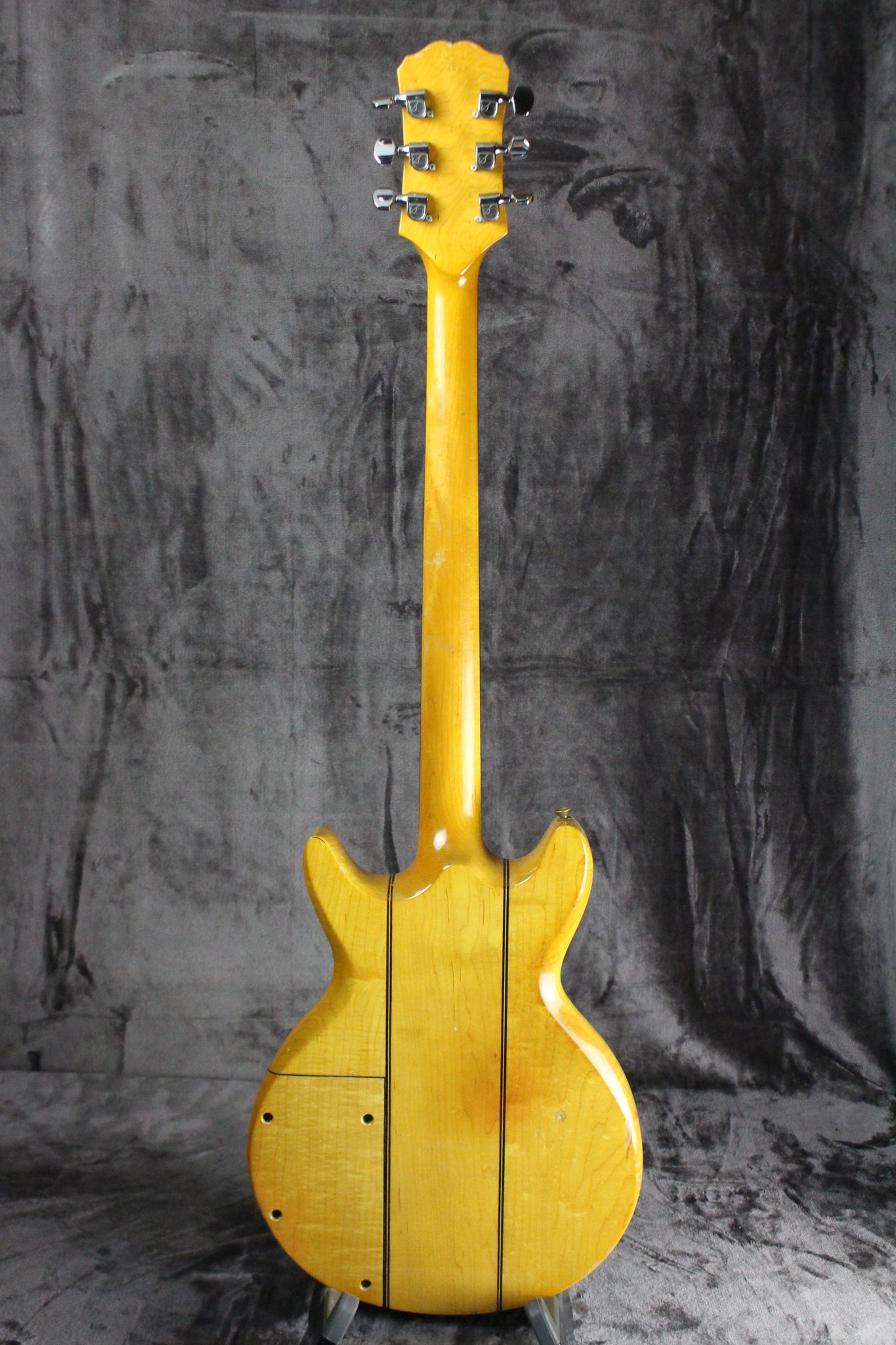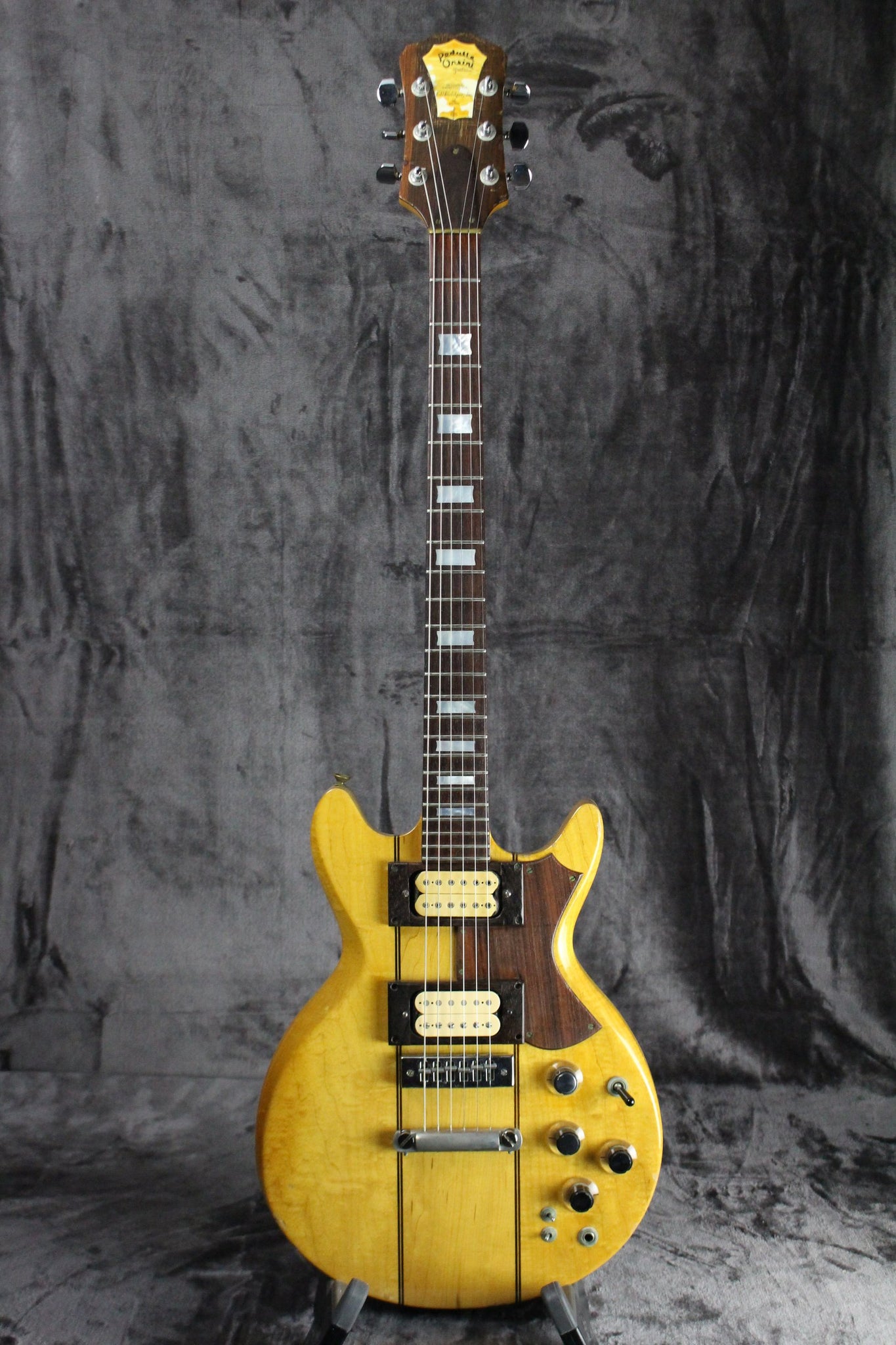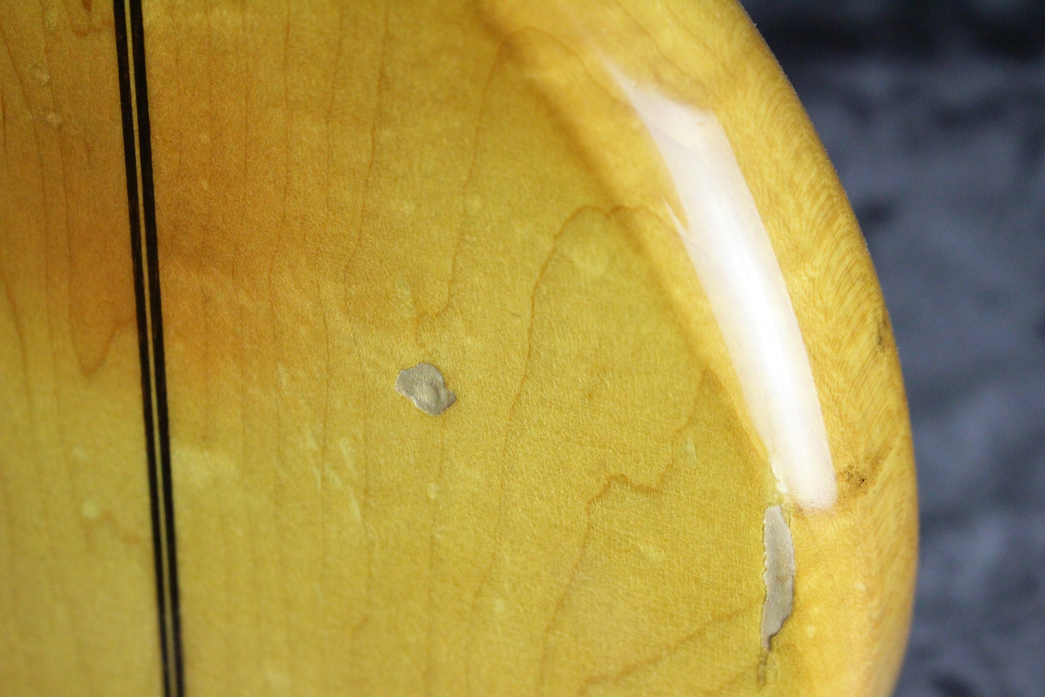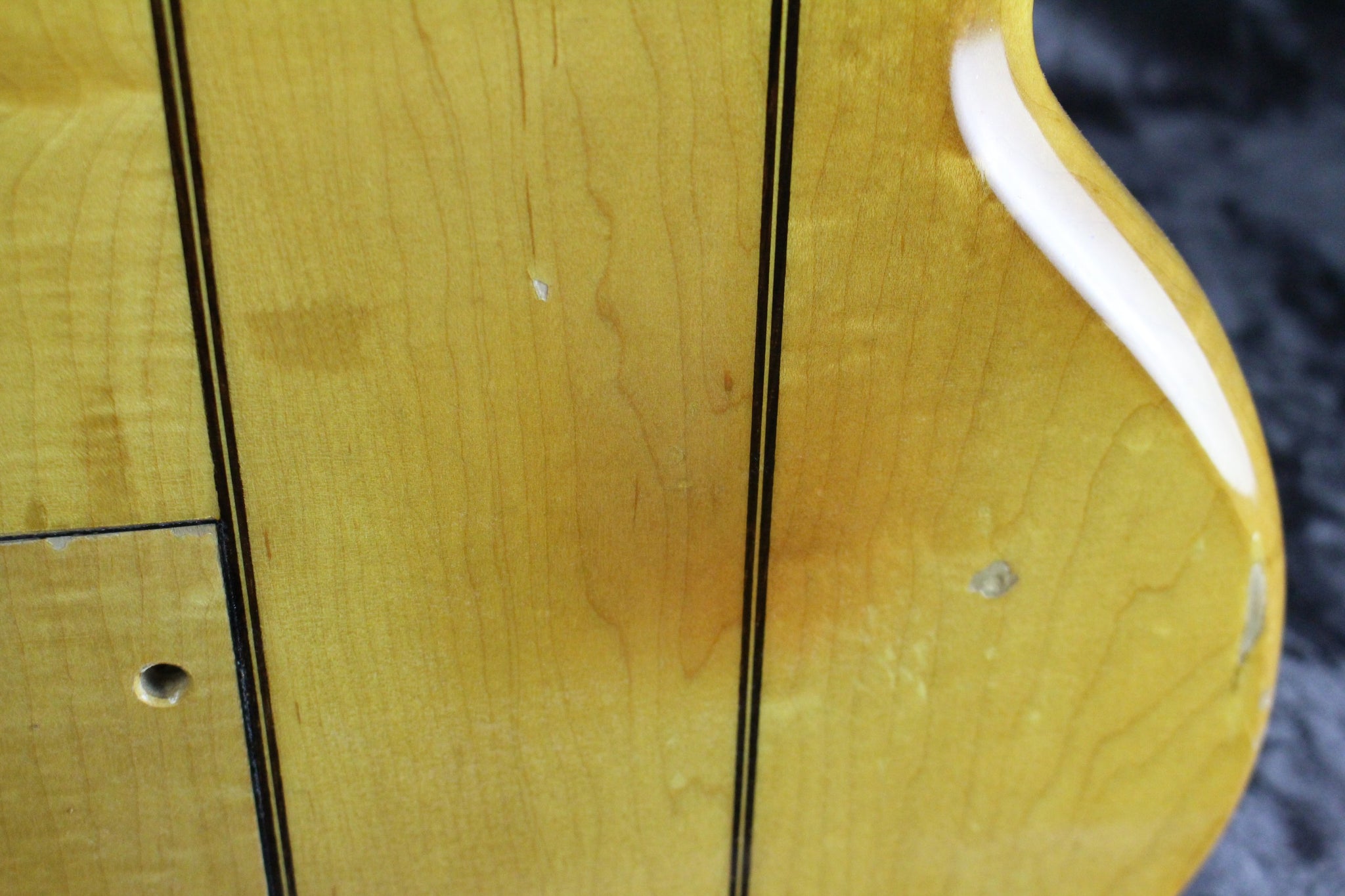 Body: Double cutaway solid maple 3-piece body with rosewood/maple/rosewood stringers. Finished in nitrocellulose lacquer which has aged nicely into a rich amber/yellow color with lots of weather checking.