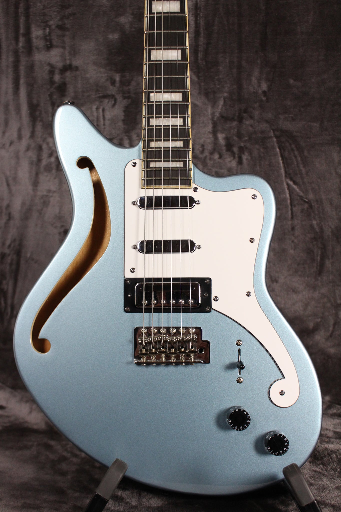 Summary: This 2021 D’Angelico Premier Bedford semi-hollow—previously only offered as a Deluxe Limited Edition model—is now available in the Premier Series. Featuring a sleek, modern f-hole design on the upper bout, the Bedford integrates a warm acoustic element into a three-pickup electronics configuration that offers a bold variety of tones. The combination of two Duncan Designed single-coils in the neck and middle positions followed by a Duncan Designed mini-humbucker in the bridge creates a uniquely bold, but familiarly spanky tonal palette while a 5-way blade makes tone selection simple.