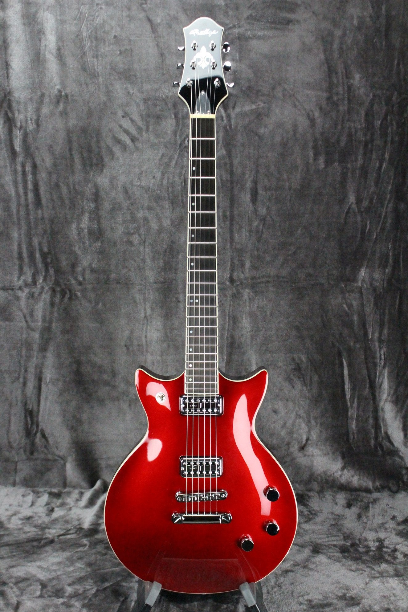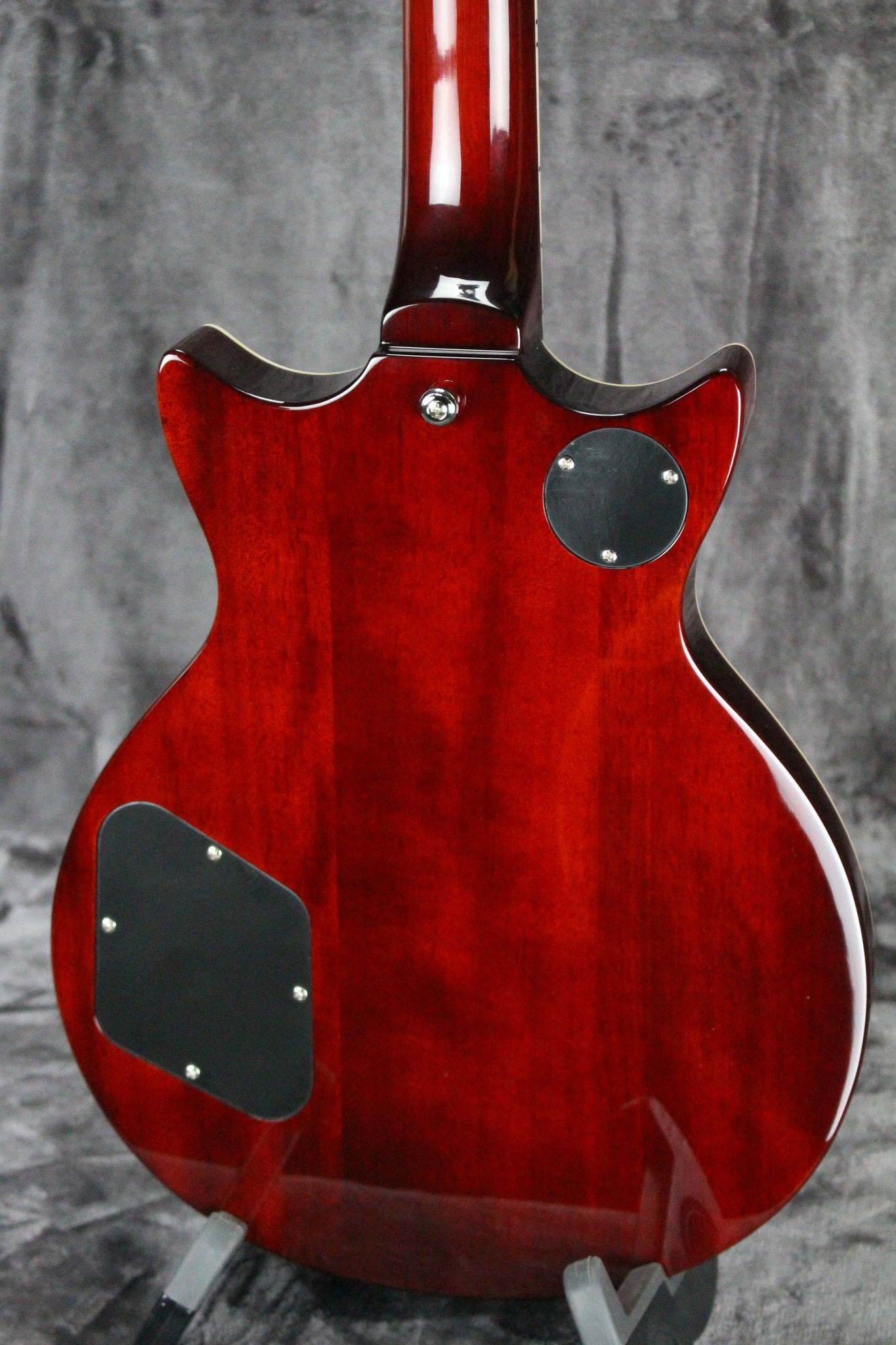 Body: Solid Mahogany with a carved Maple top finished in a gloss metallic red.