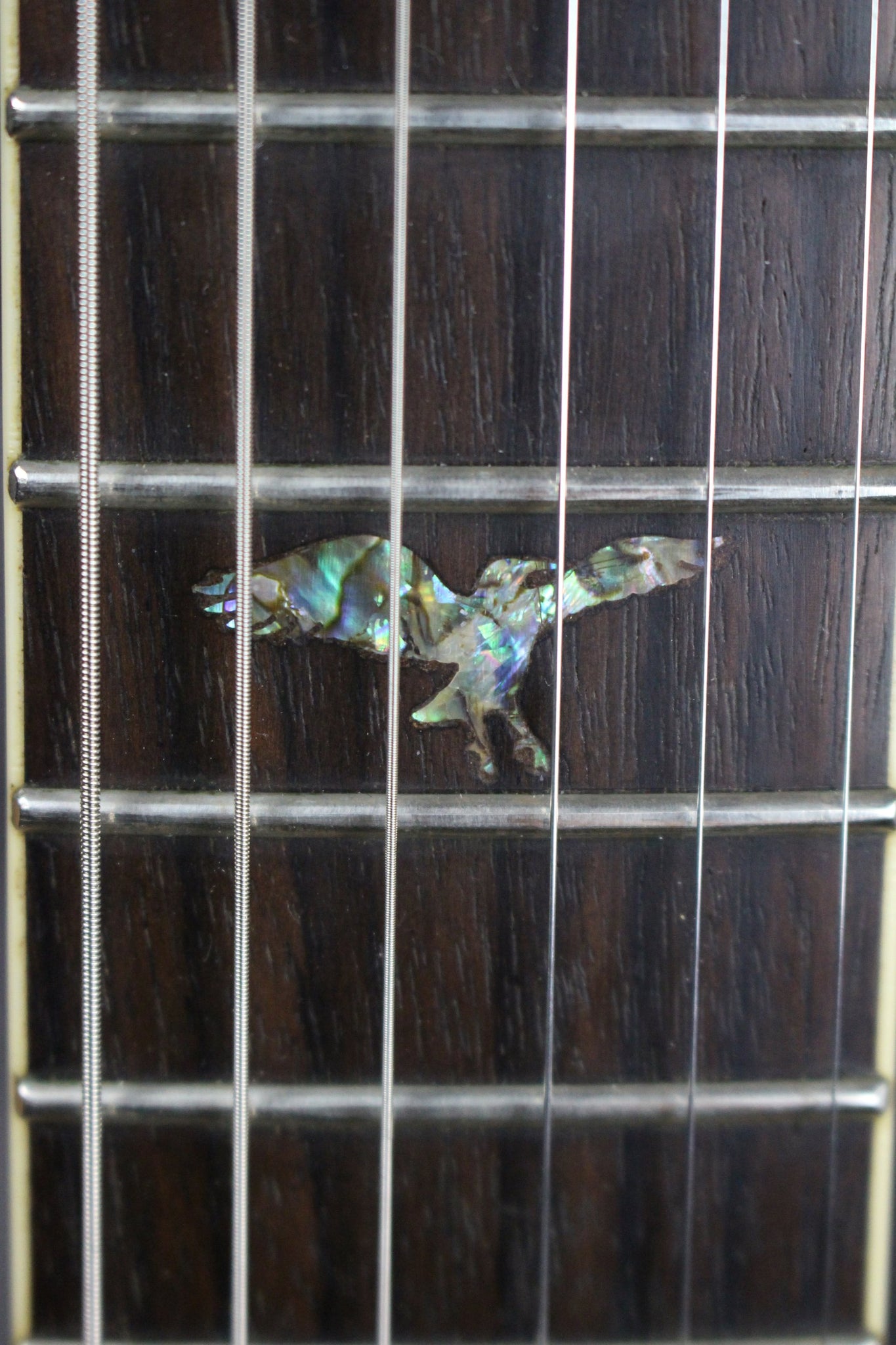 Neck: Maple with a Rosewood fingerboard, 25.5” scale length, 1 5/8” nut width, bird inlay on the 12th fret, dot markers on the top of the finger board.