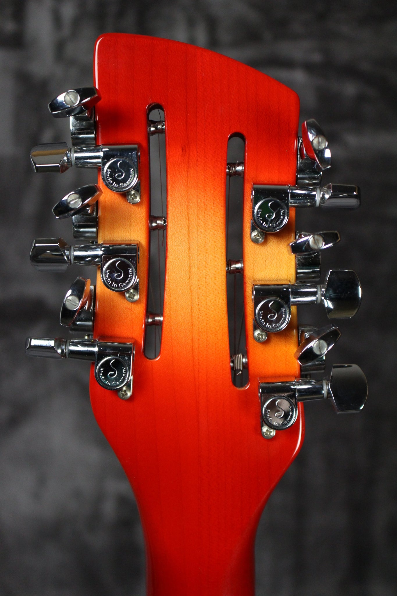 Summary: Damn the torpedoes with this 2016 Rickenbacker 620/12. The jangly tone fills out any mix and gives songs an ethereal choral feel that can’t be replicated with a pedal or overdub. T This 620/12 sports Rickenbacker’s gorgeous Fireglo finish & sports a solid maple body with Rickenbacker’s signature chrome “R” tailpiece. The bound maple neck features a rosewood board, triangle inlays, 21 frets, and a 24 ¾” scale. One majorly distinctive detail is the setup of the tuning keys, which are arranged perpendicularly and staggered with the string wind on the higher octave strings set up similarly to a classical guitar. This allows for increased clarity, especially on chords. The Rickenbacker Hi-Gain pickups sound fantastic and are perfect for big shimmering chords. It features Rickenbacker’s patented Rick-O-Sound, giving you both mono and stereo outputs. From the Byrds to the Beatles to Tom Petty the iconic sound of Rickenbacker’s 12-string electrics have been all over many of our favorite recordings.