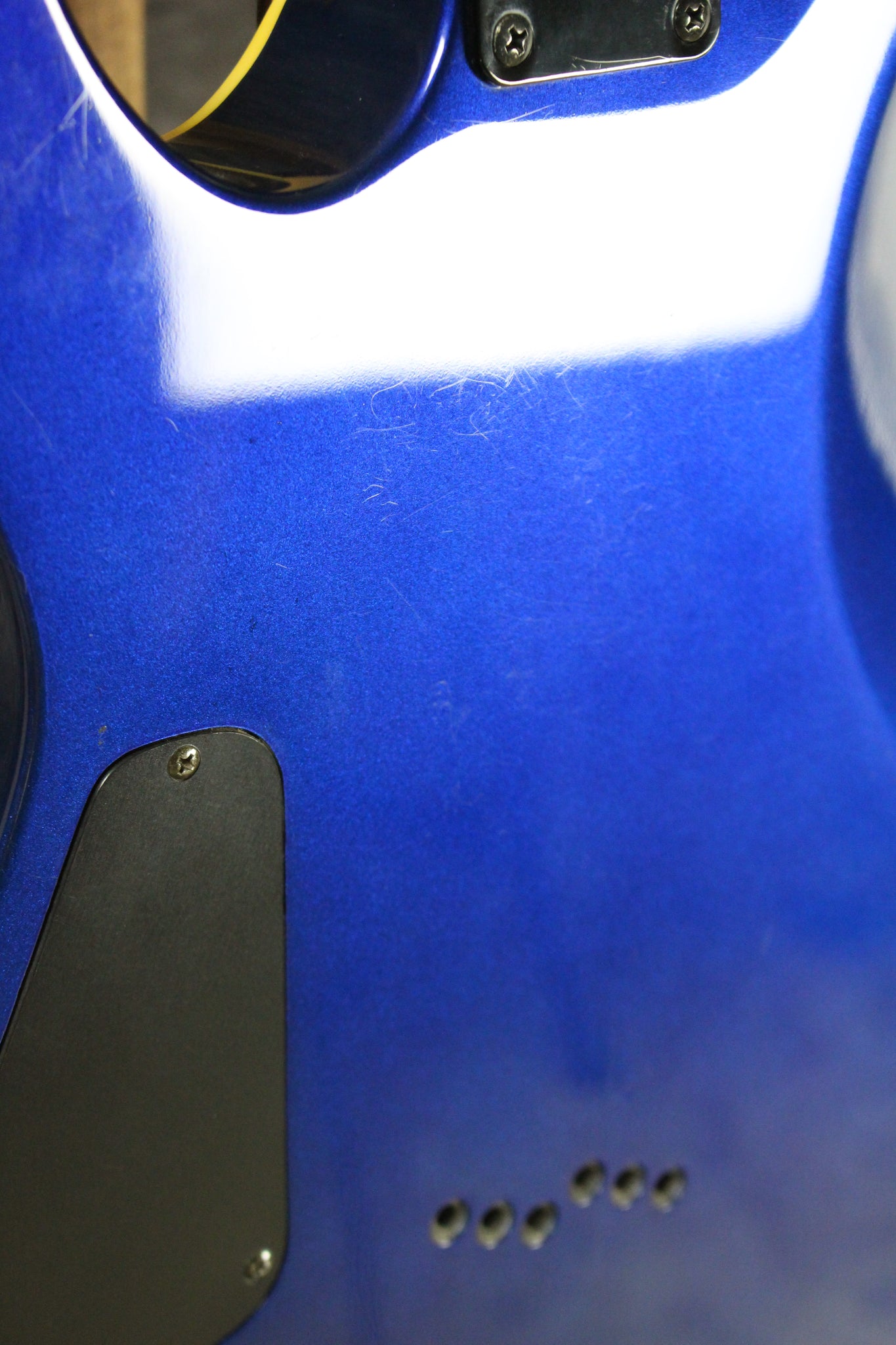 Body: Bound Mahogany with a Maple top, in Blue finish.