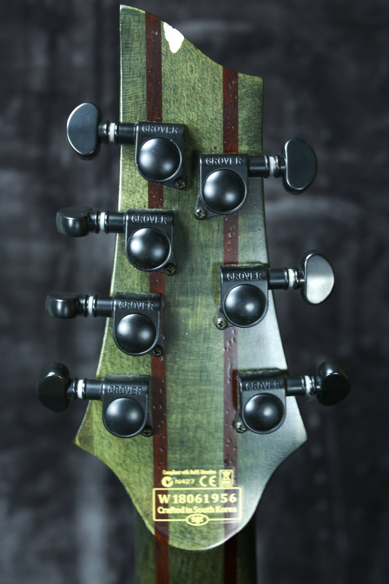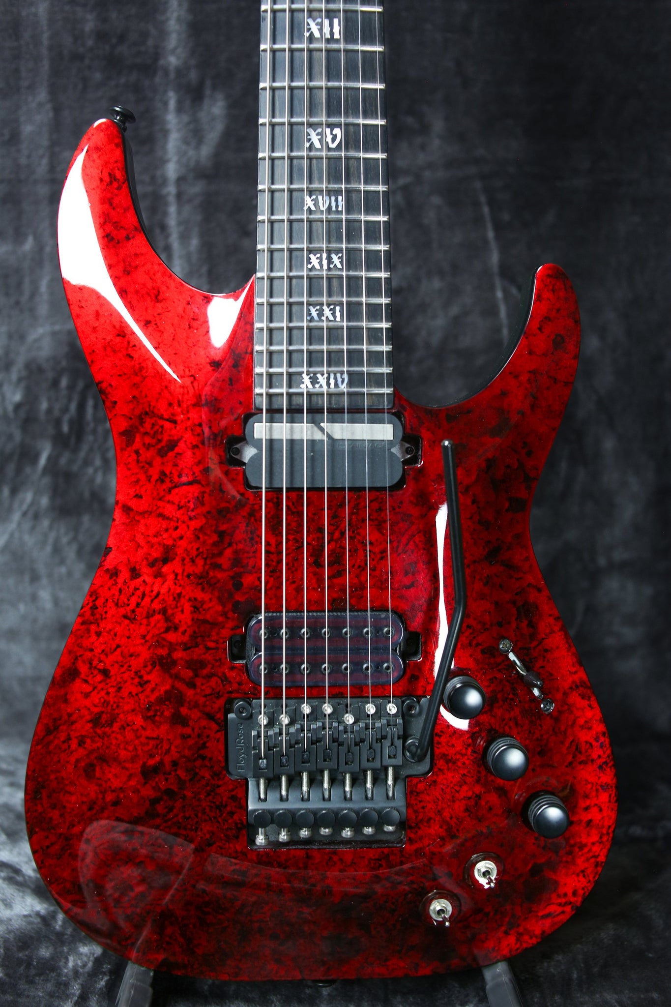 Pickups/Hardware: Schecter USA Apocalypse-VII in the bridge, Sustainiac in the neck, Grover Rotomatic 18:1 tuning keys, Floyd Rose 1500 Series bridge, Hipshot O-Ring knobs.