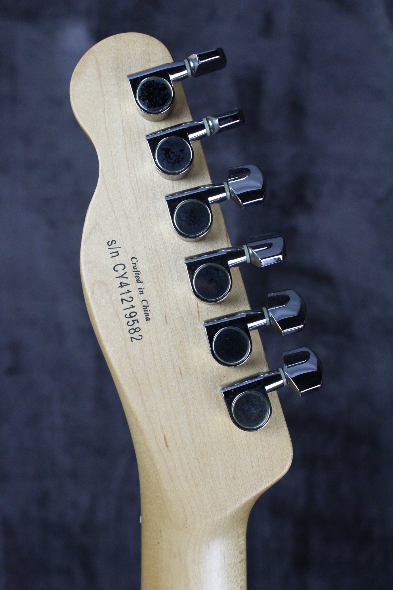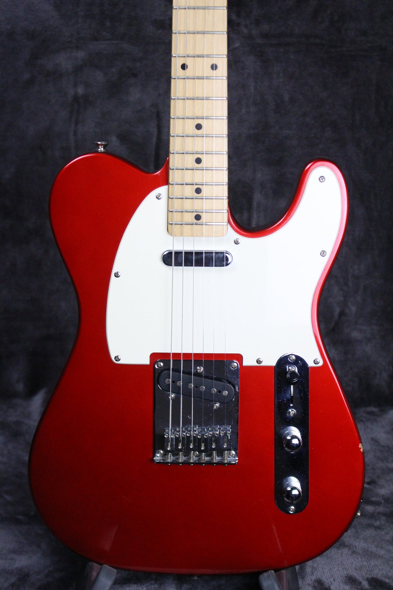 Pickups/Hardware: Two single coil telecaster pickups, closed gear tuning keys, six-saddle bride, master volume/master tone controls/3-way pickup selector.