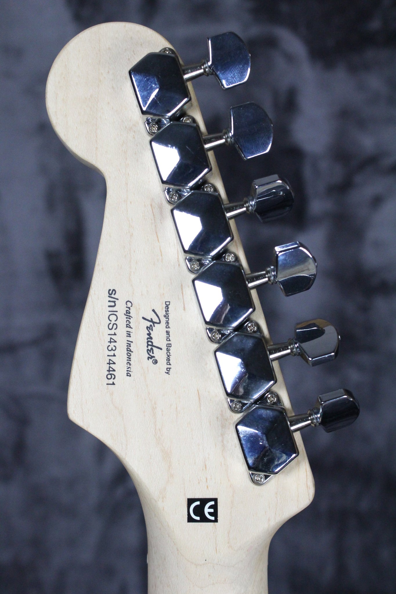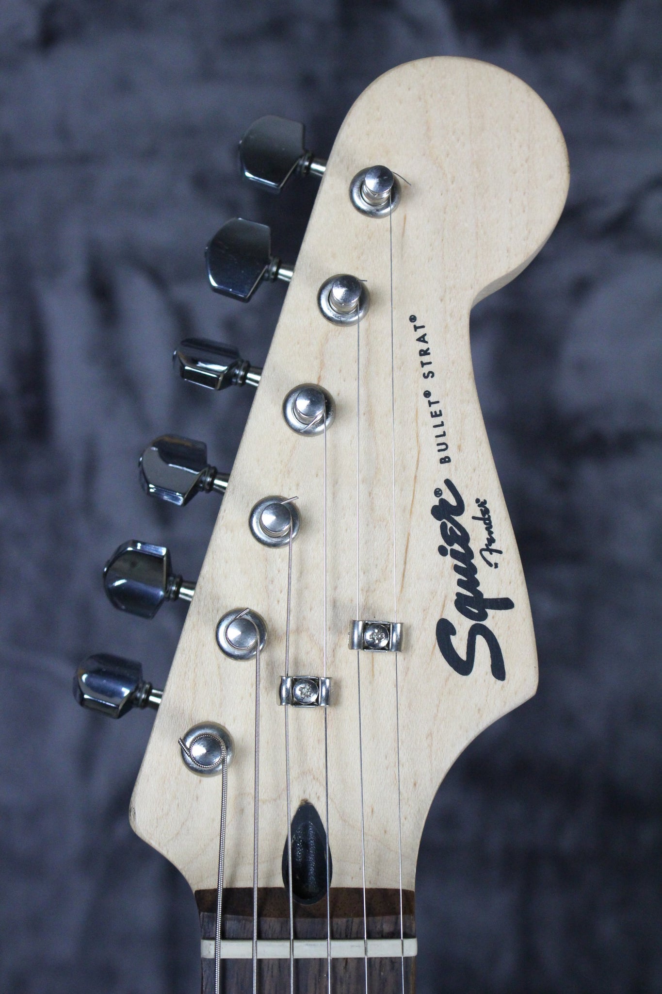 Summary: This Squier Bullet Stratocaster is in excellent condition. It shows very little signs of wear with just some light surface scratches on the pickguard. The back of the neck is a very smooth satin finish. It has a beautiful Sea Foam Green finish and chrome hardware.
