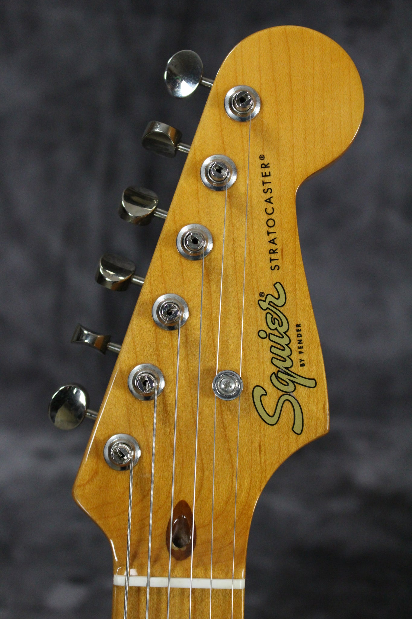 This 2021 Squier Classic Vibe '50s Stratocaster creates incredible tone courtesy of a trio of Fender-Designed alnico single-coil pickups. Player-friendly features include a slim, comfortable C-shaped neck profile with an easy-playing 9.5"-radius fingerboard and narrow-tall frets, as well as a vintage-style tremolo system for expressive string bending effects. This throwback Squier model also features 1950s-inspired headstock markings, rich-looking nickel-plated hardware and a slick vintage-tint gloss neck finish for an old-school vibe.